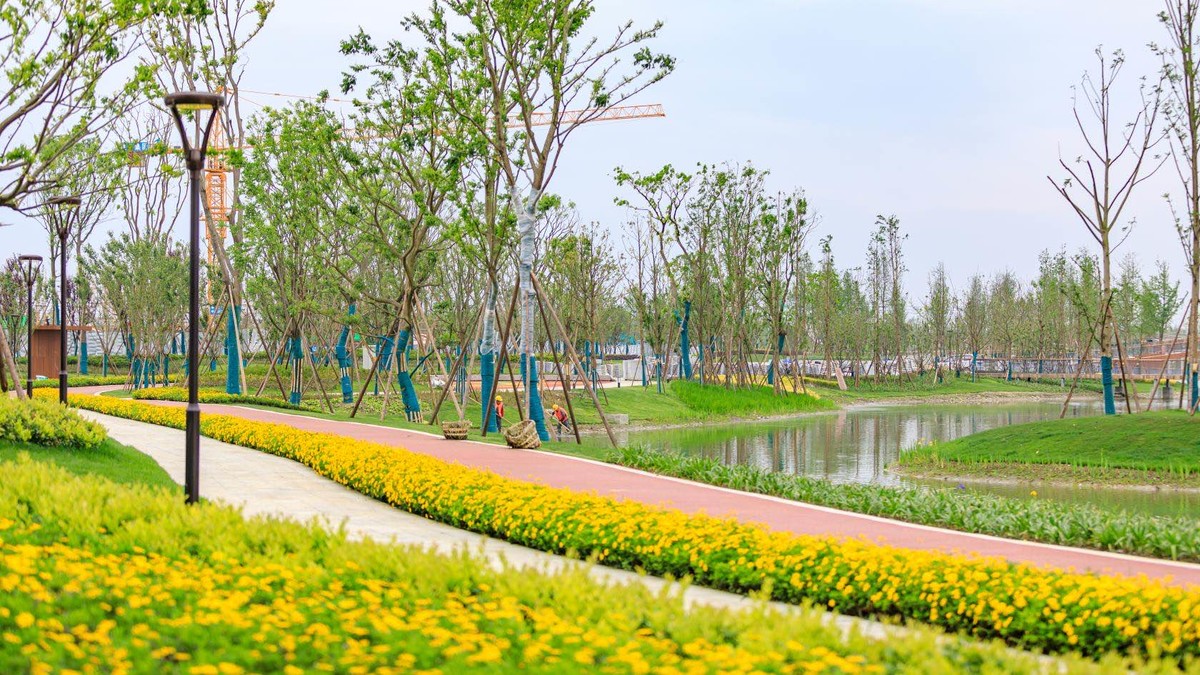 4月22日,记者从成都市郫都区获悉,总面积455亩、水体面积260亩的菁蓉湖将于今年“五一”前开门迎客,与紧邻的创客公园、清水河湿地公园及酒店商业共同构成菁蓉国际起步区的中央公园,成为郫都区公园城市建设又一个新场景、新地标。