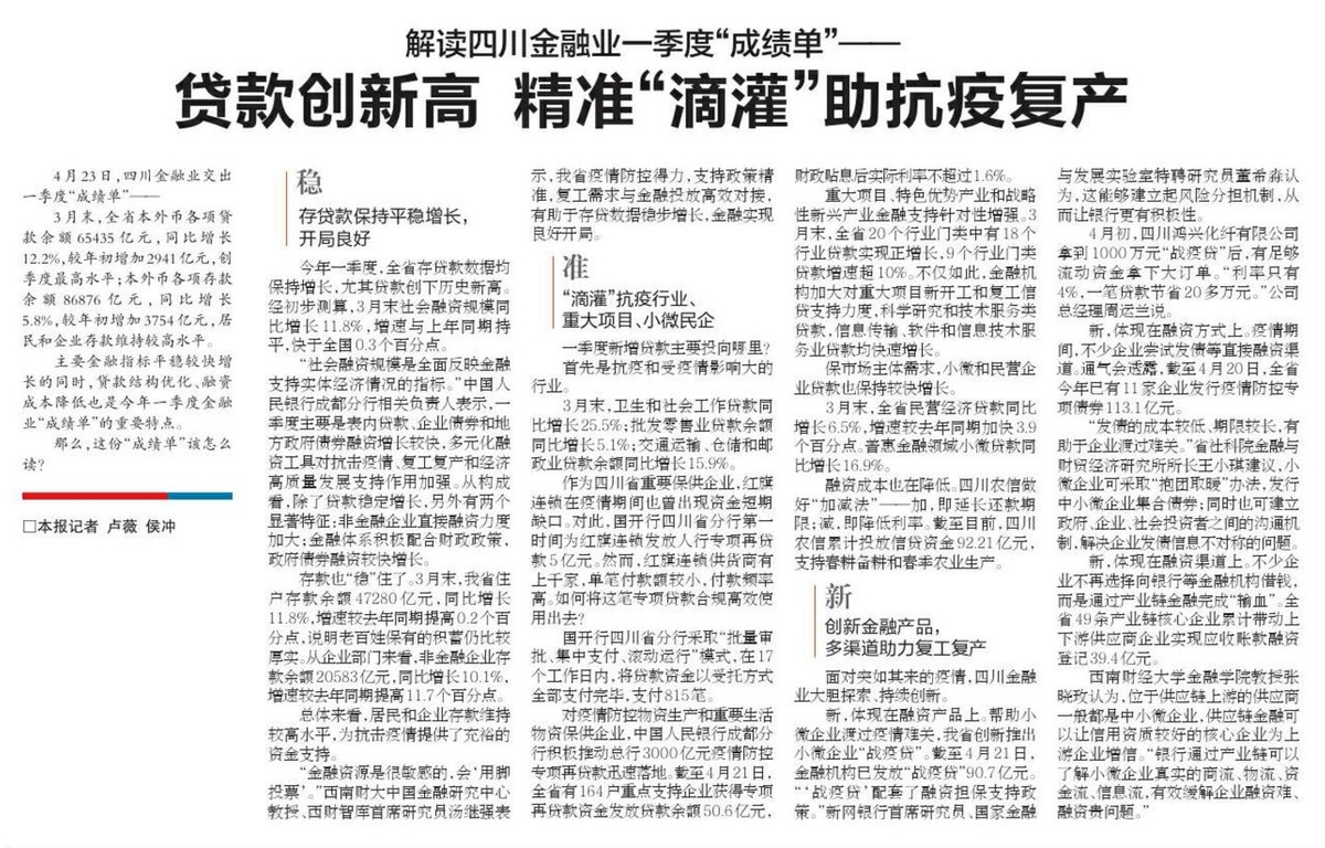 面对突如其来的疫情,四川金融业大胆探索、持续创新。