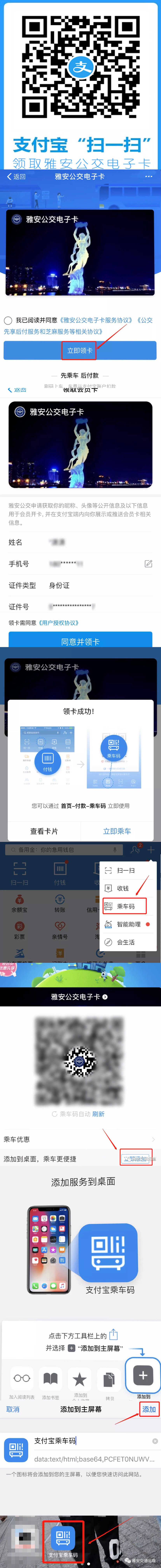 首次使用如何开通?又该如何扫码乘车?打开支付宝,扫二维码进入领卡流程。↓