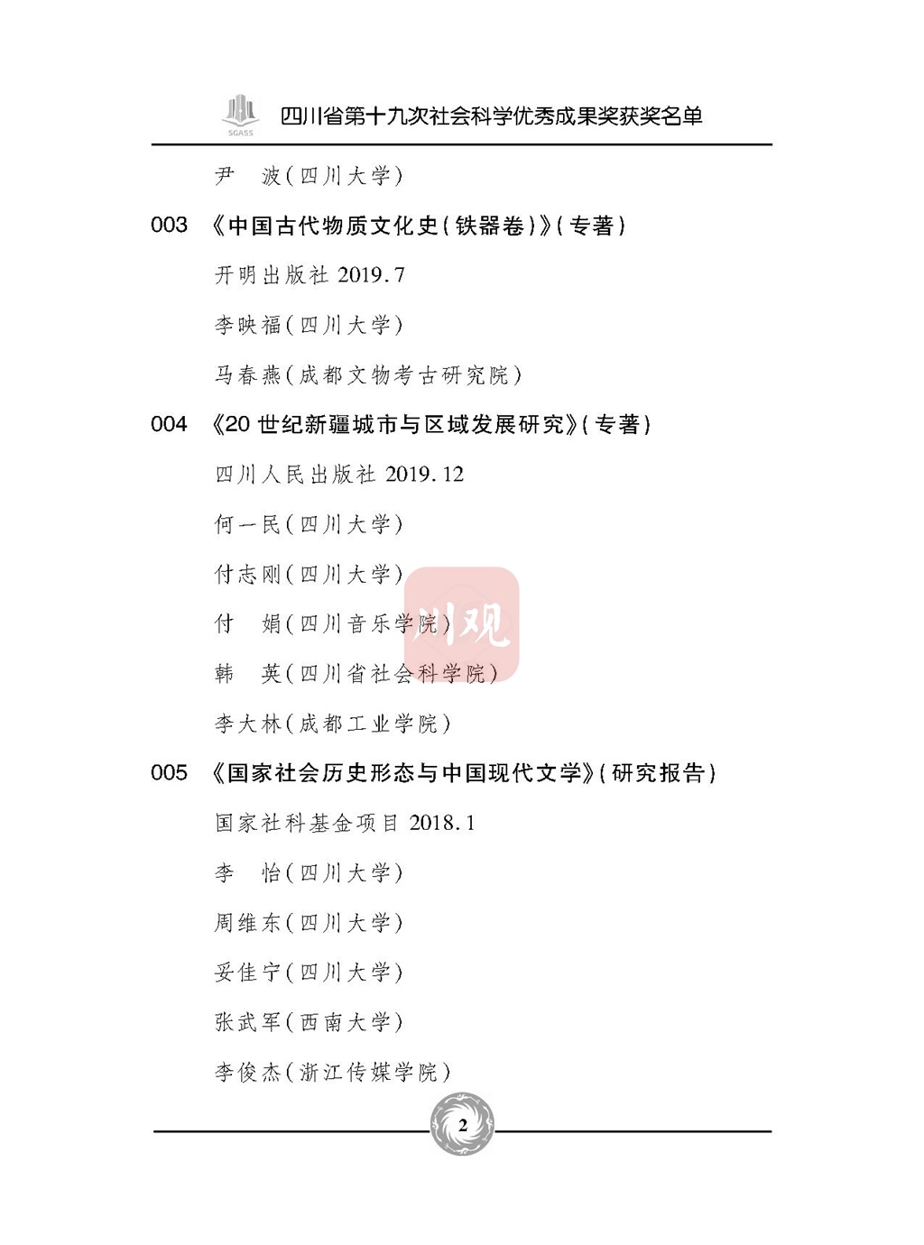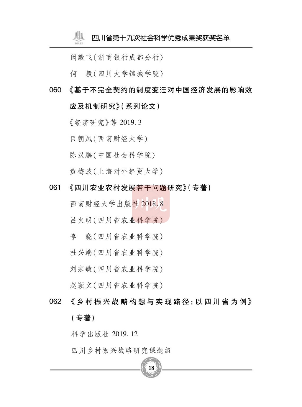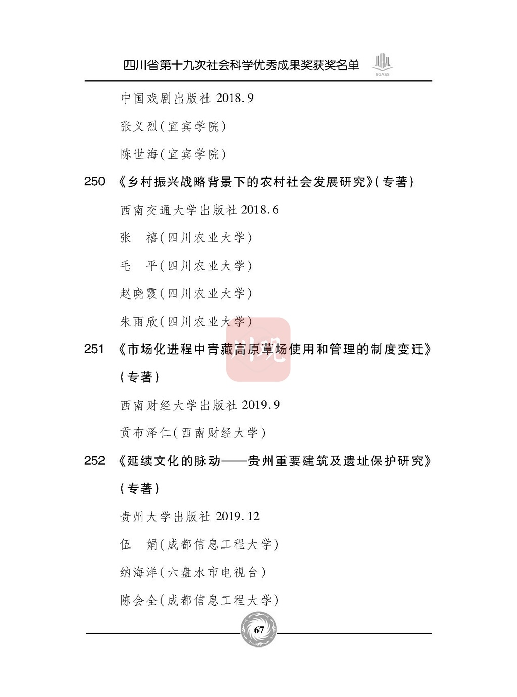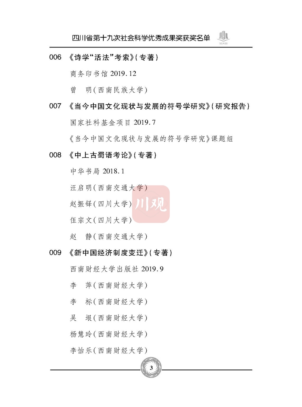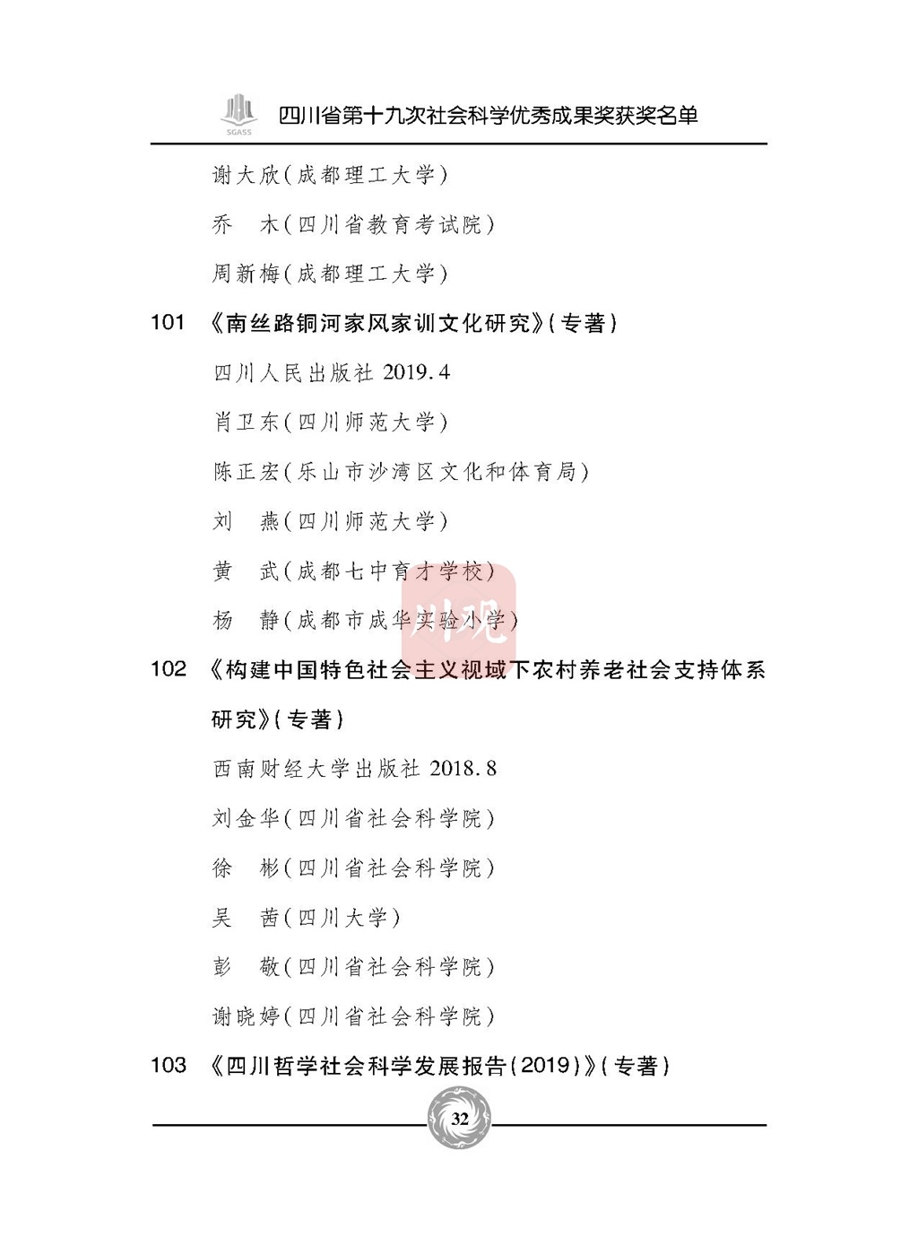 12月27日下午,四川省第十九次社会科学优秀成果奖颁奖大会在成都举行,隆重表彰2018年至2019年社会科学优秀成果,以及为四川省哲学社会科学发展作出突出贡献的专家学者。