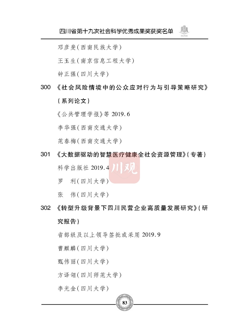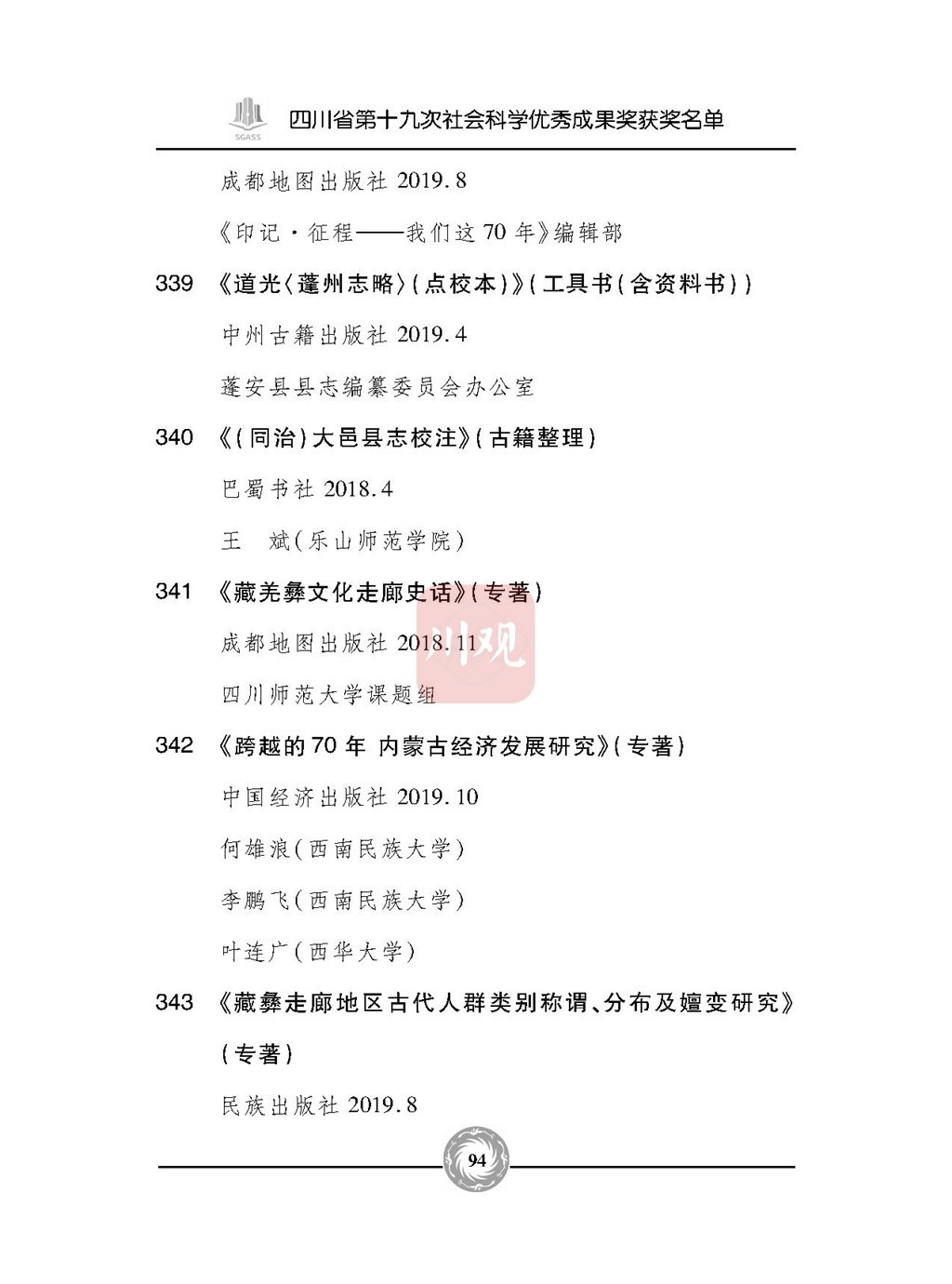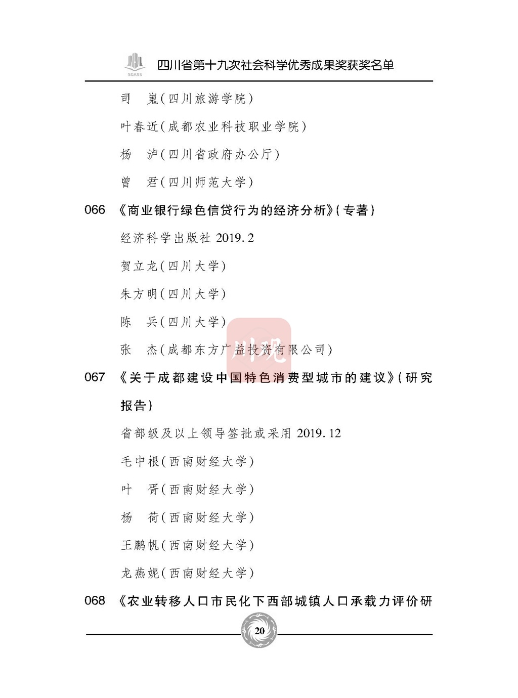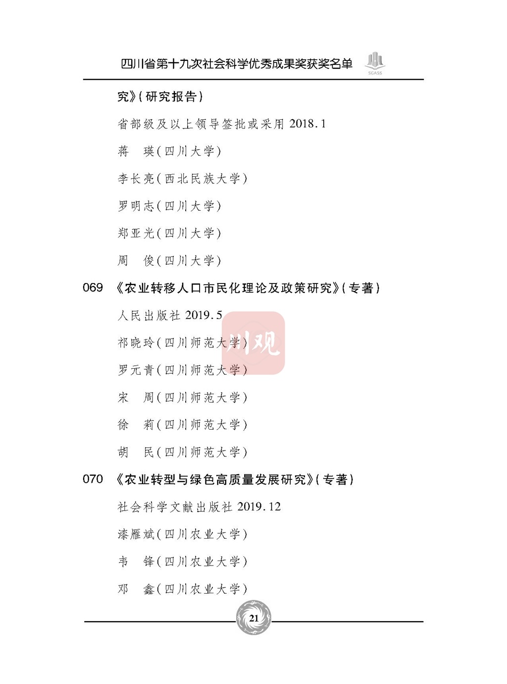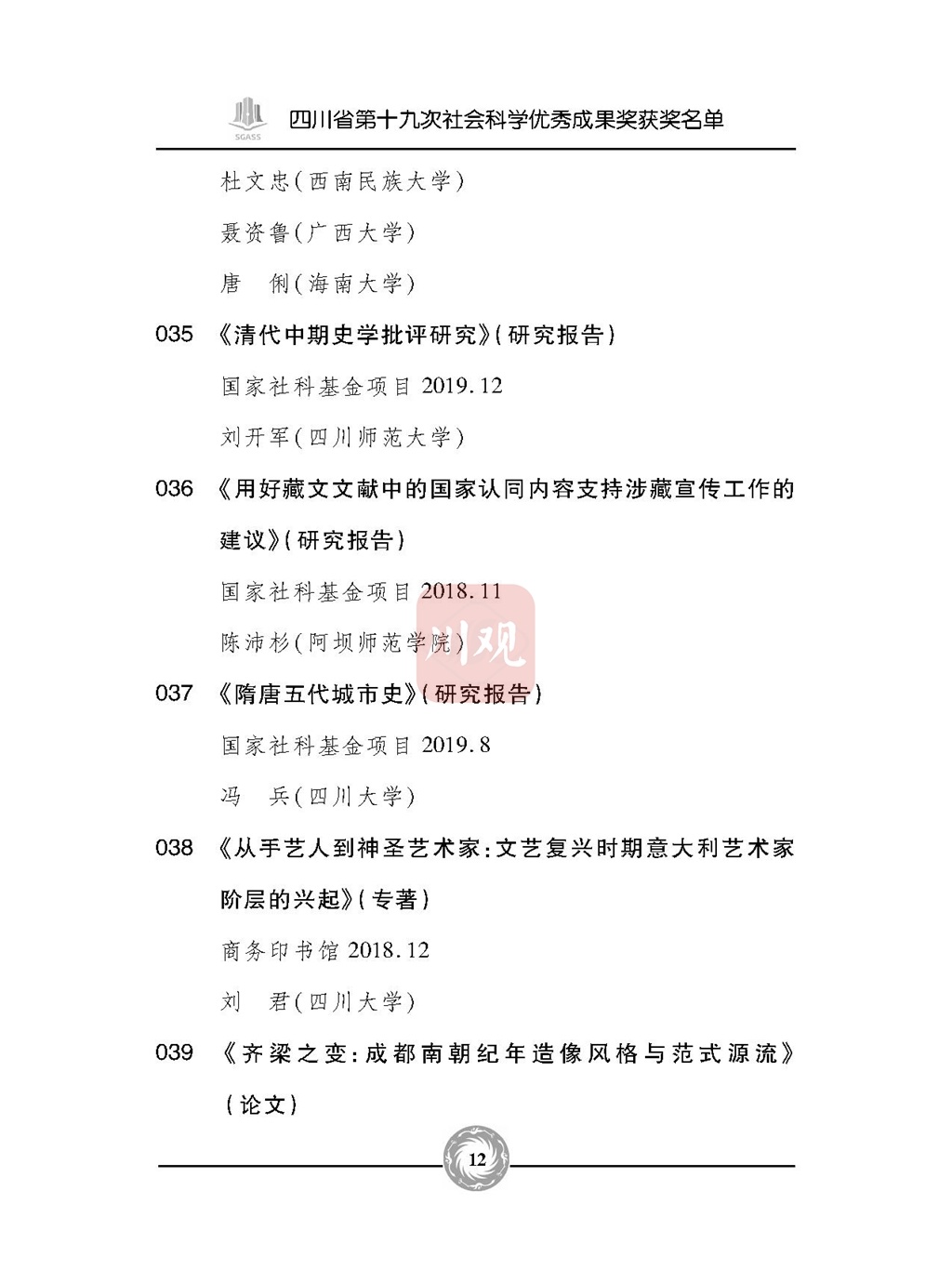 12月27日下午,四川省第十九次社会科学优秀成果奖颁奖大会在成都举行,隆重表彰2018年至2019年社会科学优秀成果,以及为四川省哲学社会科学发展作出突出贡献的专家学者。