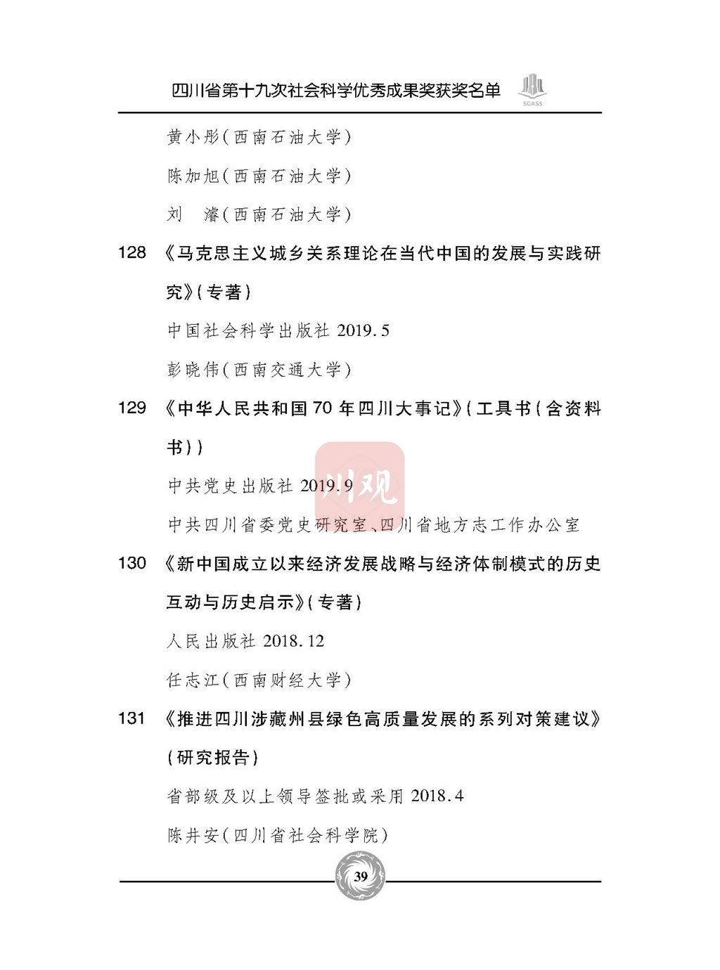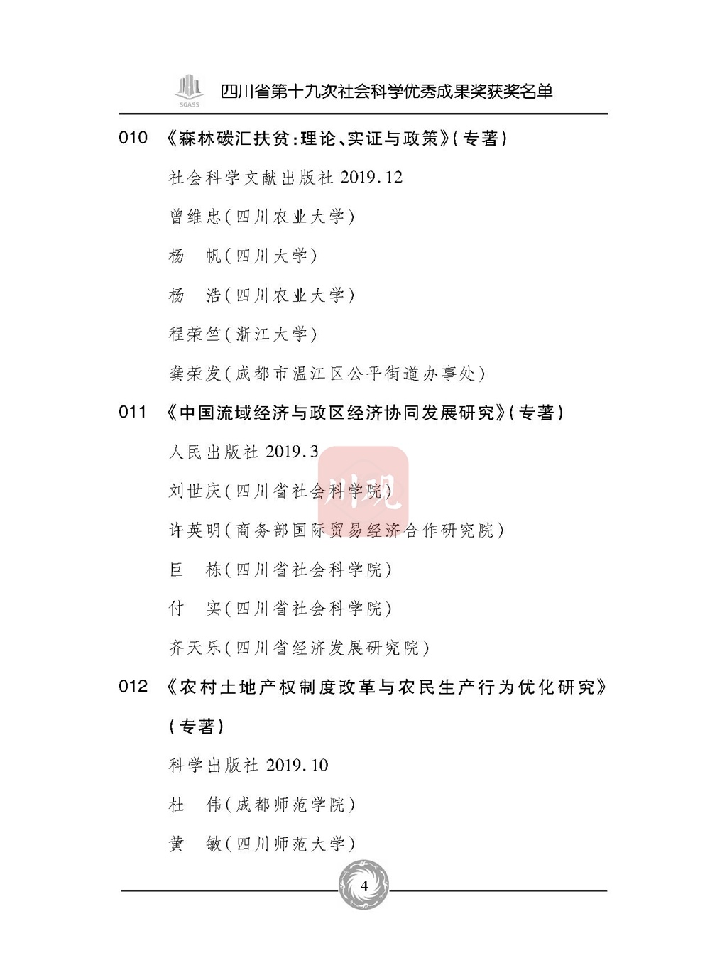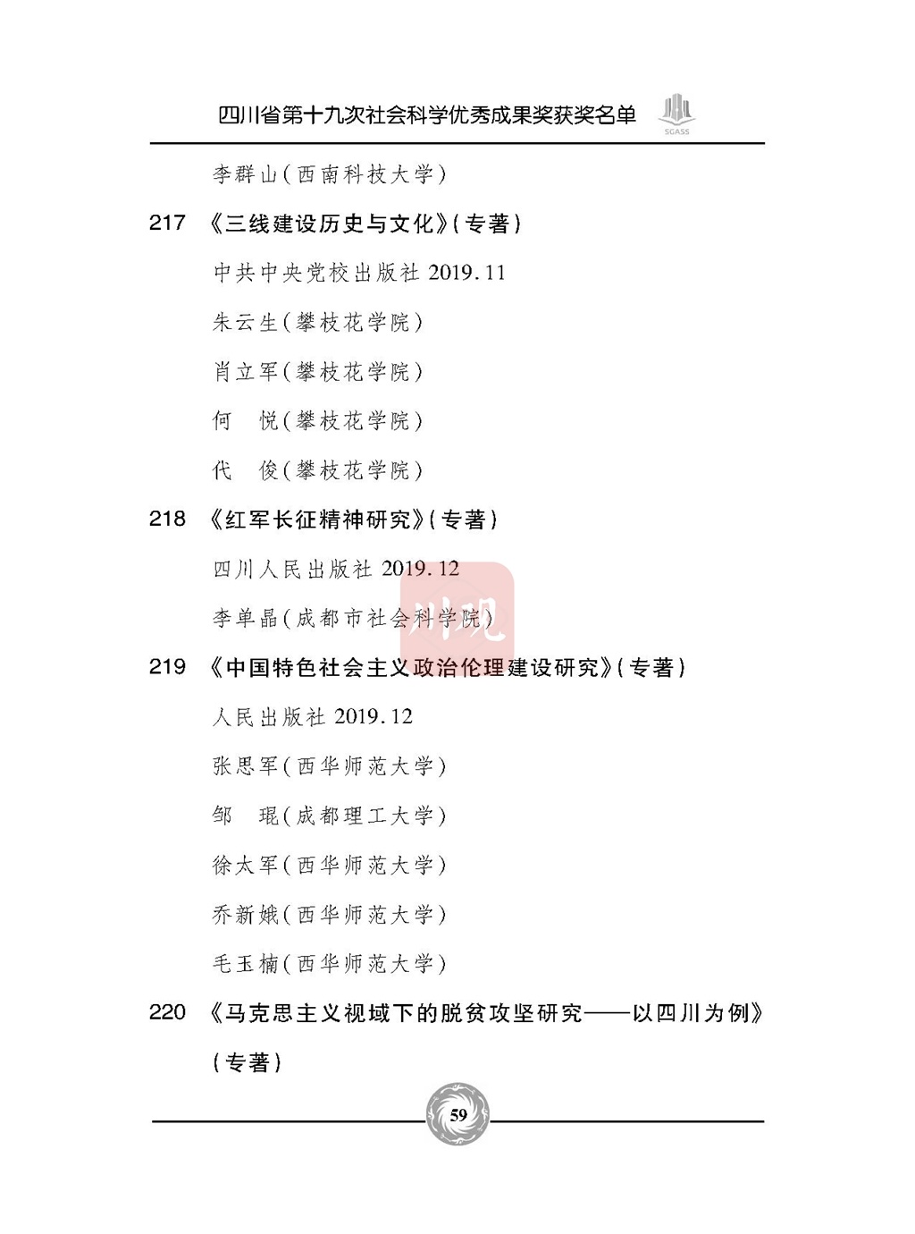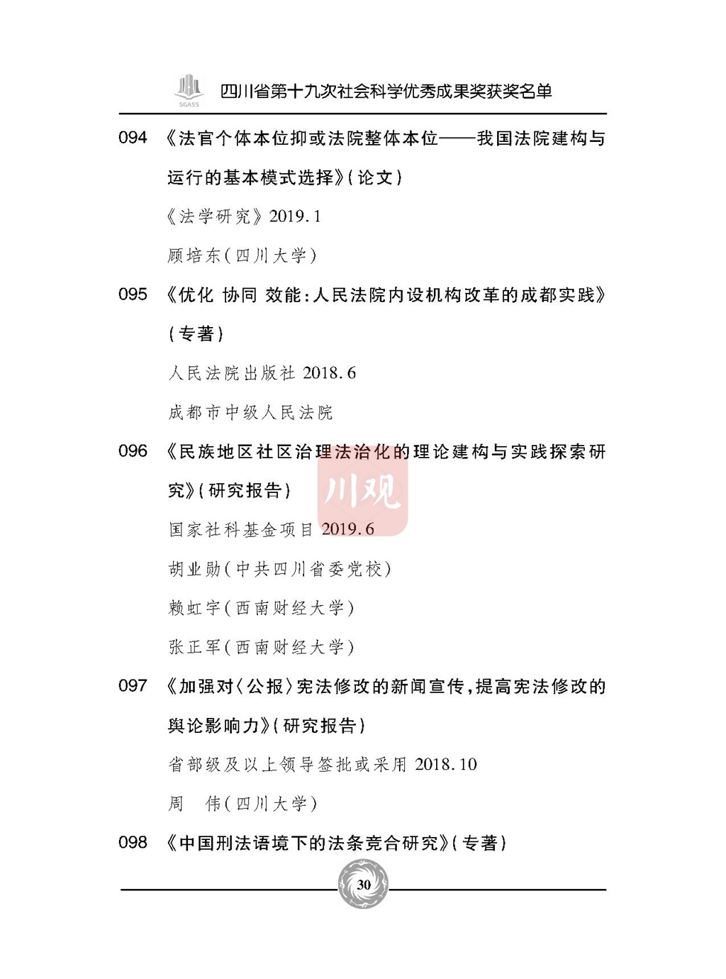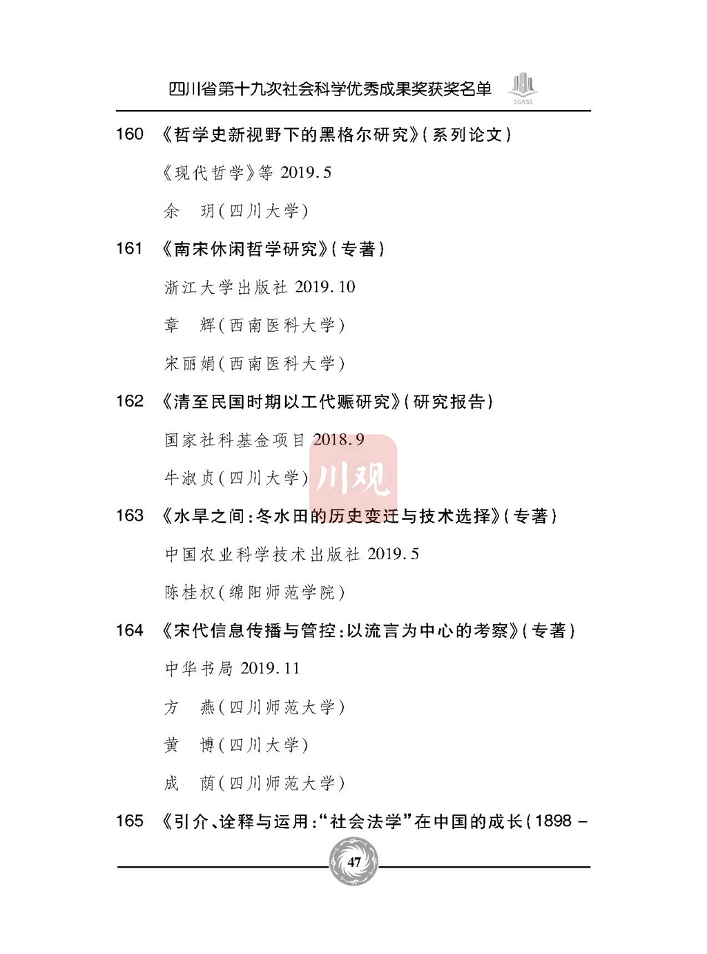 12月27日下午,四川省第十九次社会科学优秀成果奖颁奖大会在成都举行,隆重表彰2018年至2019年社会科学优秀成果,以及为四川省哲学社会科学发展作出突出贡献的专家学者。