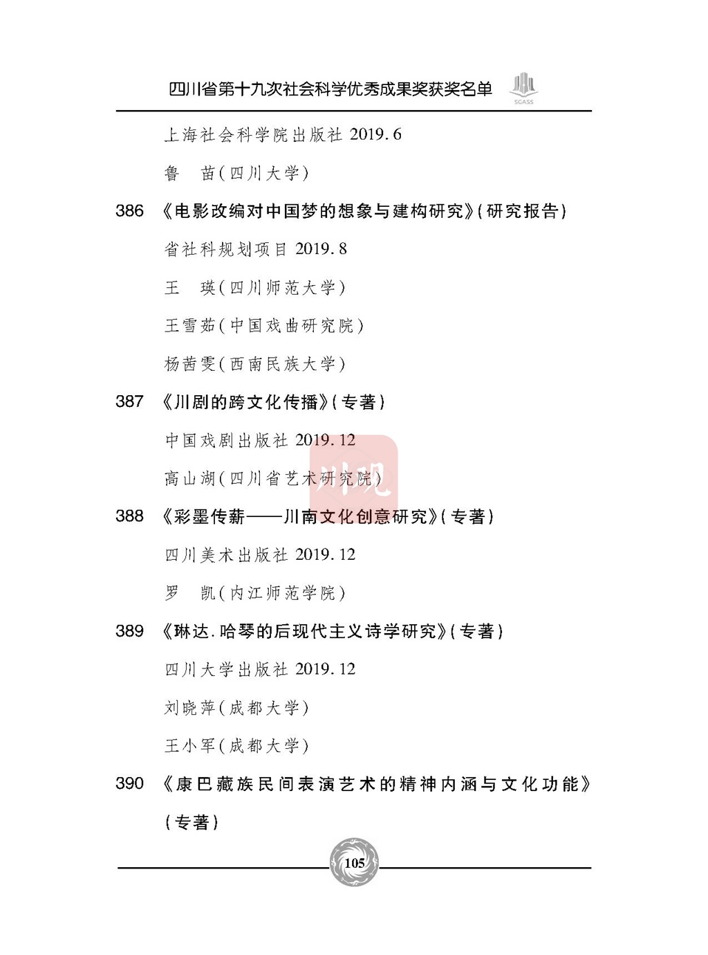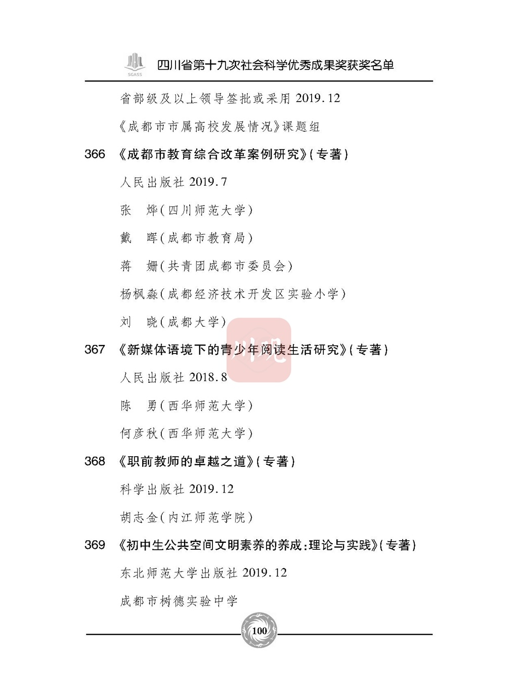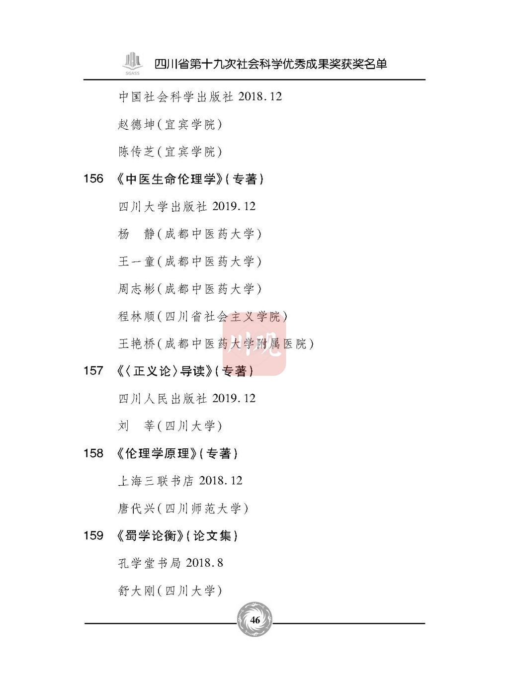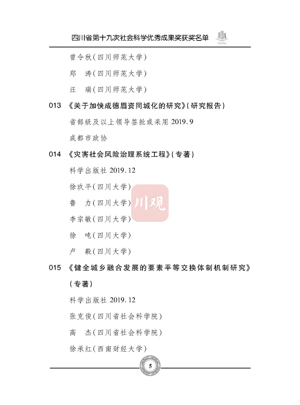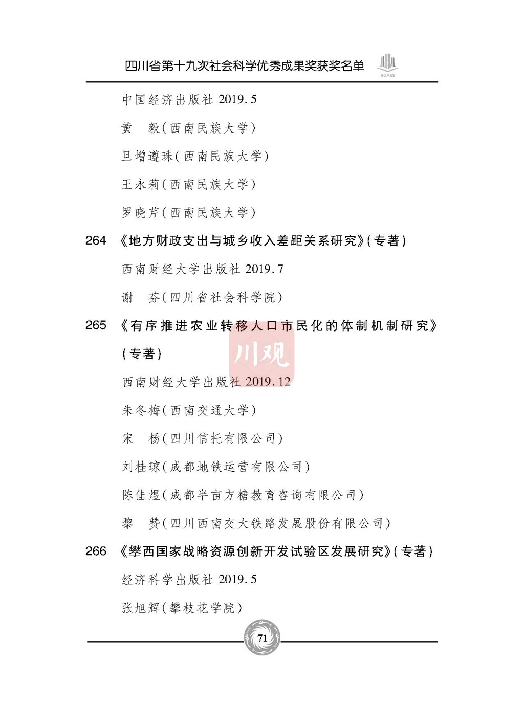 12月27日下午,四川省第十九次社会科学优秀成果奖颁奖大会在成都举行,隆重表彰2018年至2019年社会科学优秀成果,以及为四川省哲学社会科学发展作出突出贡献的专家学者。