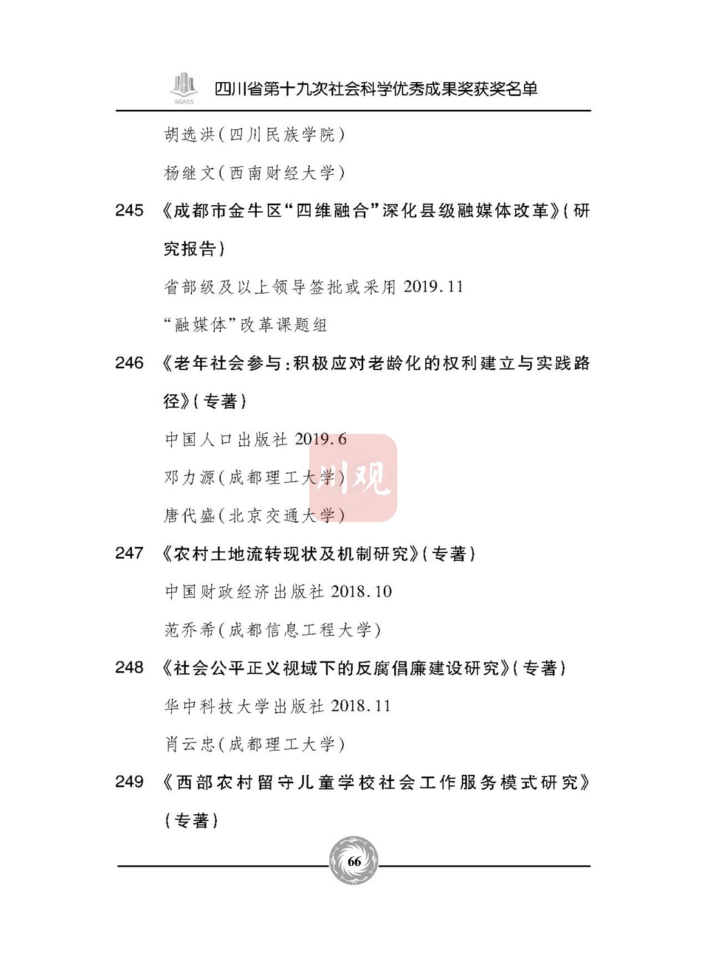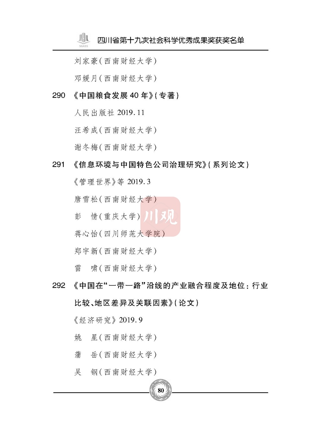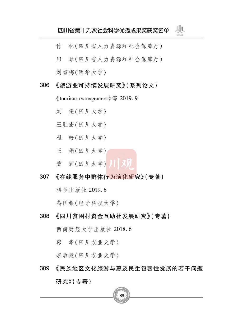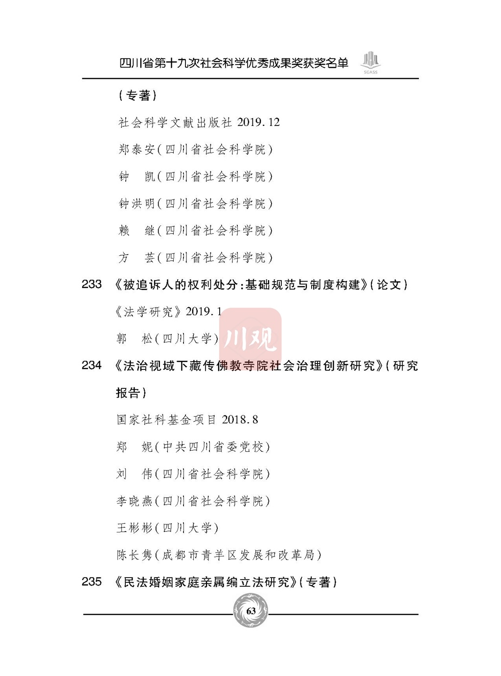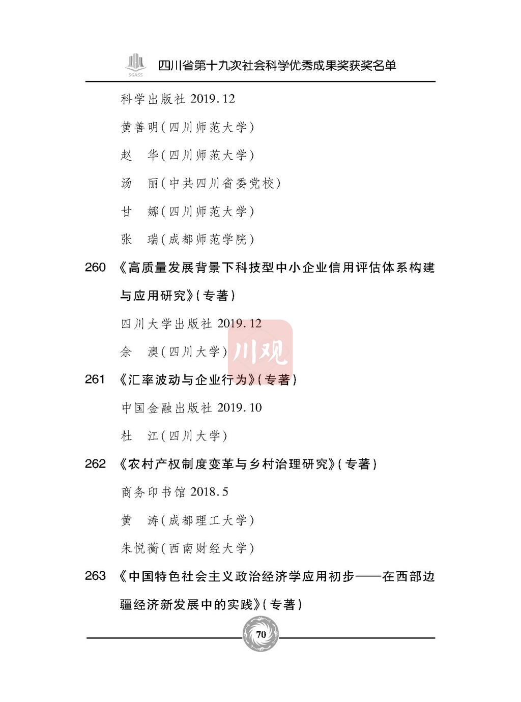12月27日下午,四川省第十九次社会科学优秀成果奖颁奖大会在成都举行,隆重表彰2018年至2019年社会科学优秀成果,以及为四川省哲学社会科学发展作出突出贡献的专家学者。