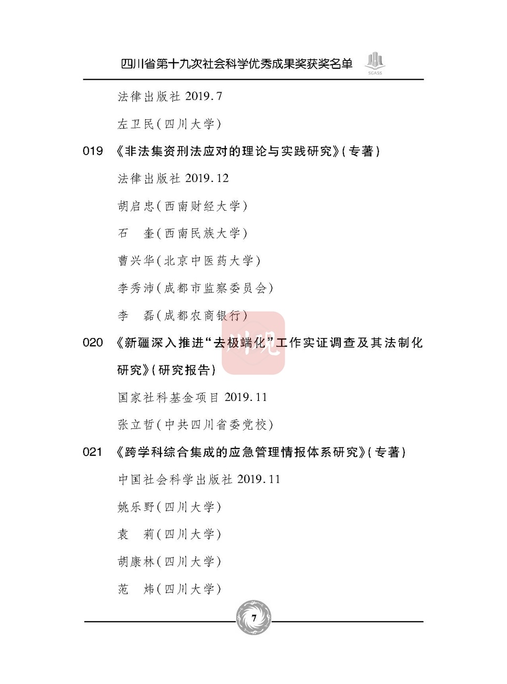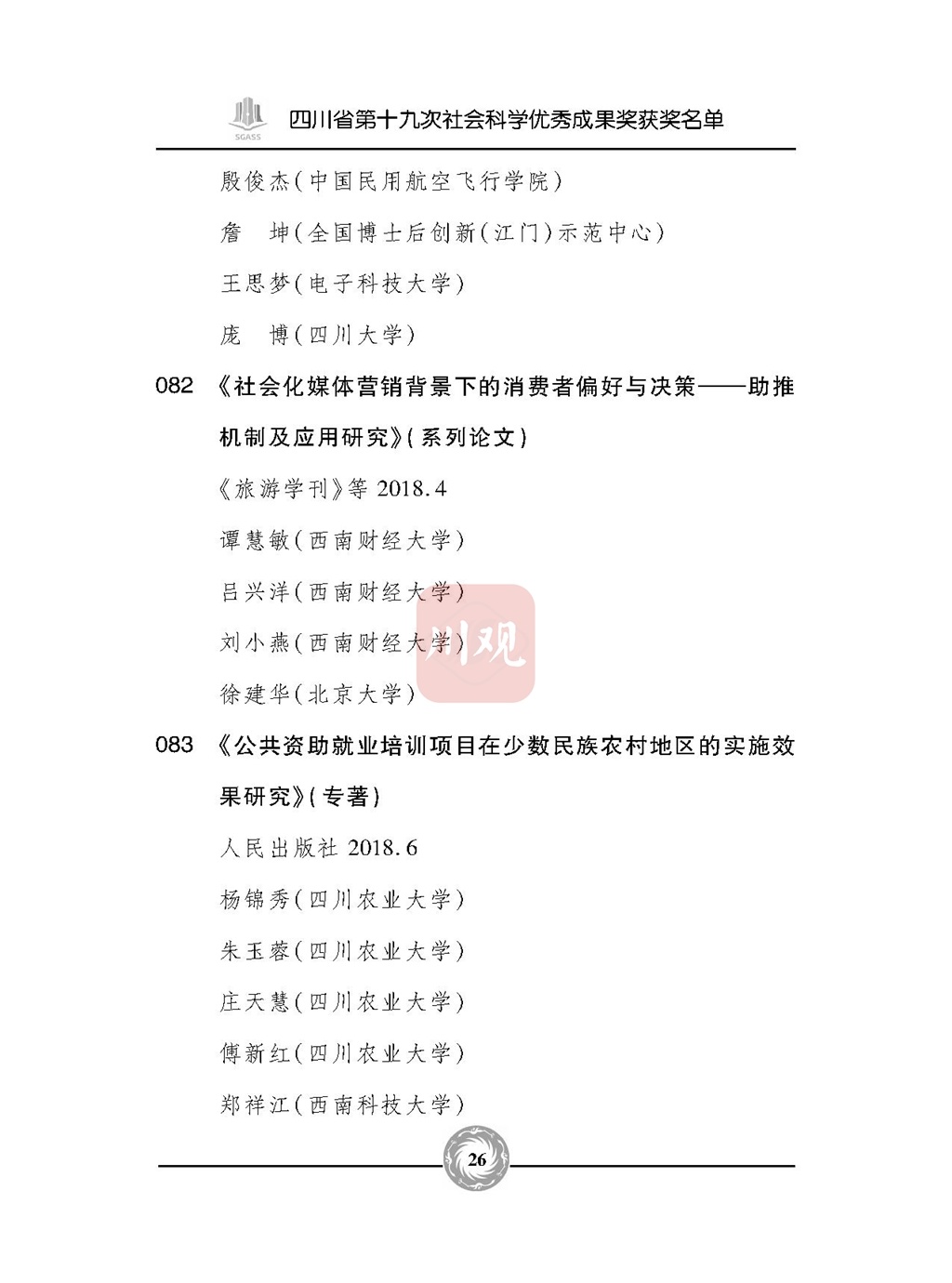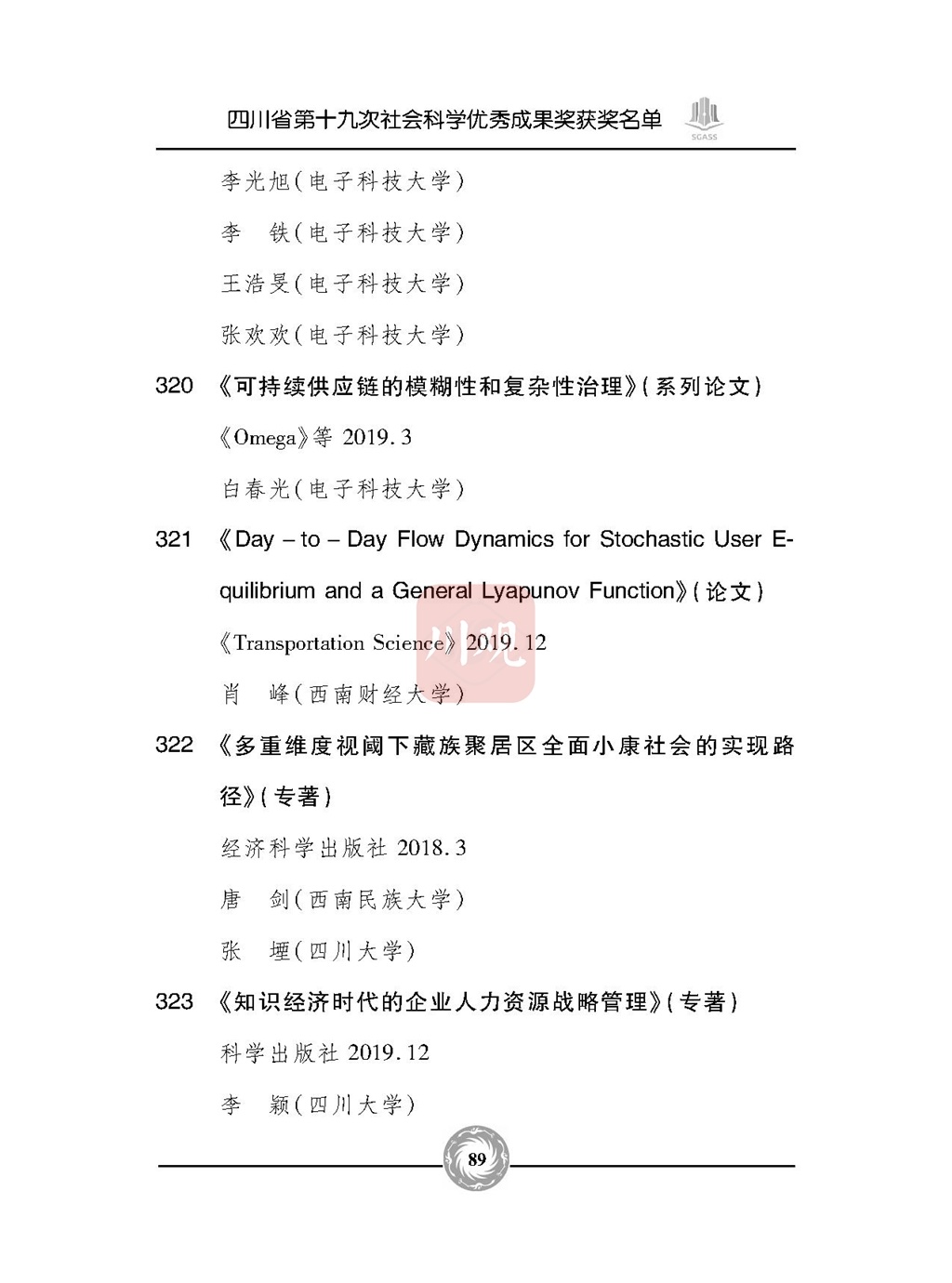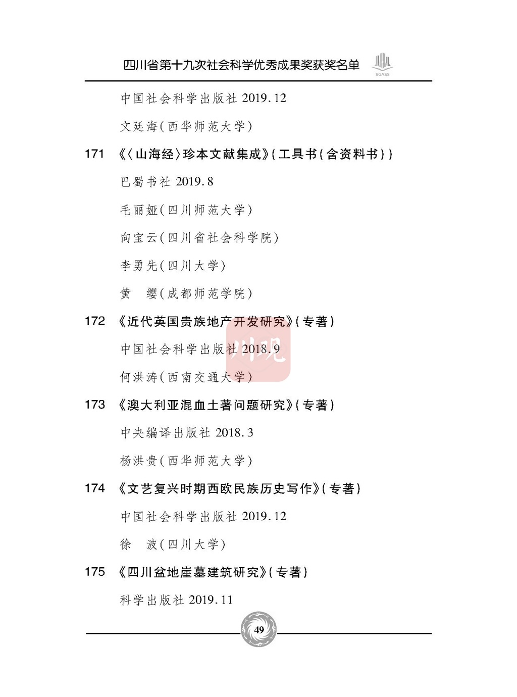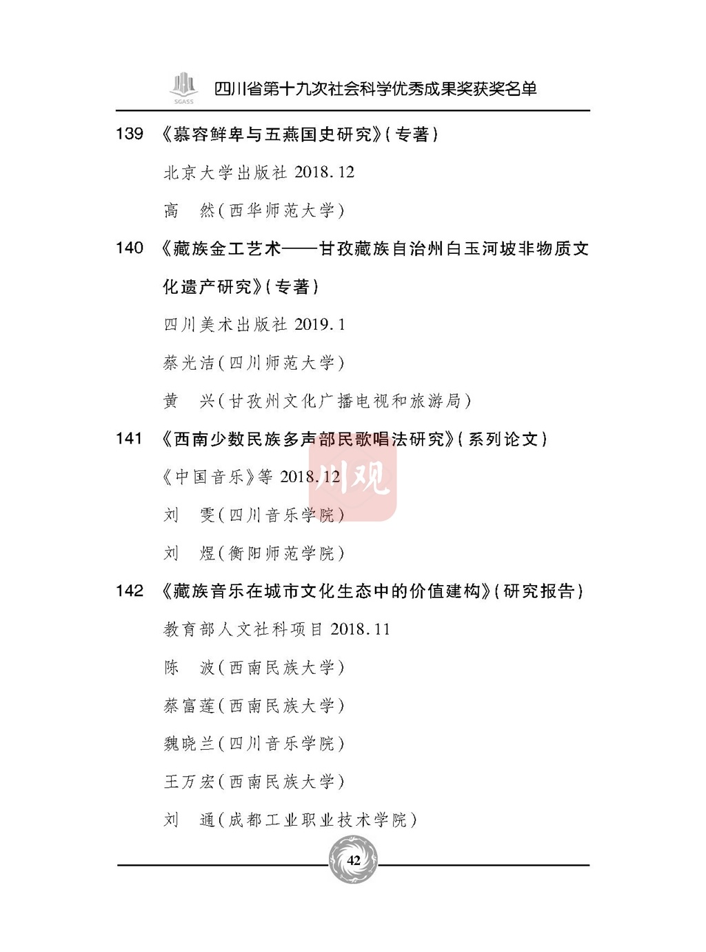 12月27日下午,四川省第十九次社会科学优秀成果奖颁奖大会在成都举行,隆重表彰2018年至2019年社会科学优秀成果,以及为四川省哲学社会科学发展作出突出贡献的专家学者。