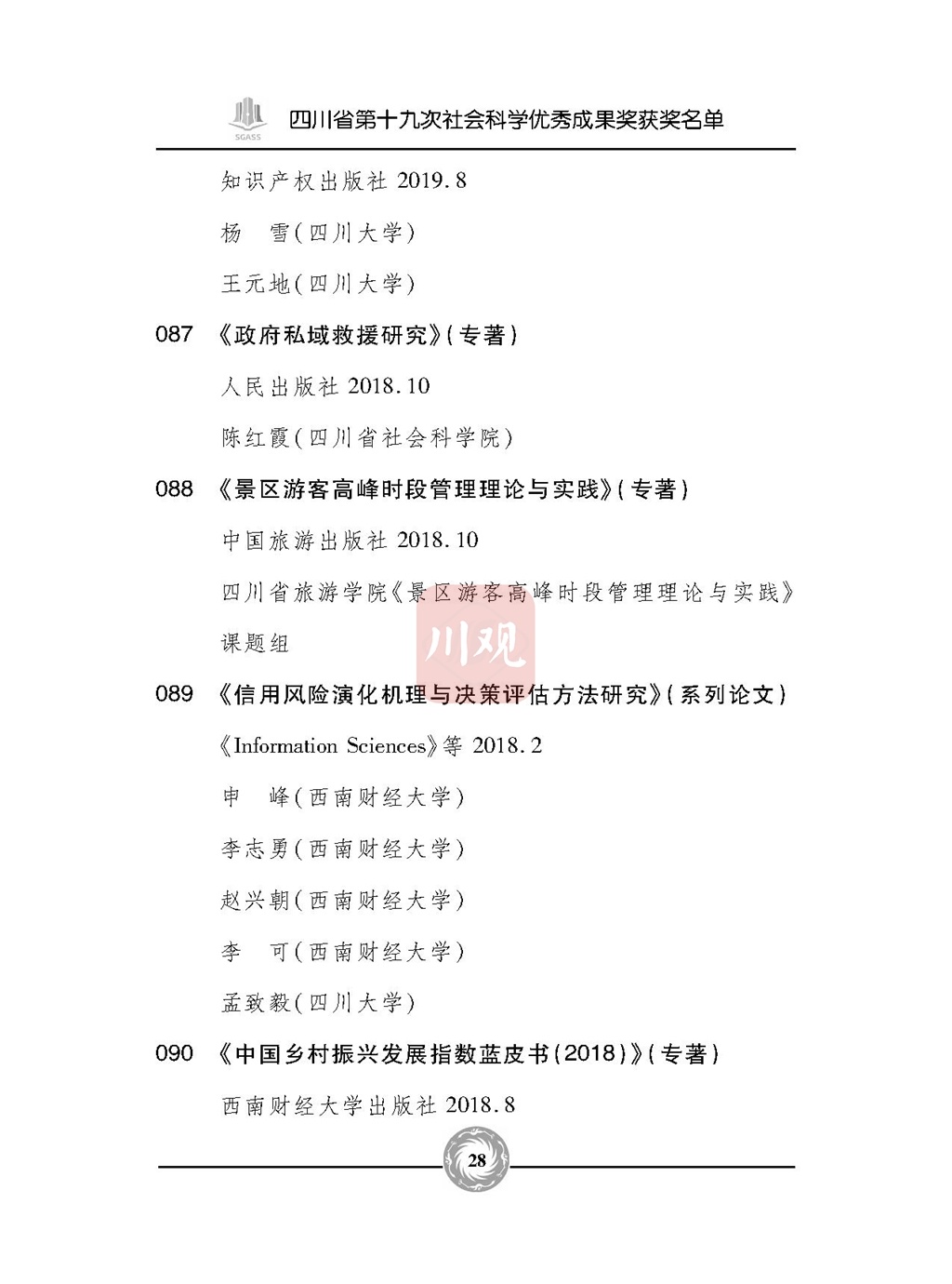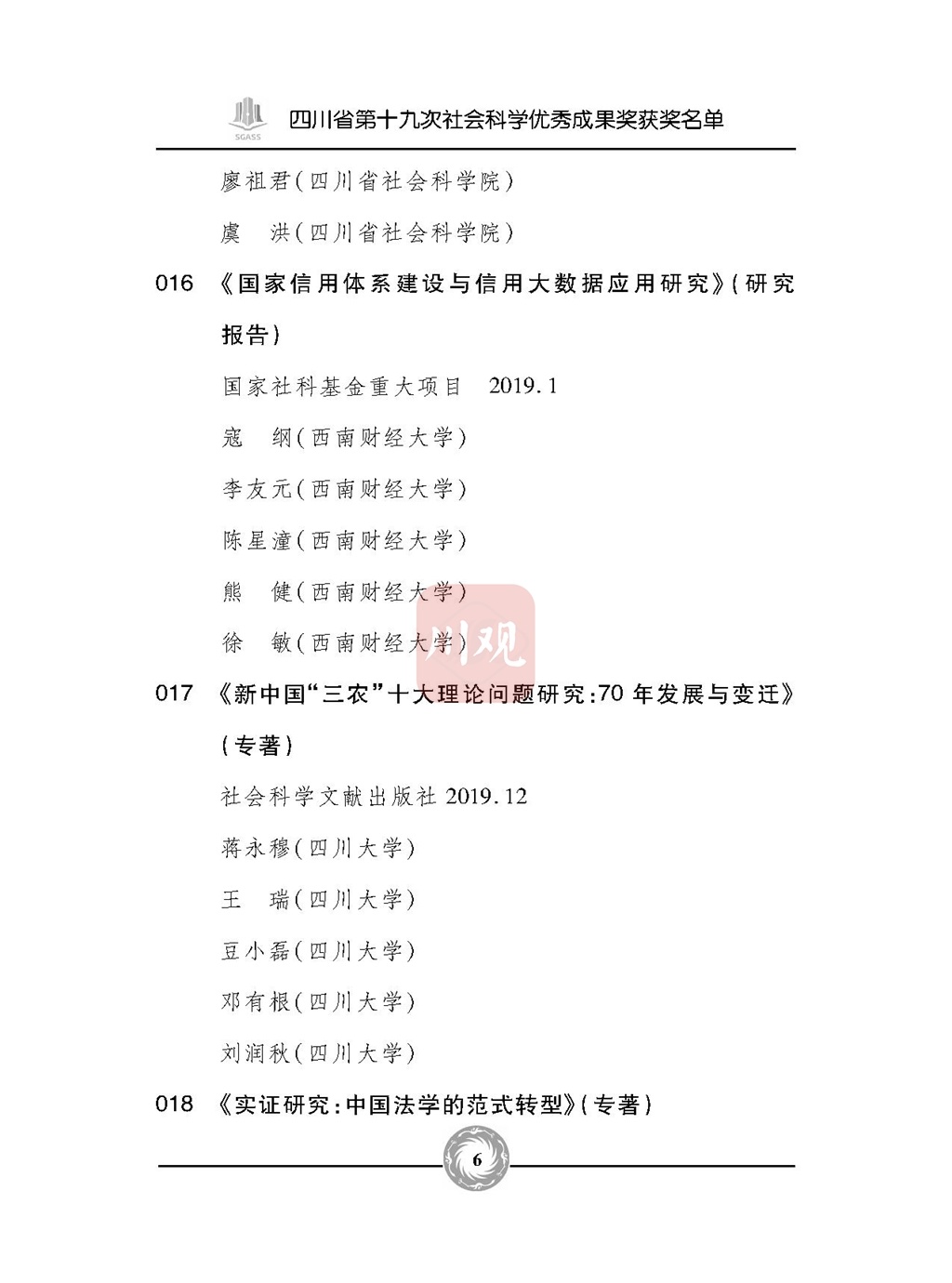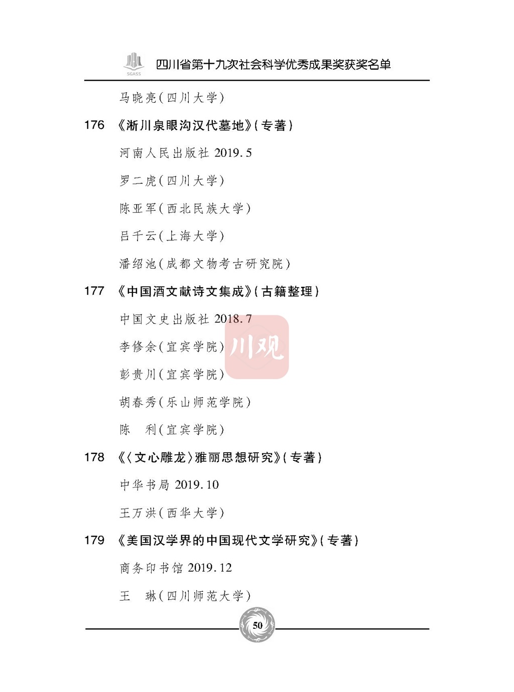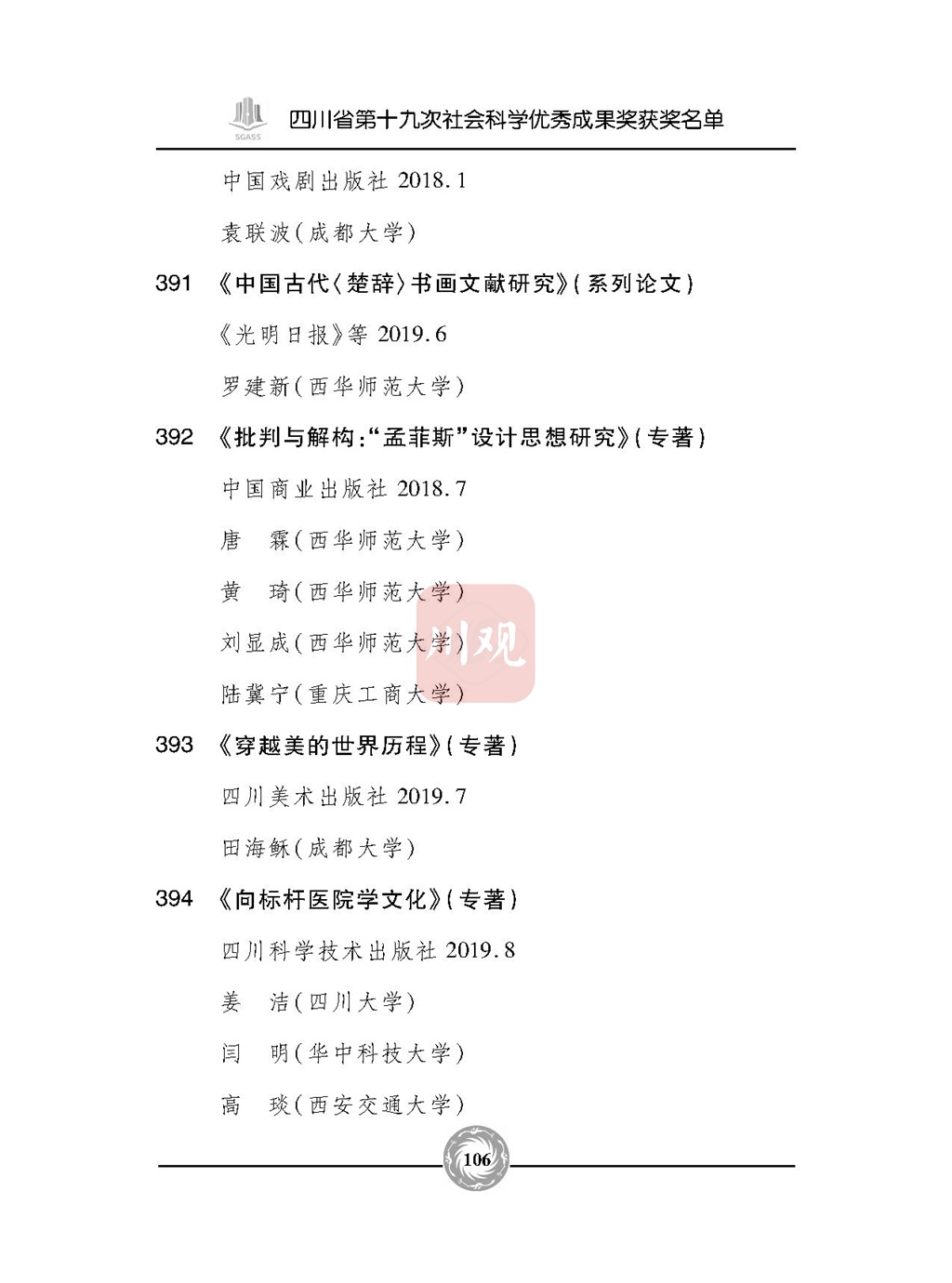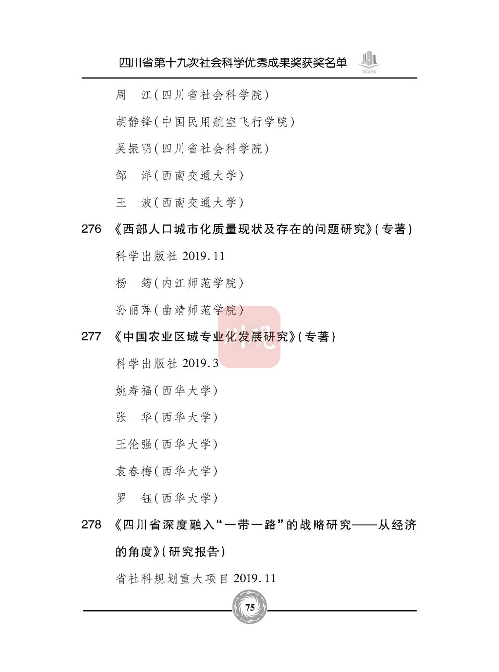 12月27日下午,四川省第十九次社会科学优秀成果奖颁奖大会在成都举行,隆重表彰2018年至2019年社会科学优秀成果,以及为四川省哲学社会科学发展作出突出贡献的专家学者。