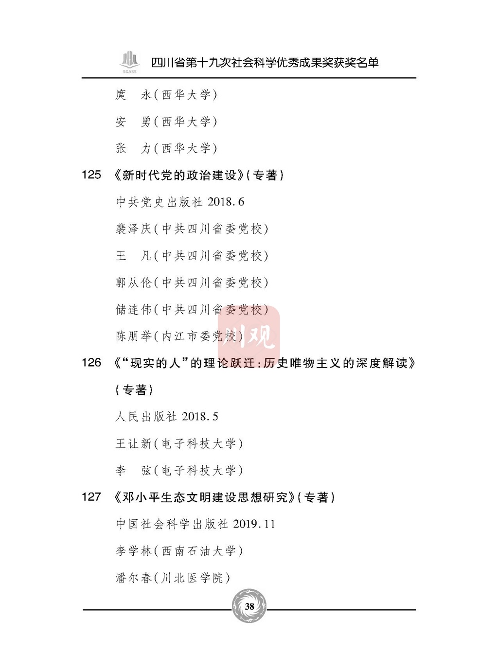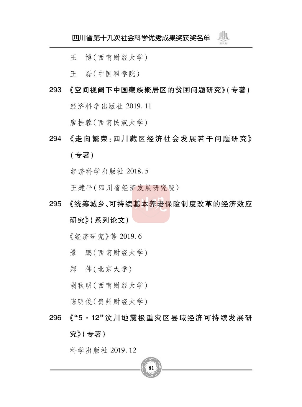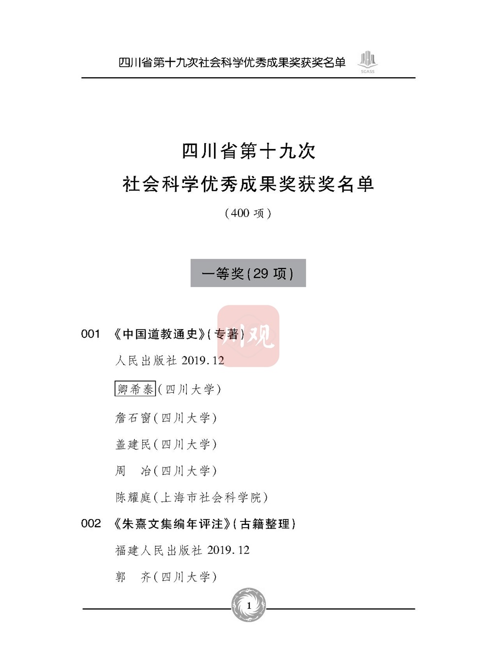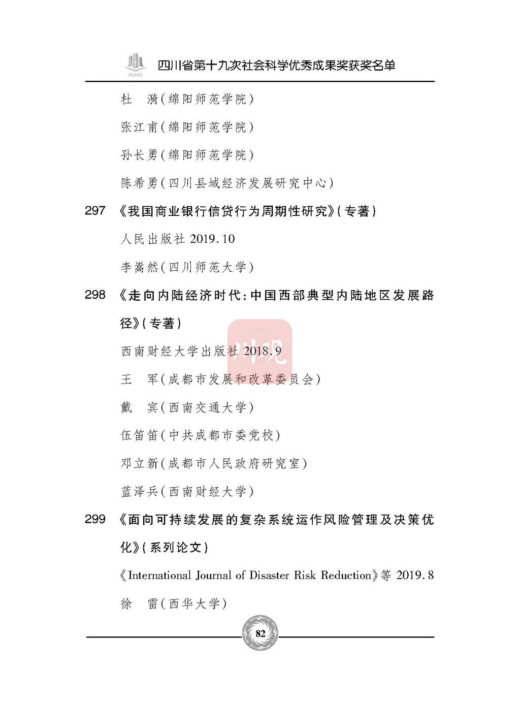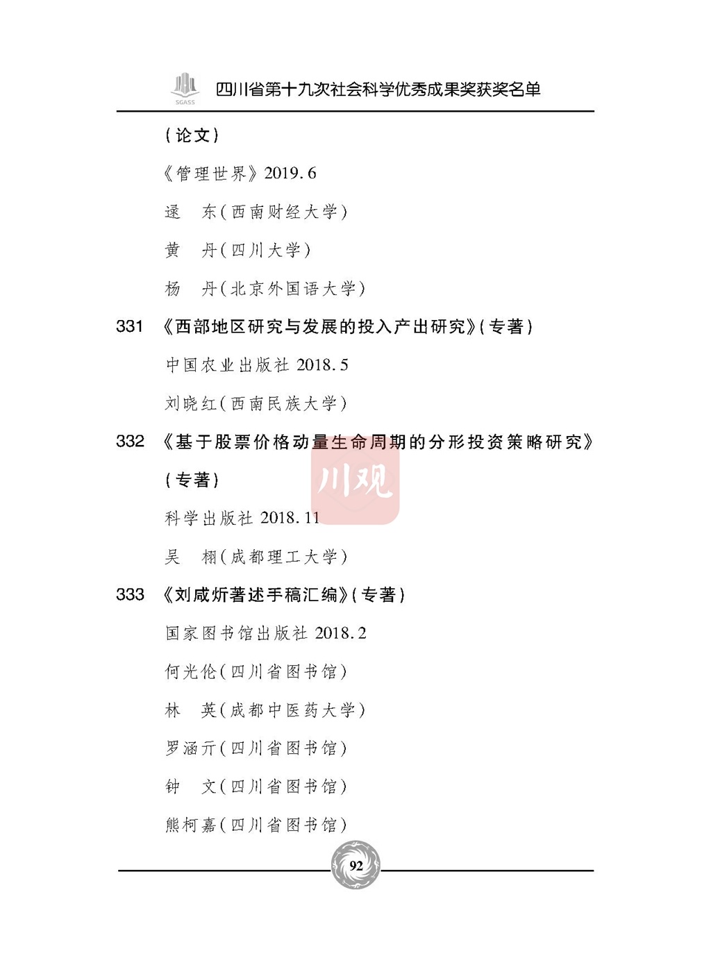 12月27日下午,四川省第十九次社会科学优秀成果奖颁奖大会在成都举行,隆重表彰2018年至2019年社会科学优秀成果,以及为四川省哲学社会科学发展作出突出贡献的专家学者。