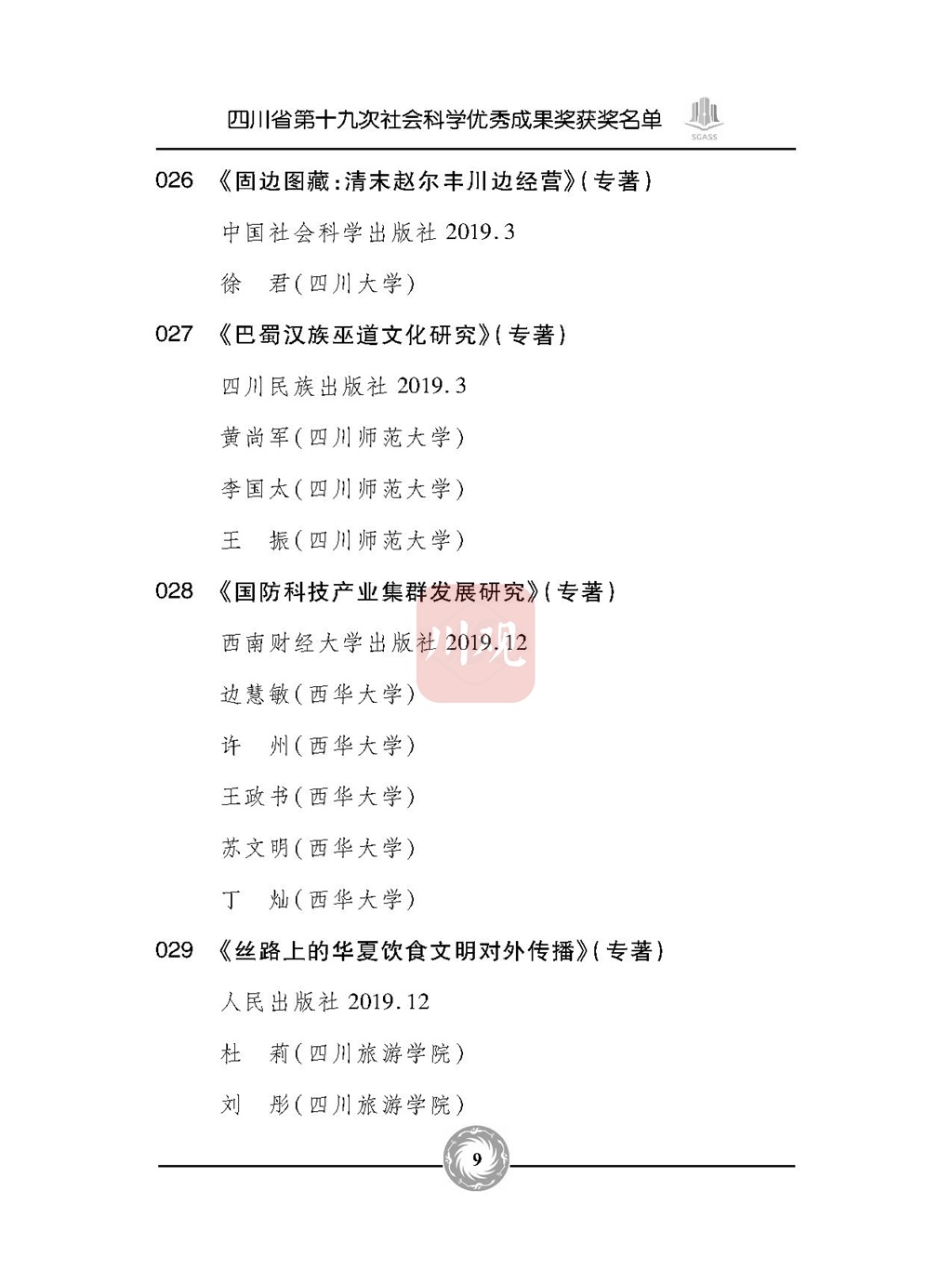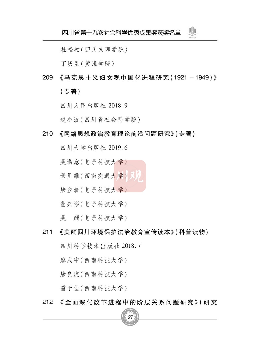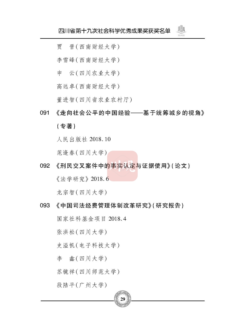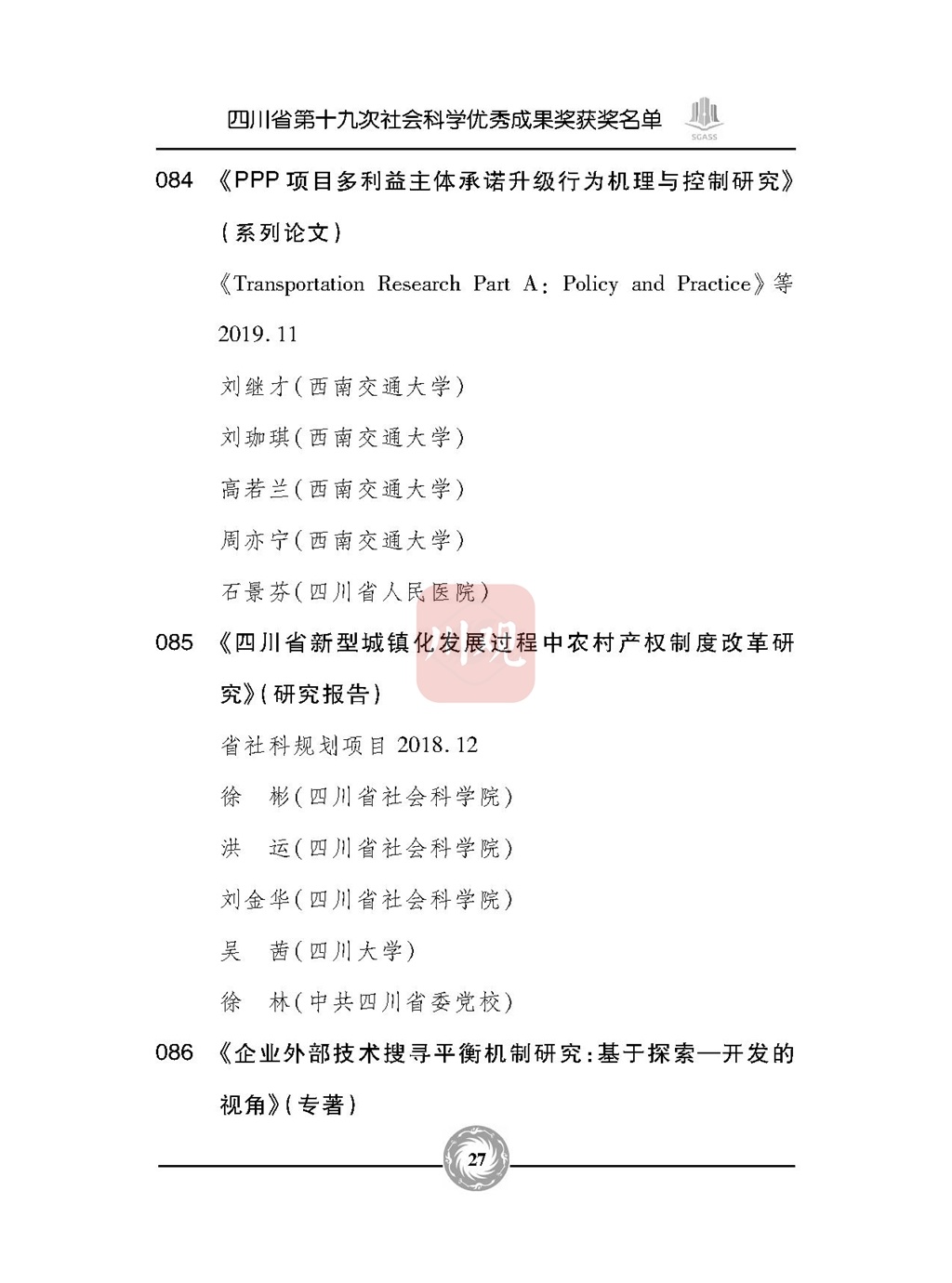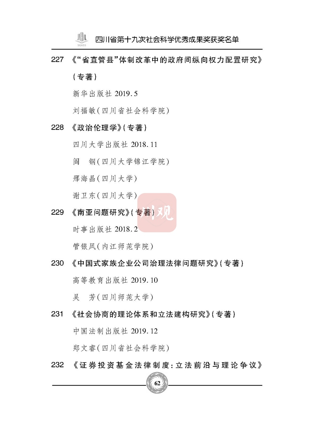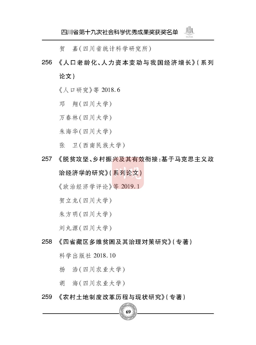 12月27日下午,四川省第十九次社会科学优秀成果奖颁奖大会在成都举行,隆重表彰2018年至2019年社会科学优秀成果,以及为四川省哲学社会科学发展作出突出贡献的专家学者。