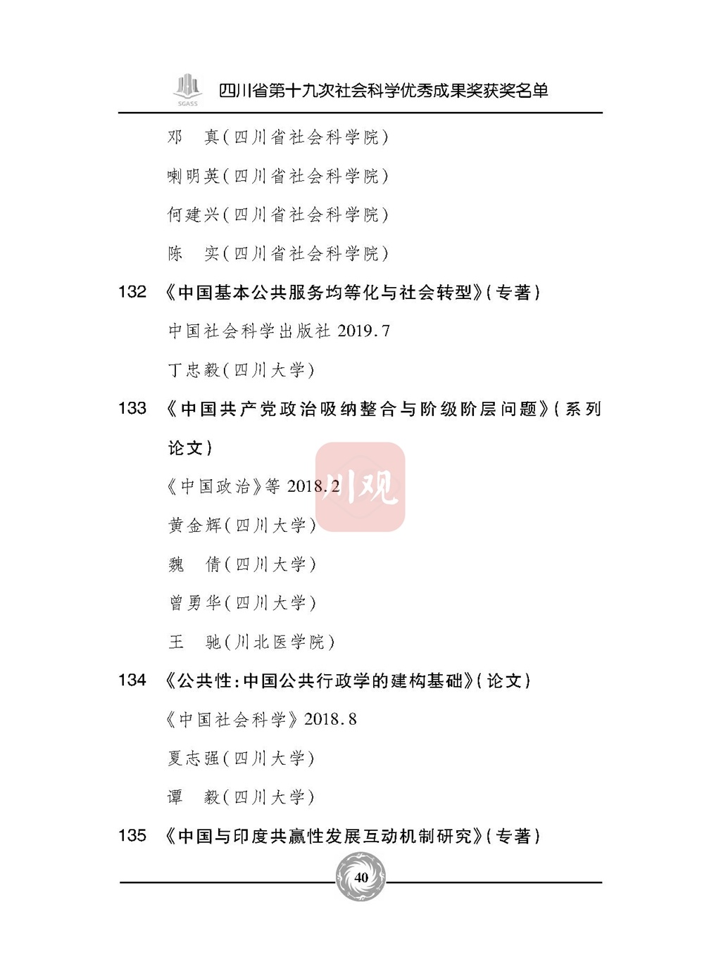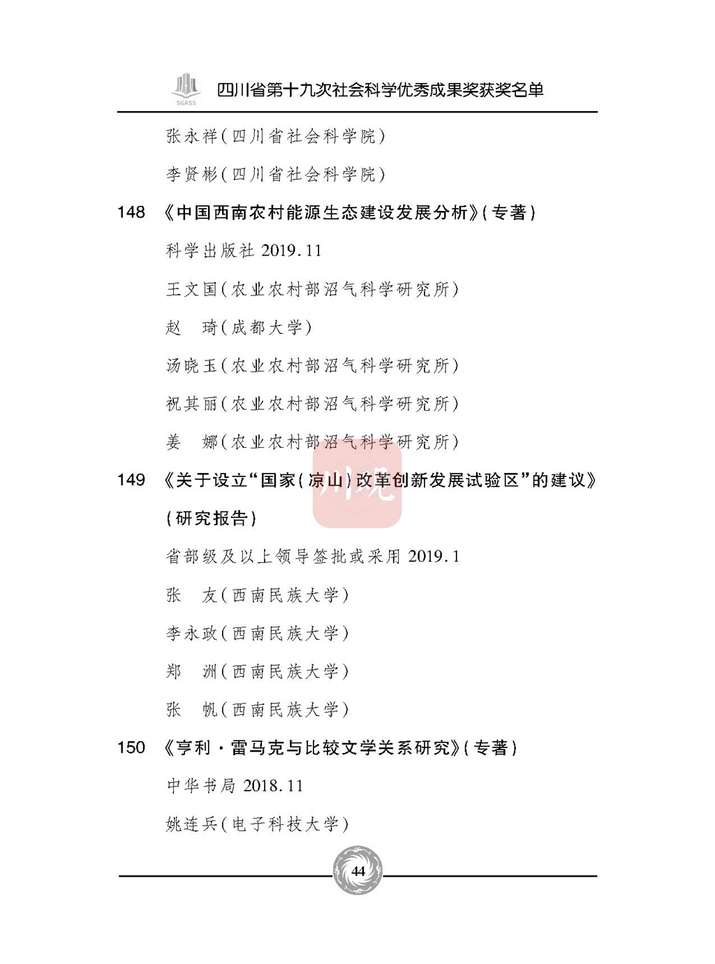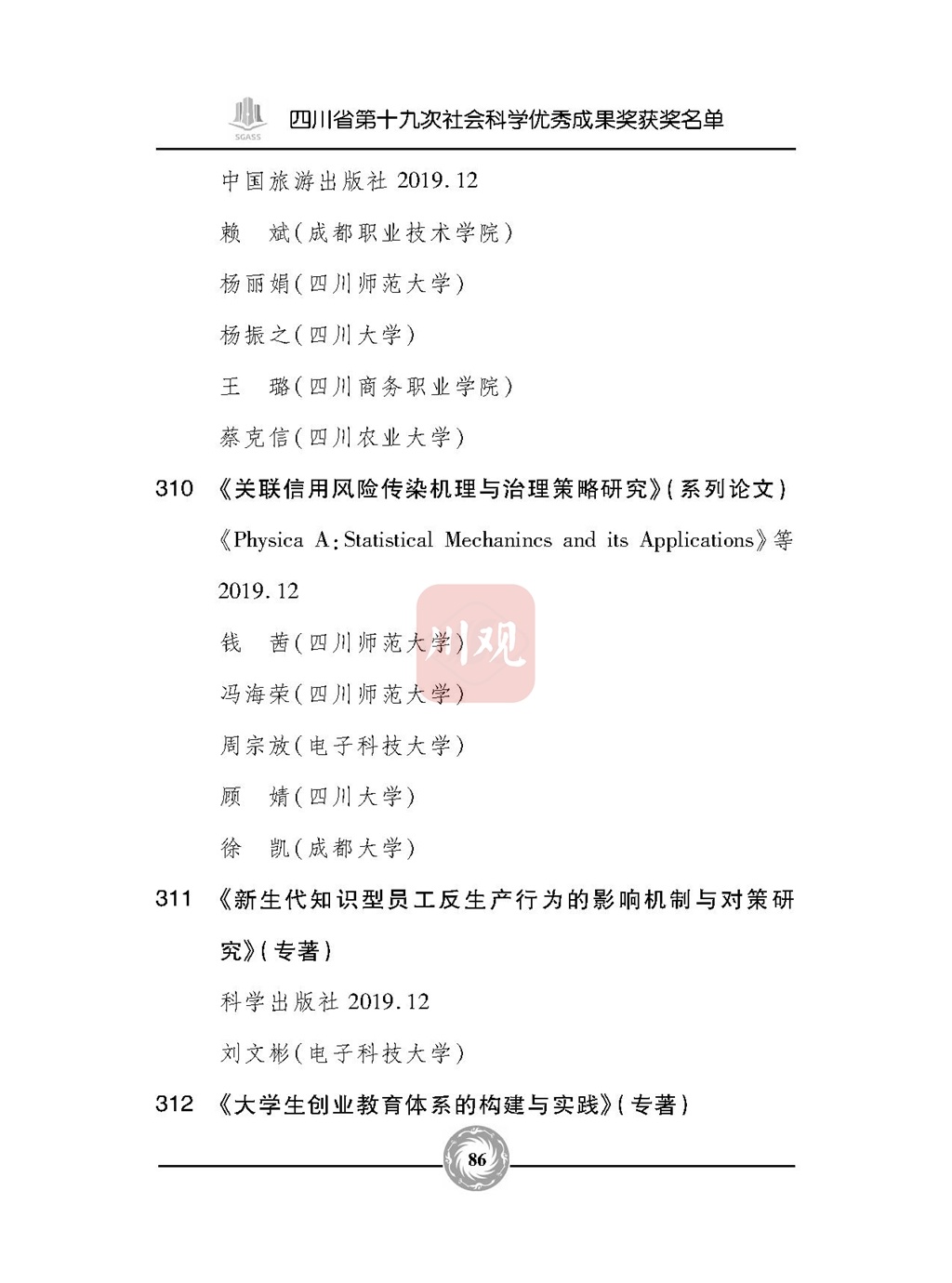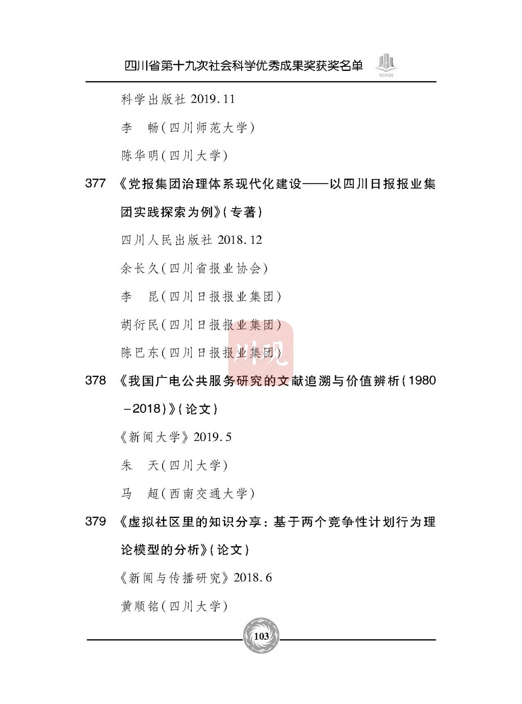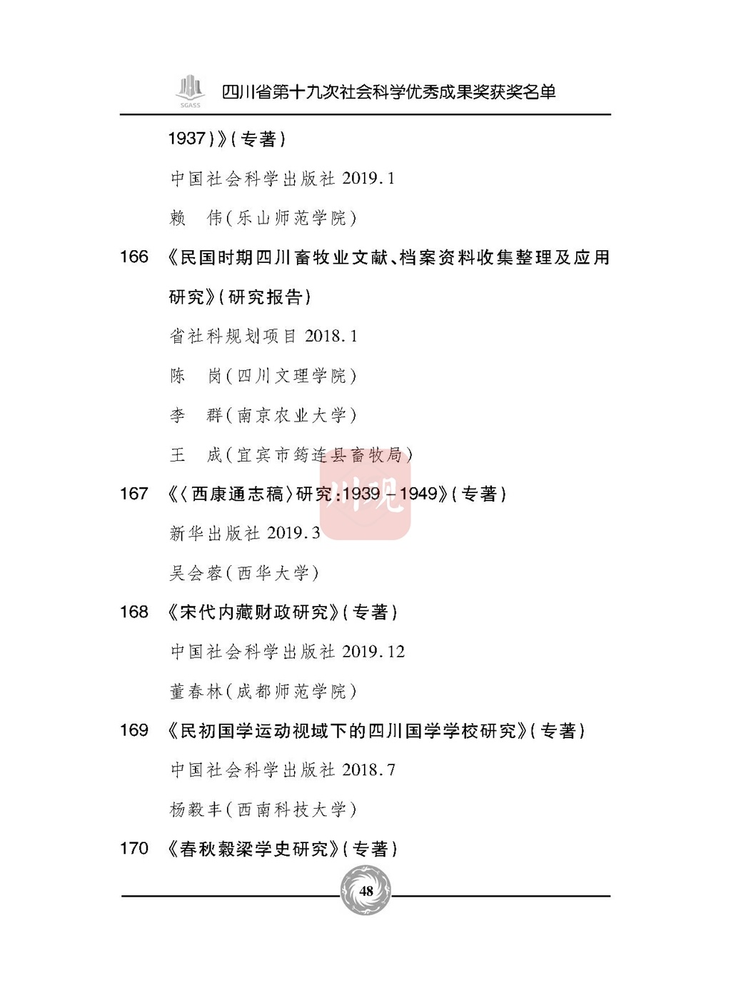 12月27日下午,四川省第十九次社会科学优秀成果奖颁奖大会在成都举行,隆重表彰2018年至2019年社会科学优秀成果,以及为四川省哲学社会科学发展作出突出贡献的专家学者。