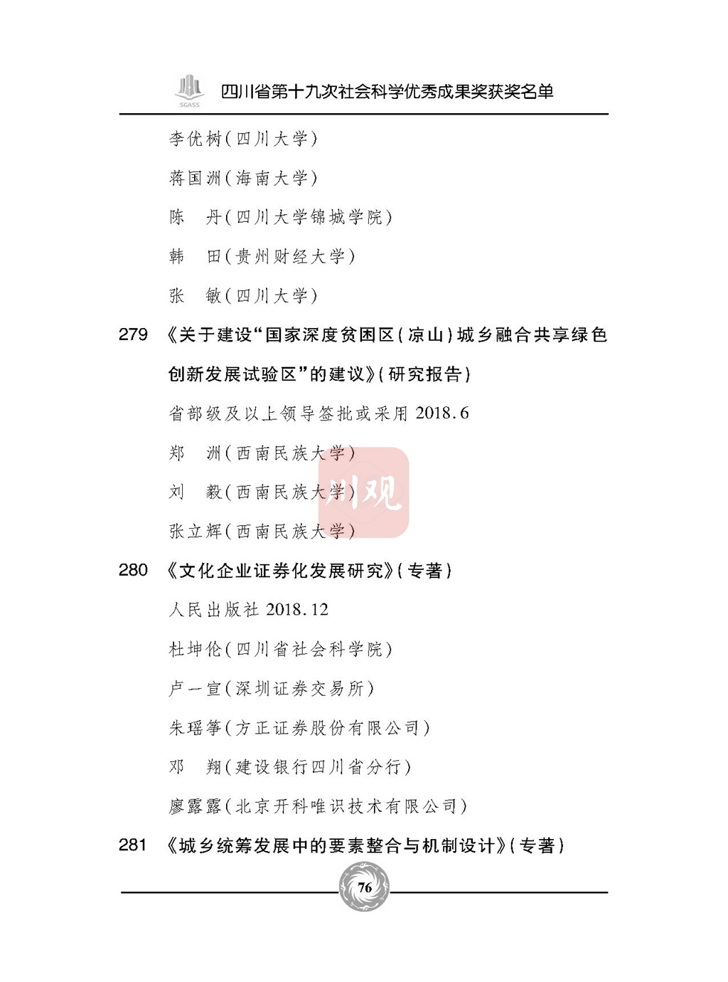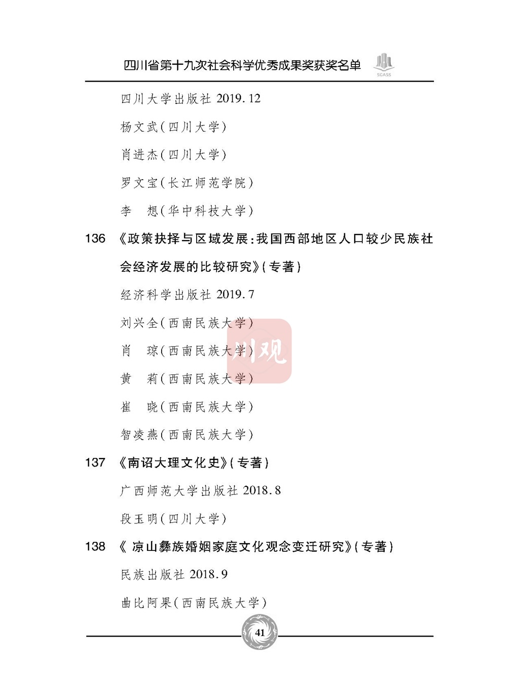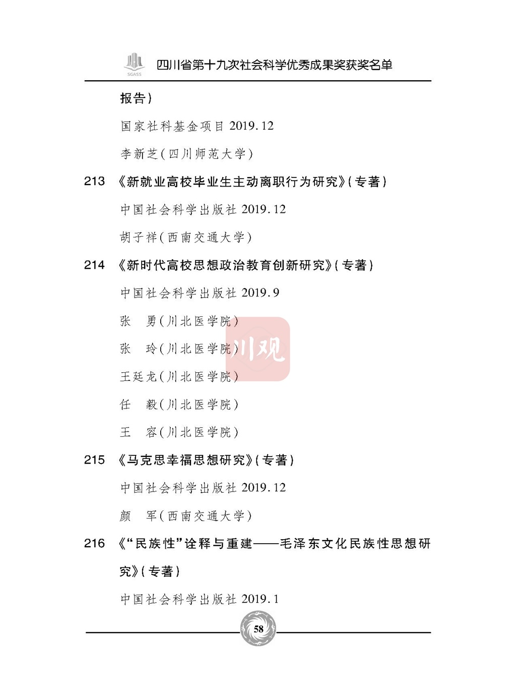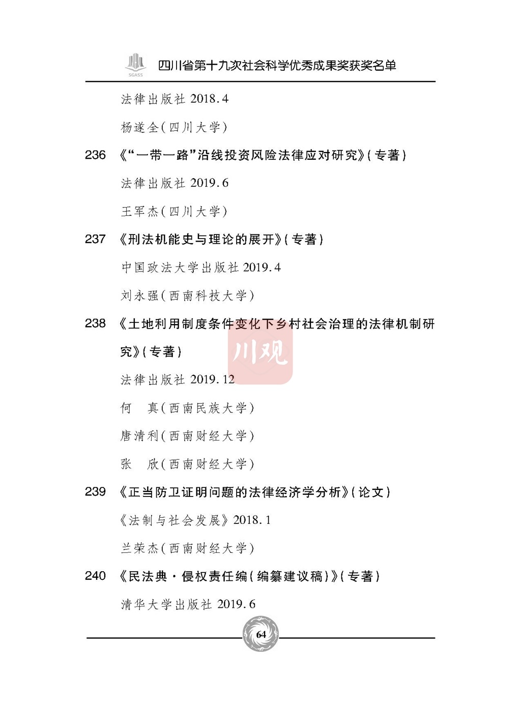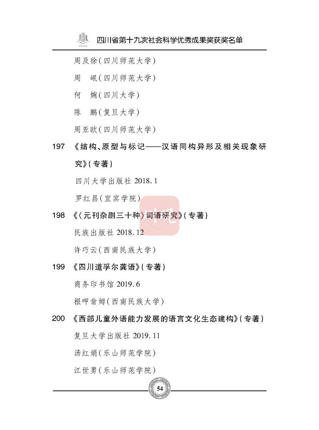 12月27日下午,四川省第十九次社会科学优秀成果奖颁奖大会在成都举行,隆重表彰2018年至2019年社会科学优秀成果,以及为四川省哲学社会科学发展作出突出贡献的专家学者。