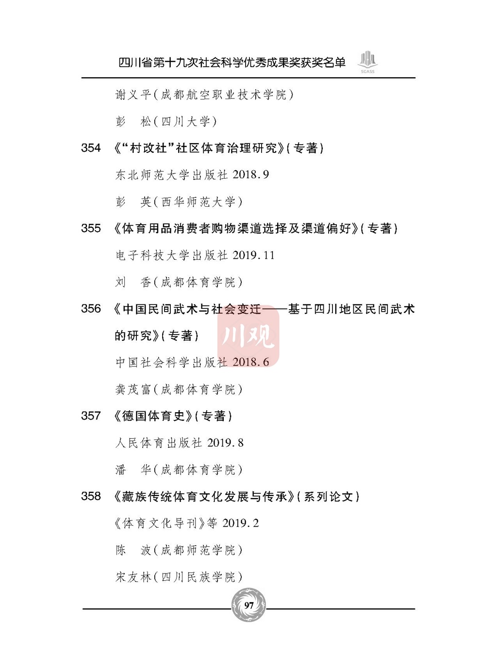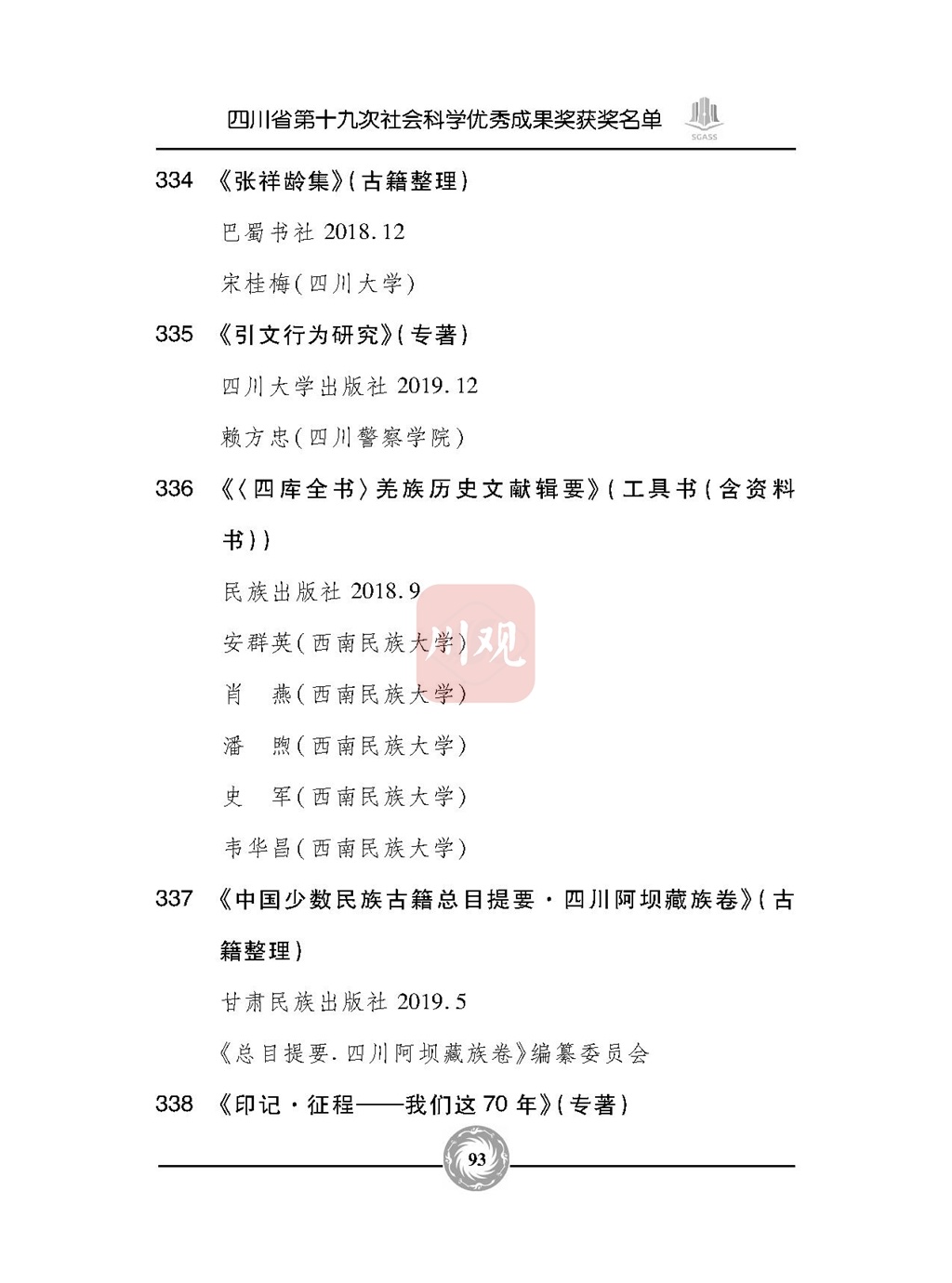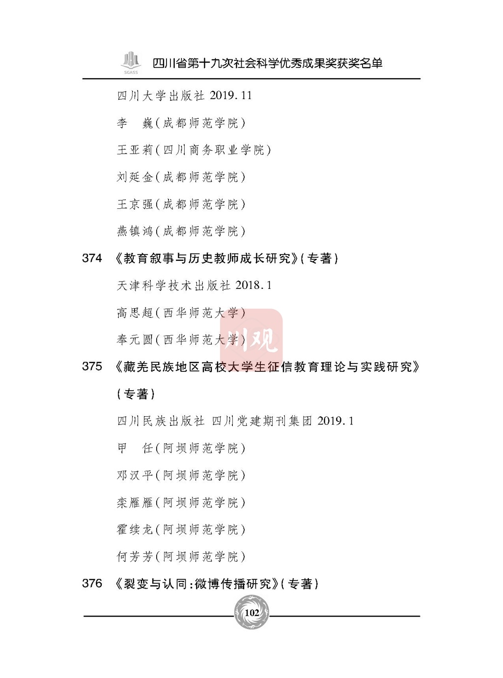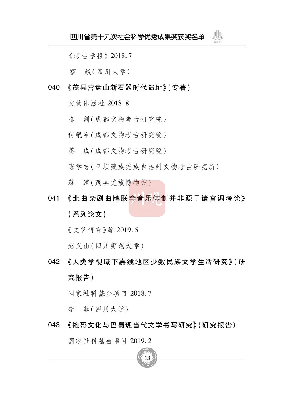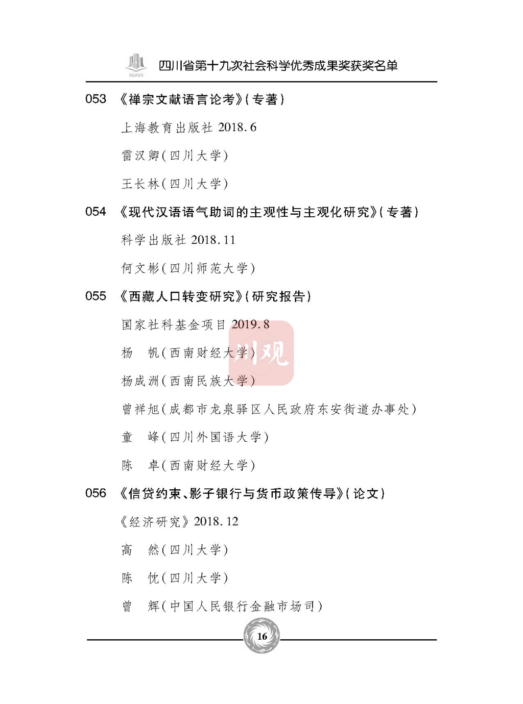 12月27日下午,四川省第十九次社会科学优秀成果奖颁奖大会在成都举行,隆重表彰2018年至2019年社会科学优秀成果,以及为四川省哲学社会科学发展作出突出贡献的专家学者。