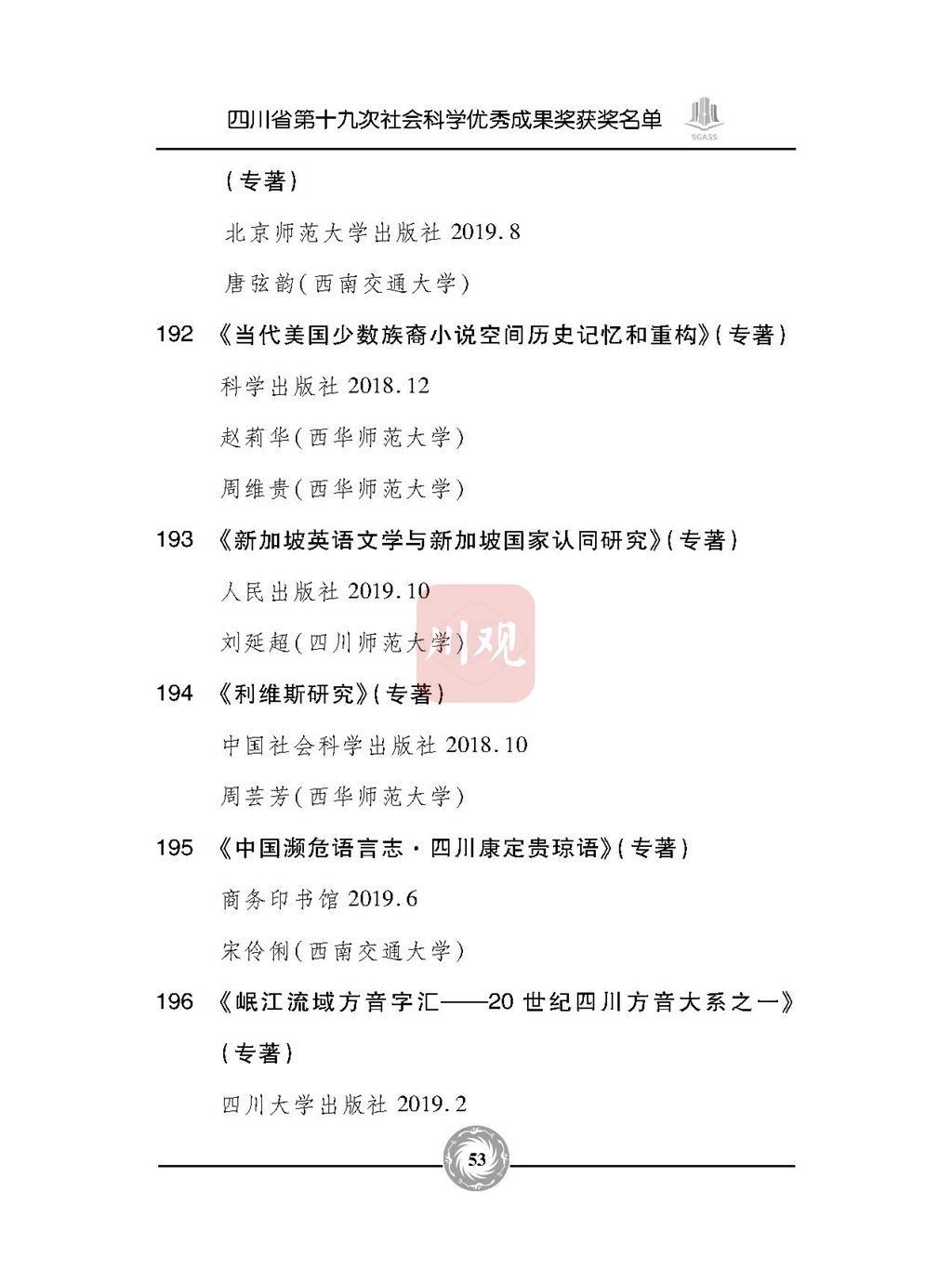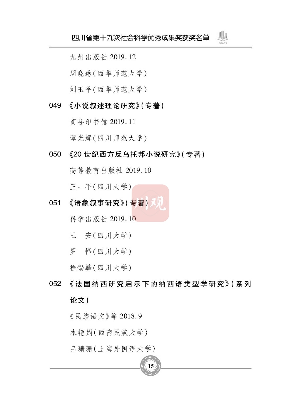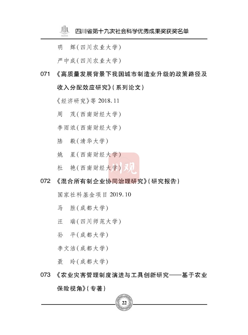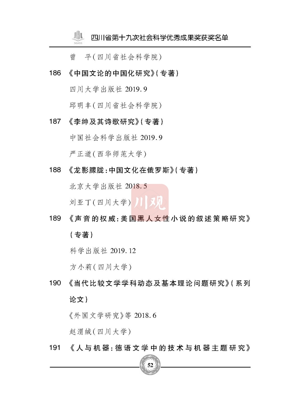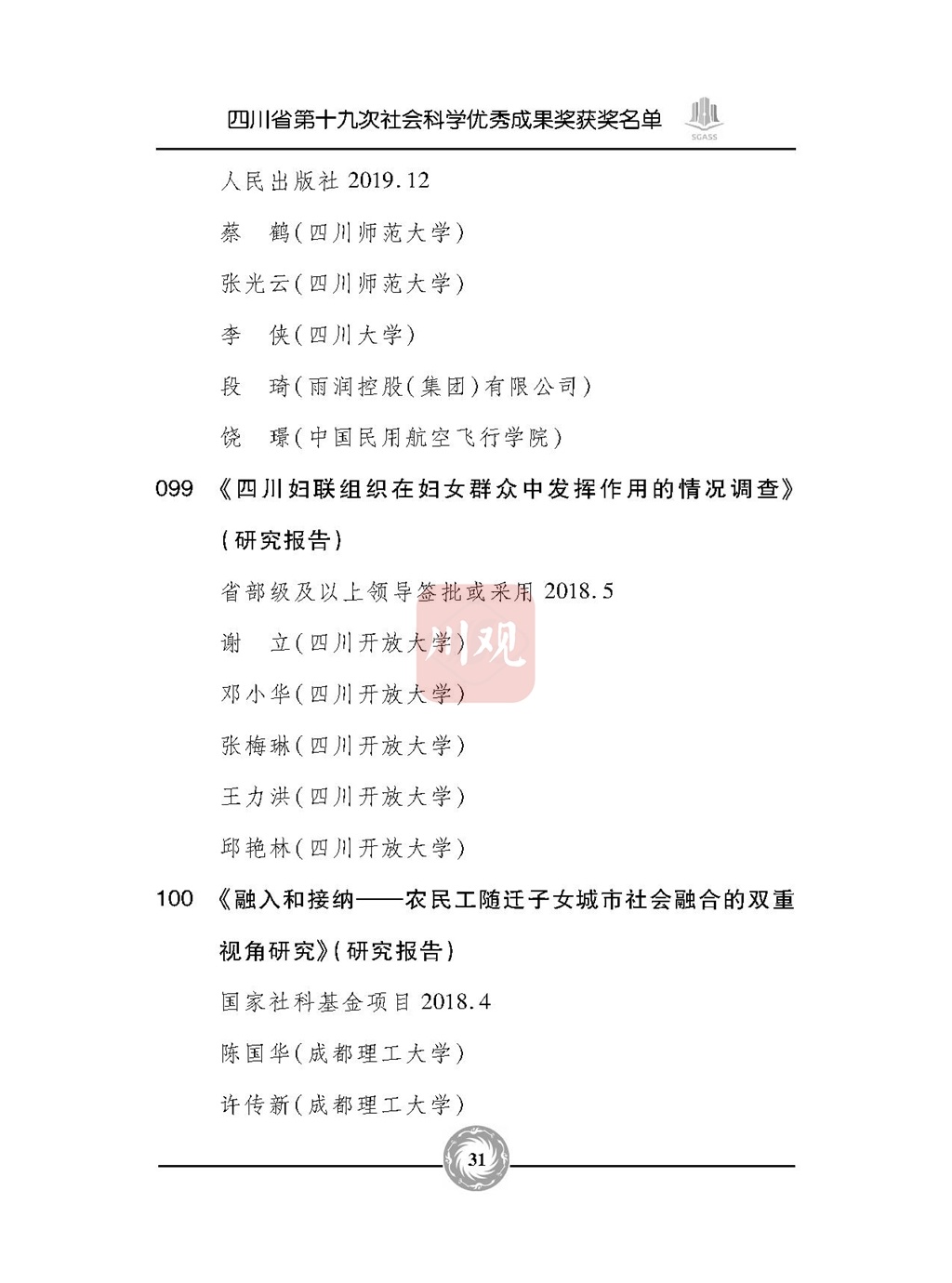 12月27日下午,四川省第十九次社会科学优秀成果奖颁奖大会在成都举行,隆重表彰2018年至2019年社会科学优秀成果,以及为四川省哲学社会科学发展作出突出贡献的专家学者。