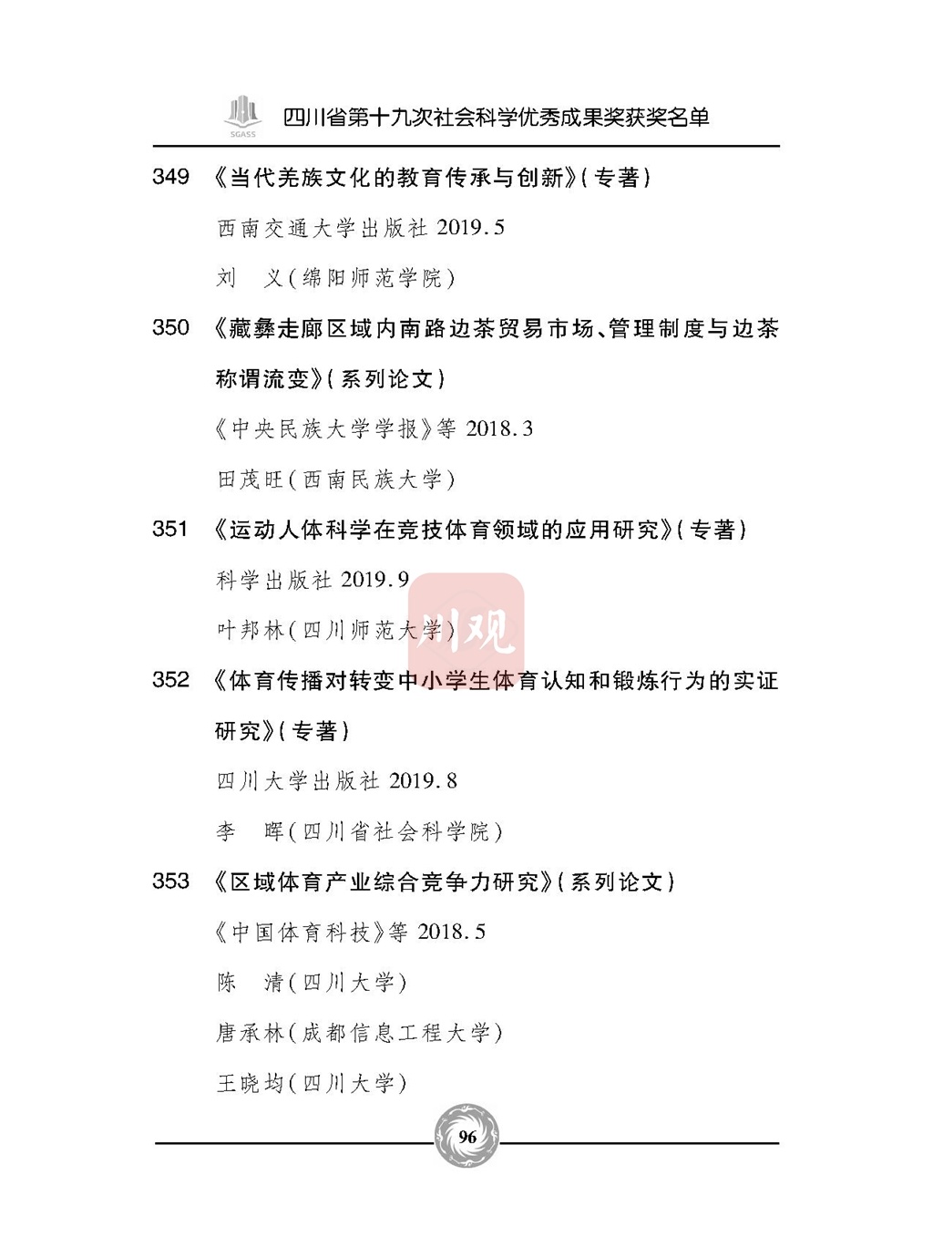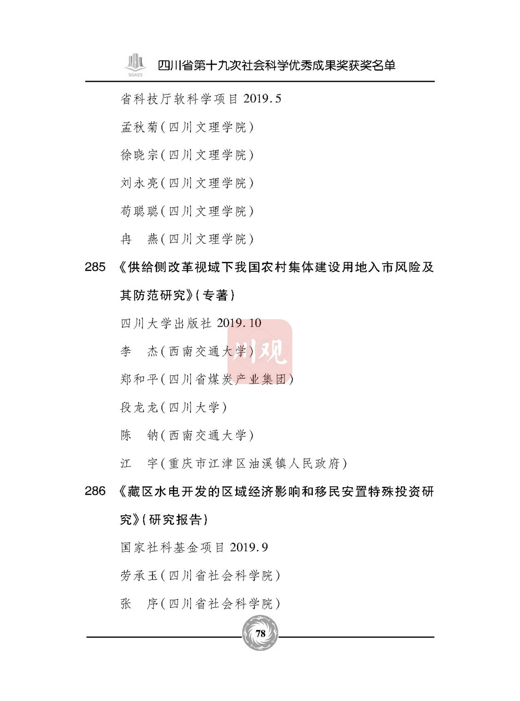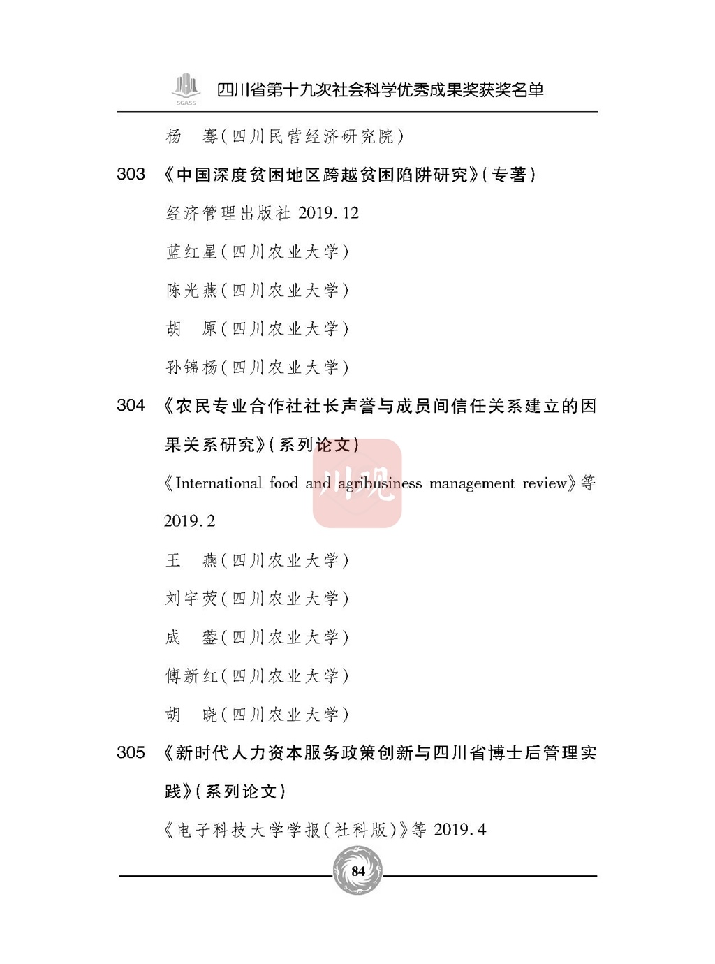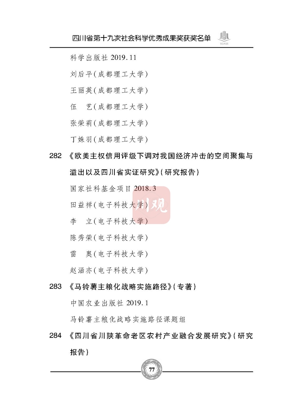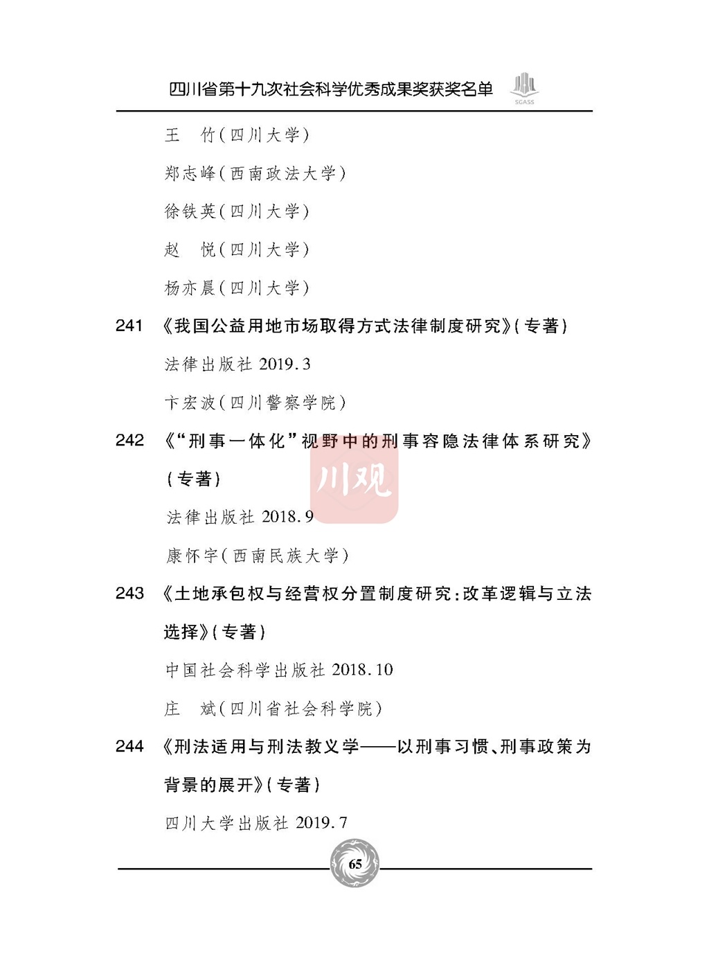 12月27日下午,四川省第十九次社会科学优秀成果奖颁奖大会在成都举行,隆重表彰2018年至2019年社会科学优秀成果,以及为四川省哲学社会科学发展作出突出贡献的专家学者。