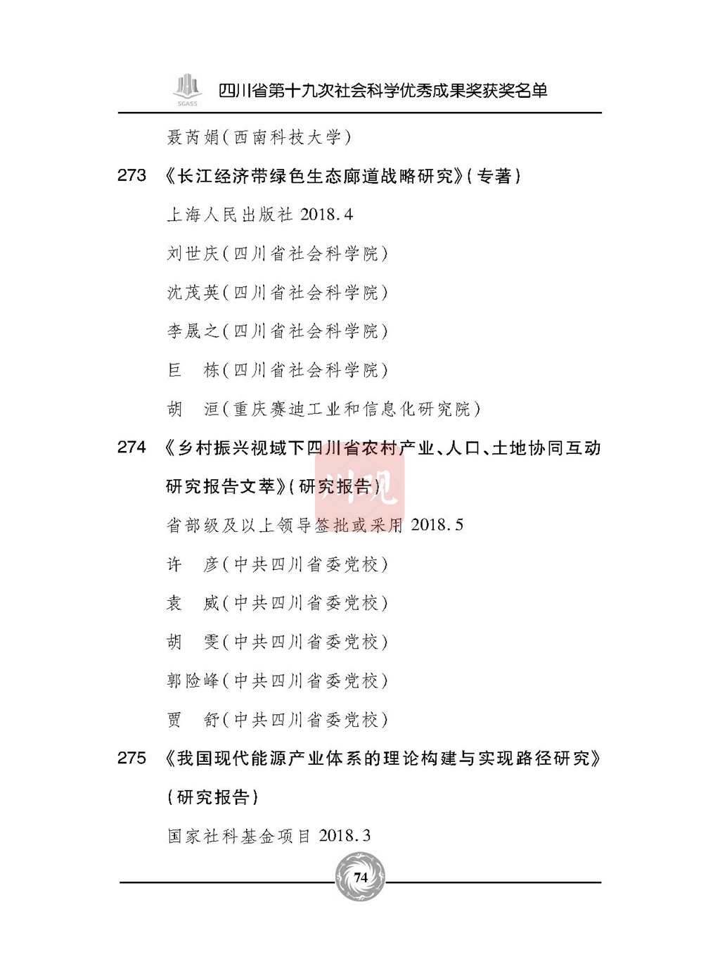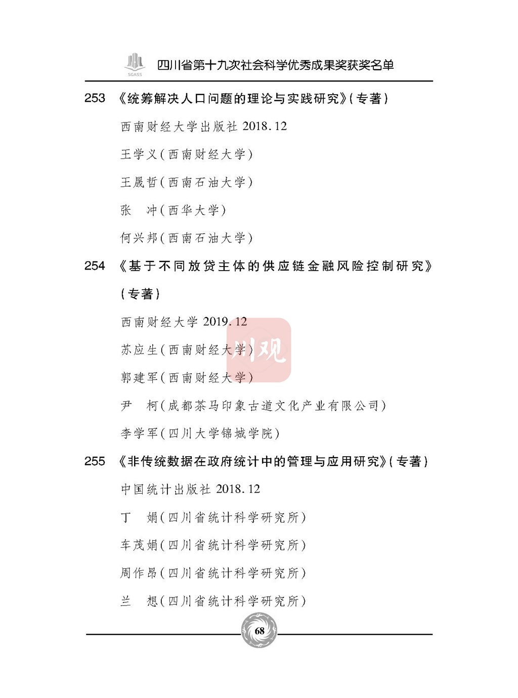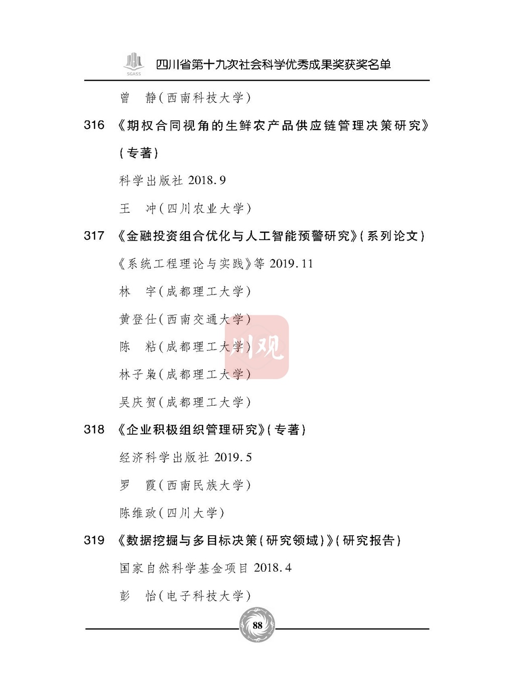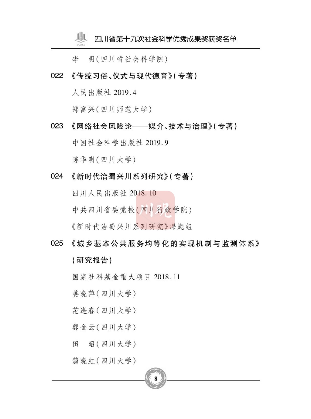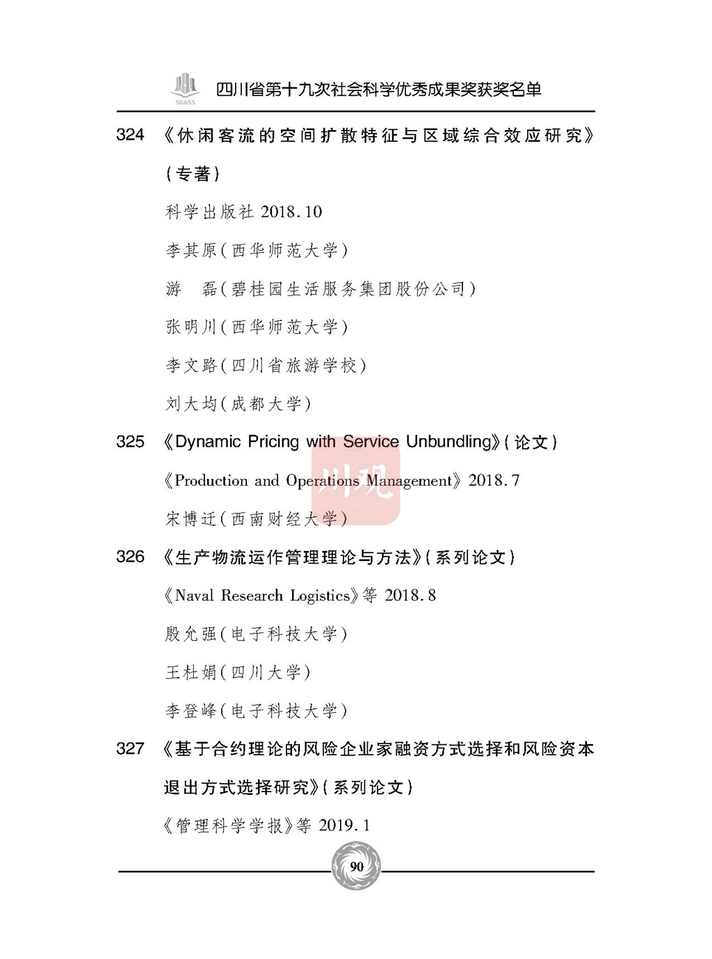 12月27日下午,四川省第十九次社会科学优秀成果奖颁奖大会在成都举行,隆重表彰2018年至2019年社会科学优秀成果,以及为四川省哲学社会科学发展作出突出贡献的专家学者。