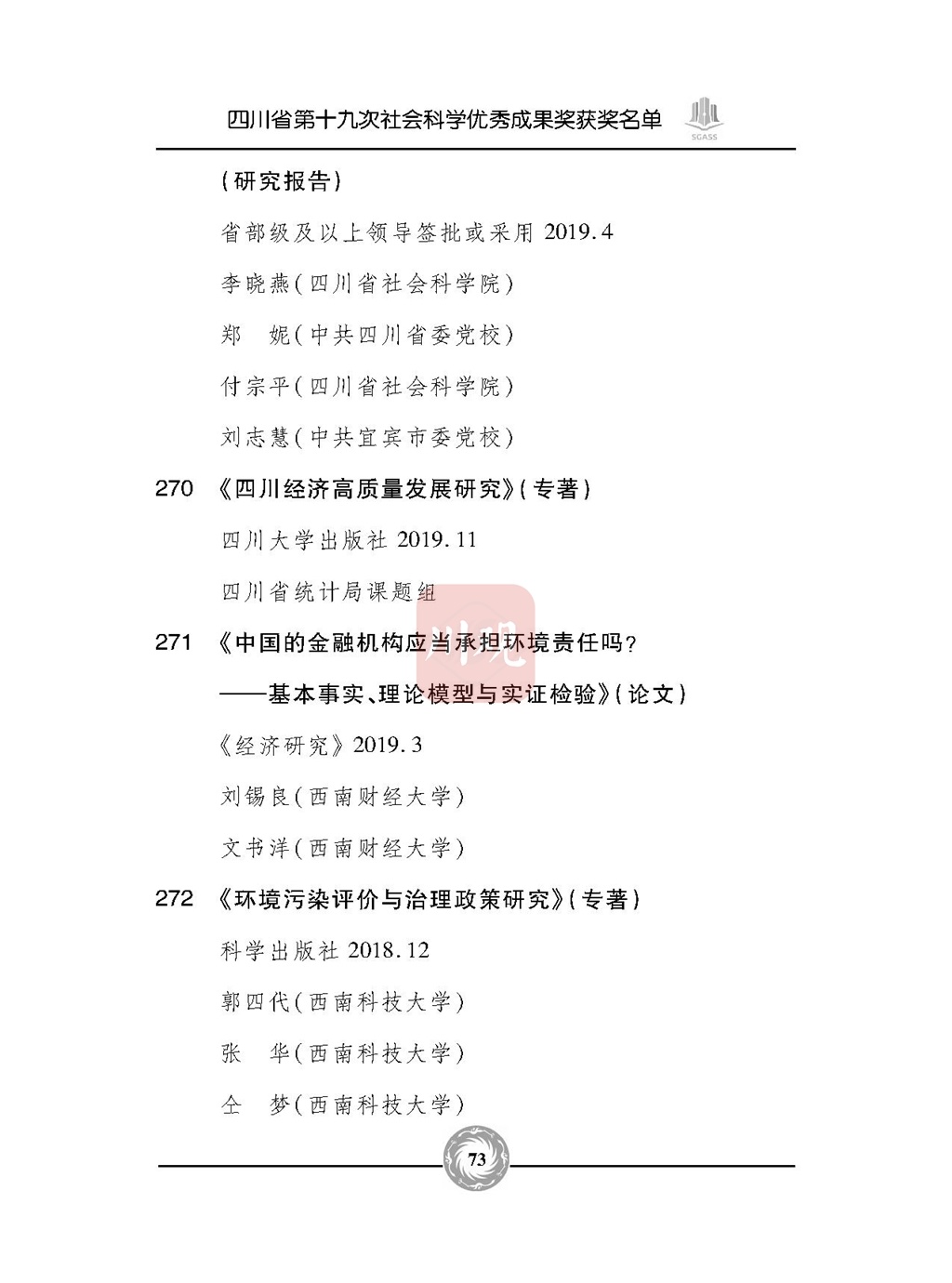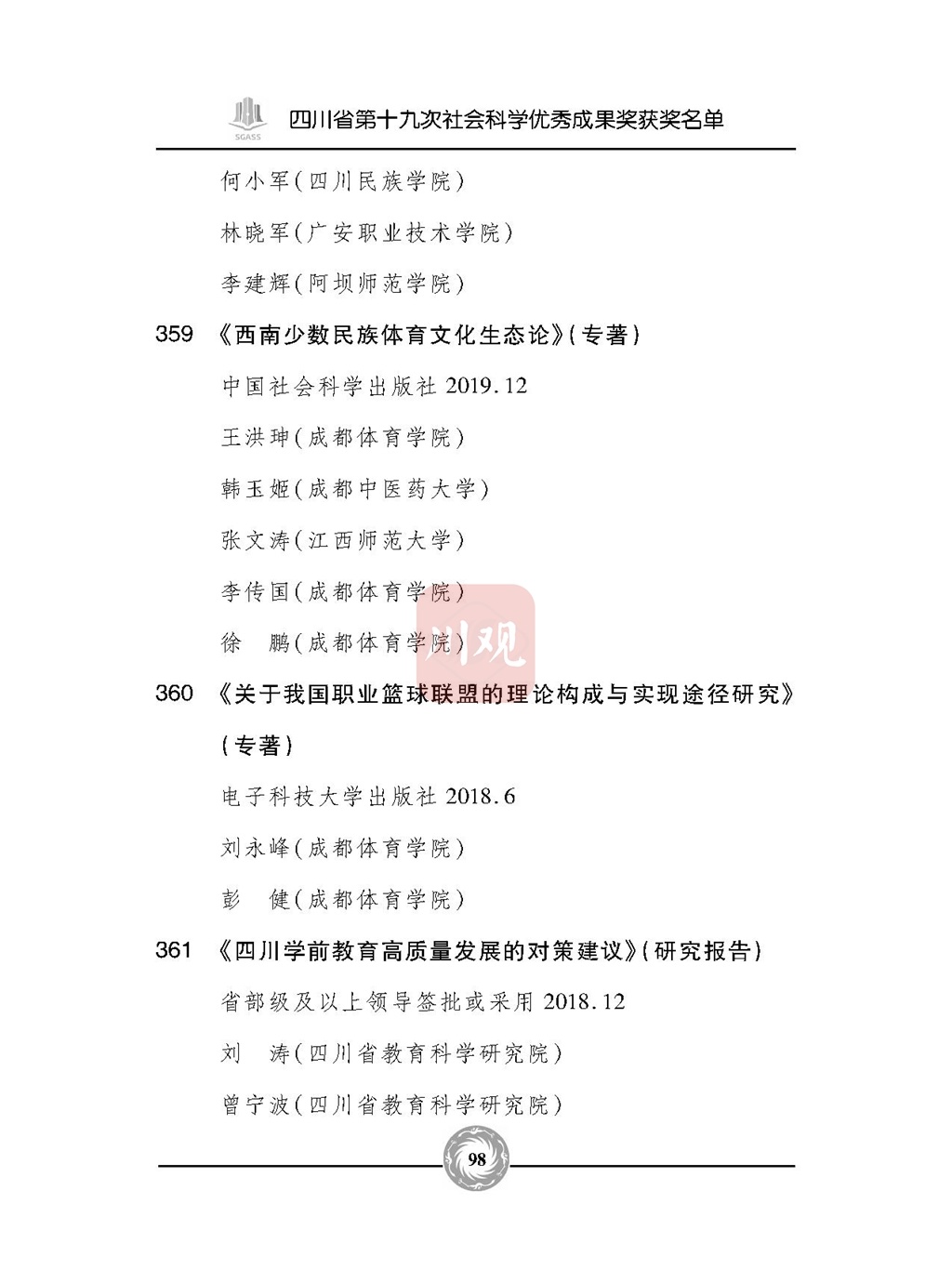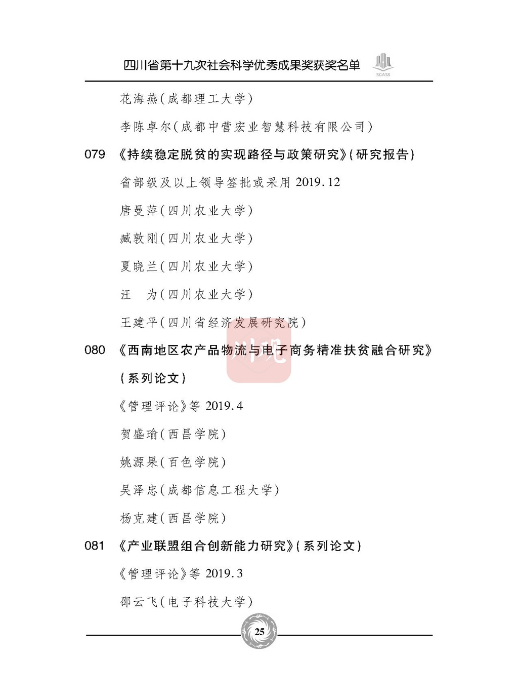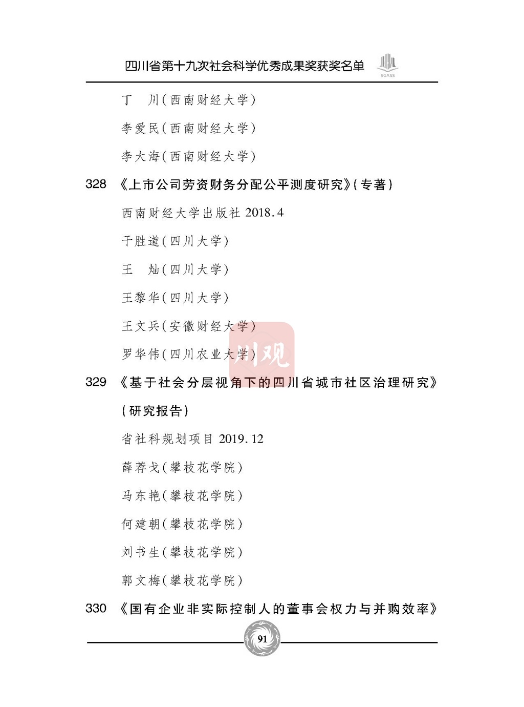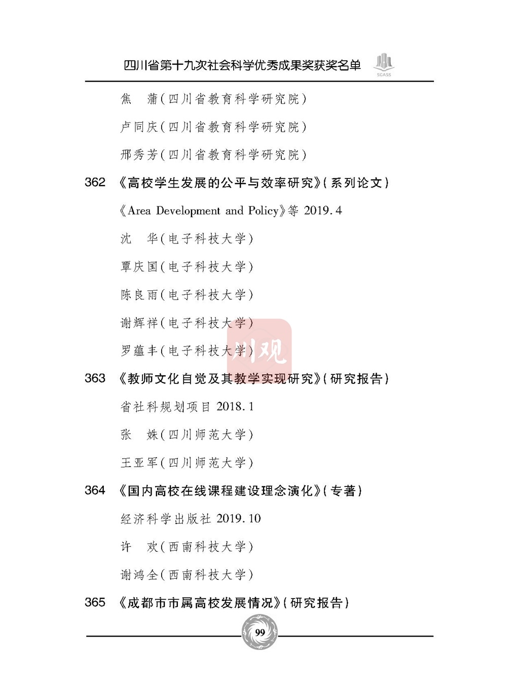 12月27日下午,四川省第十九次社会科学优秀成果奖颁奖大会在成都举行,隆重表彰2018年至2019年社会科学优秀成果,以及为四川省哲学社会科学发展作出突出贡献的专家学者。