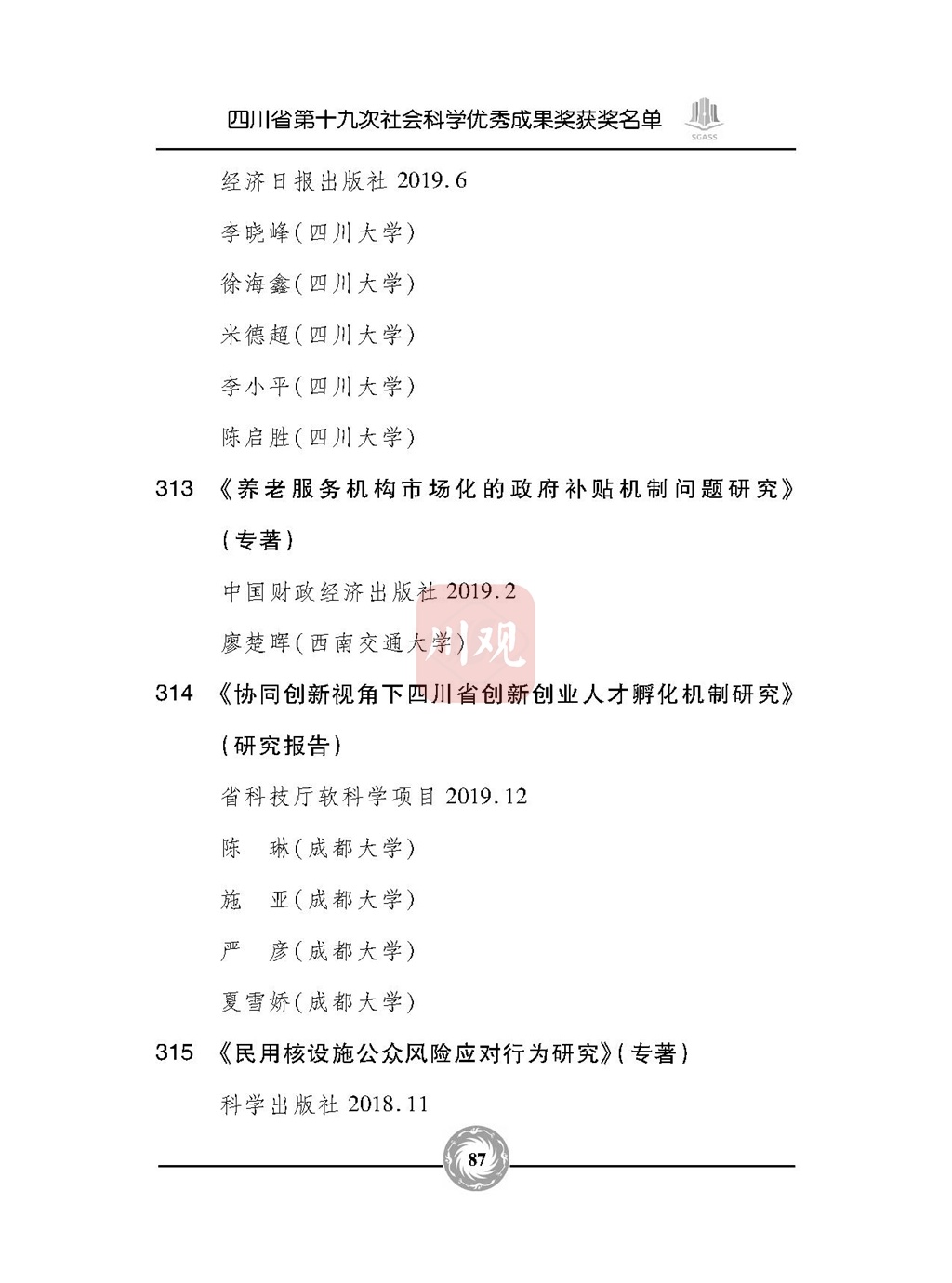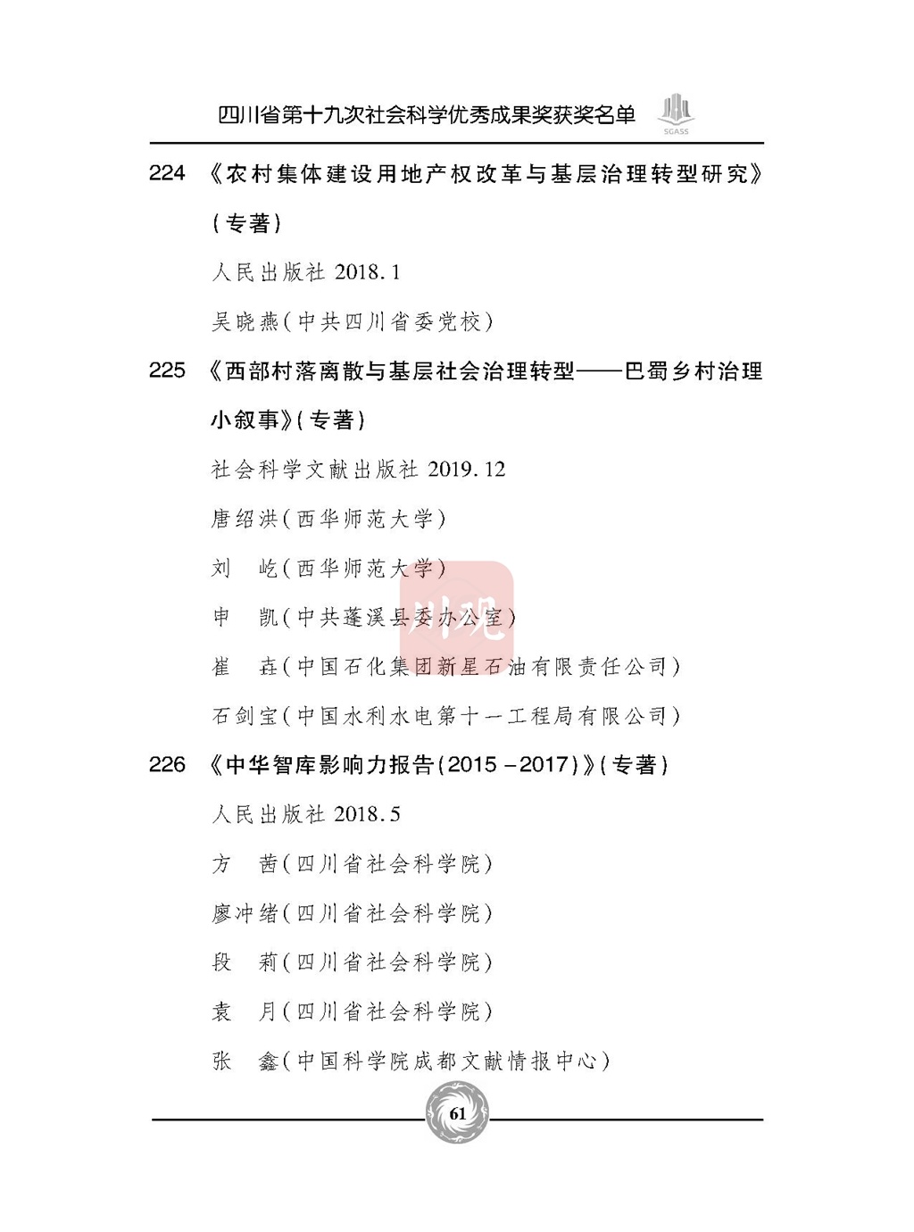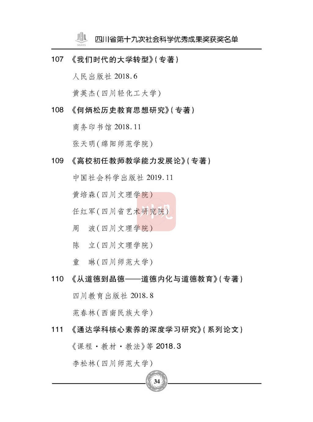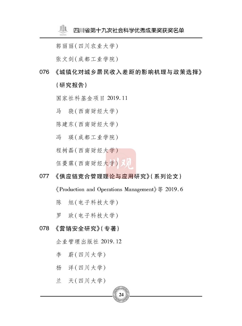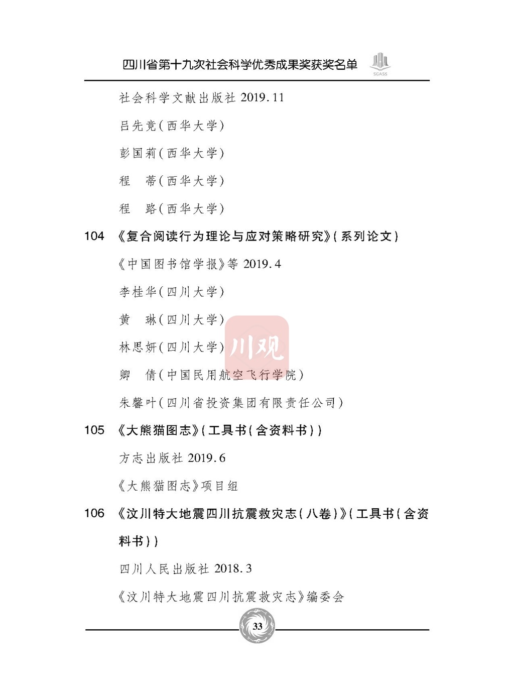 12月27日下午,四川省第十九次社会科学优秀成果奖颁奖大会在成都举行,隆重表彰2018年至2019年社会科学优秀成果,以及为四川省哲学社会科学发展作出突出贡献的专家学者。