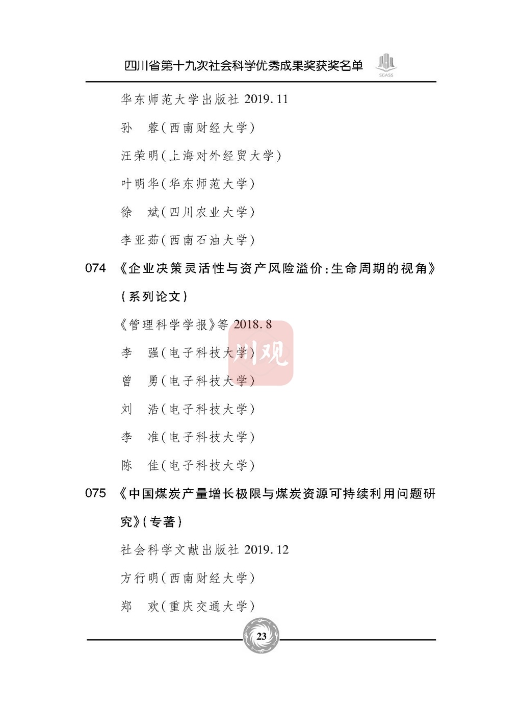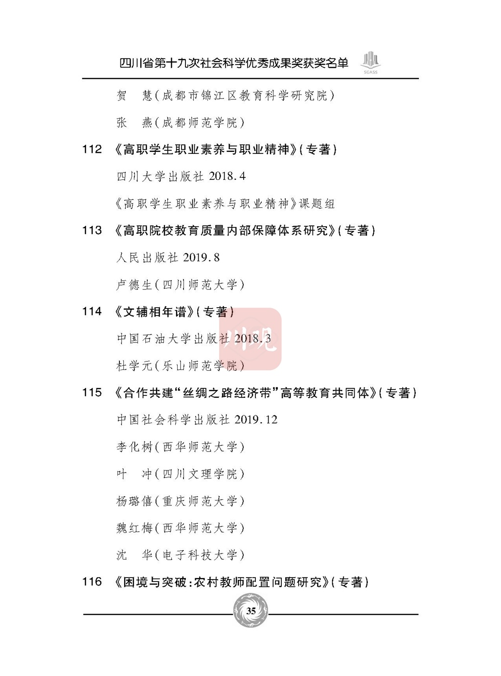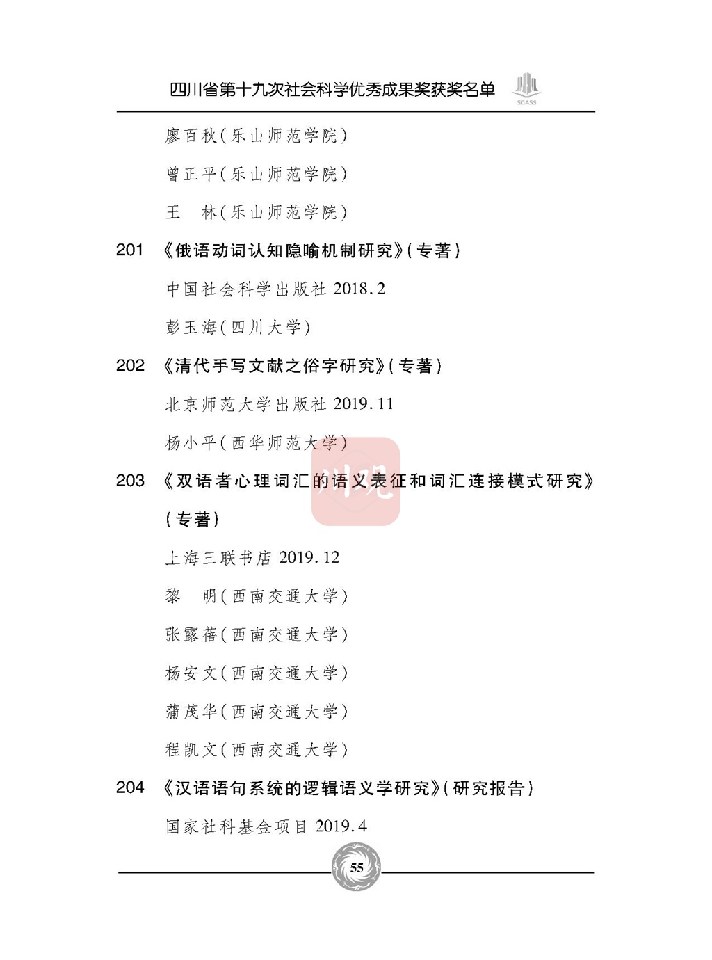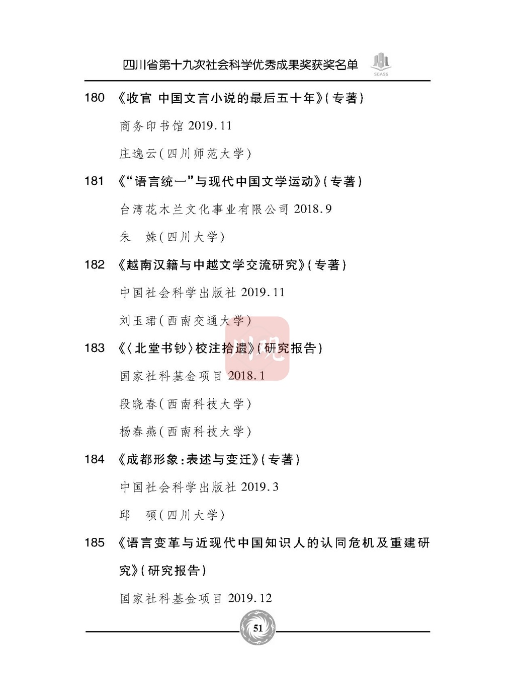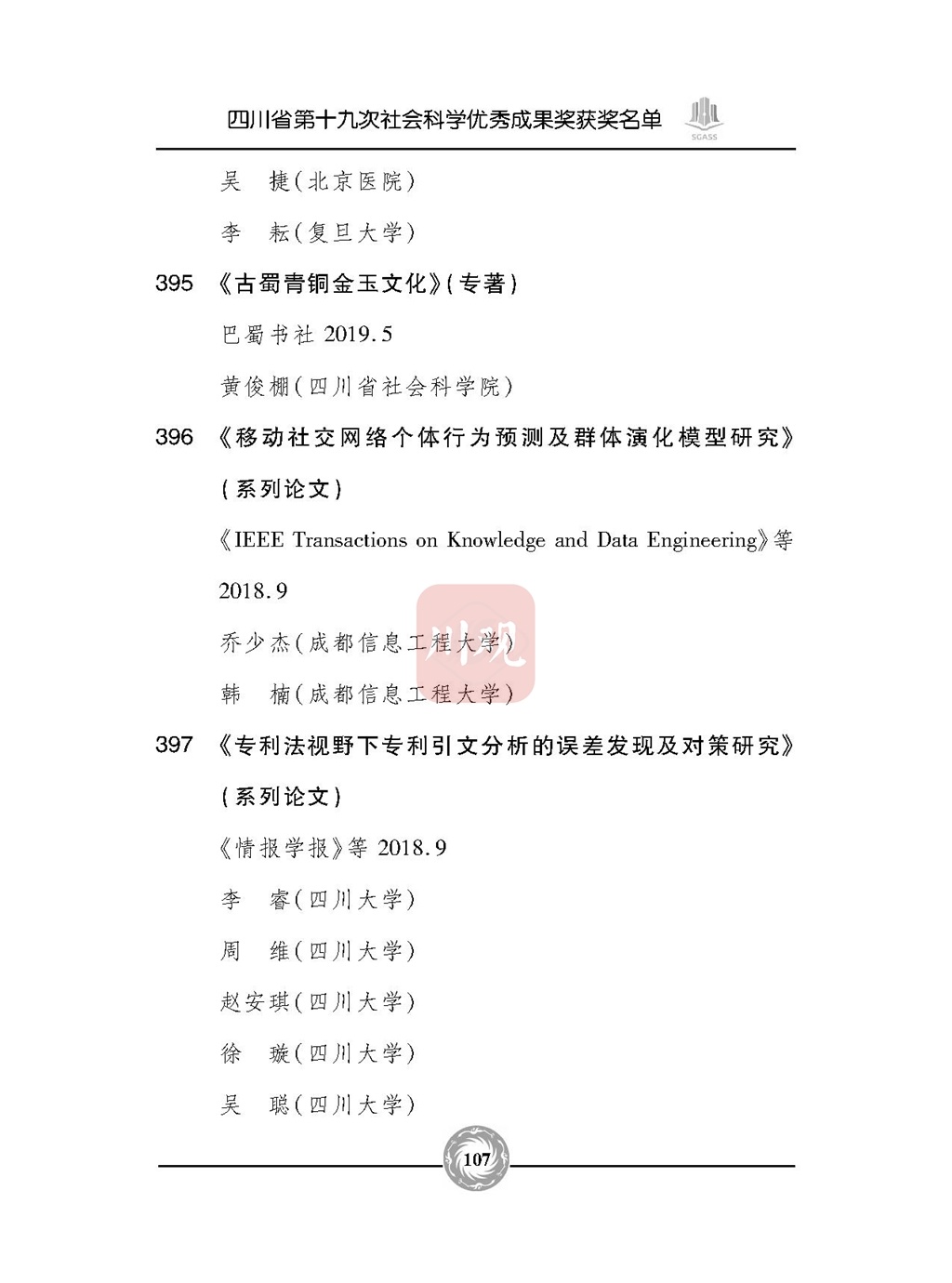 12月27日下午,四川省第十九次社会科学优秀成果奖颁奖大会在成都举行,隆重表彰2018年至2019年社会科学优秀成果,以及为四川省哲学社会科学发展作出突出贡献的专家学者。