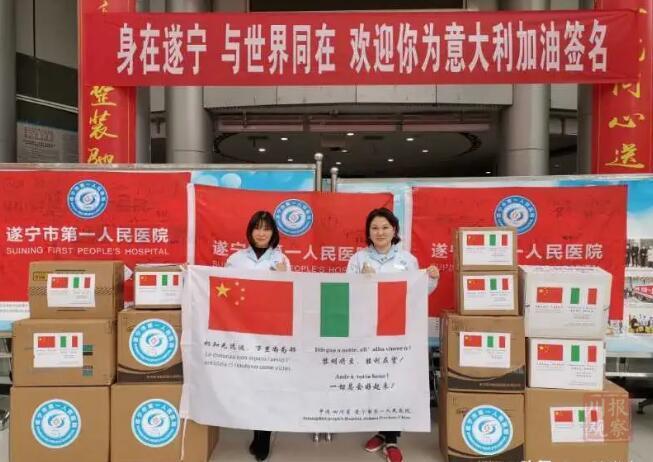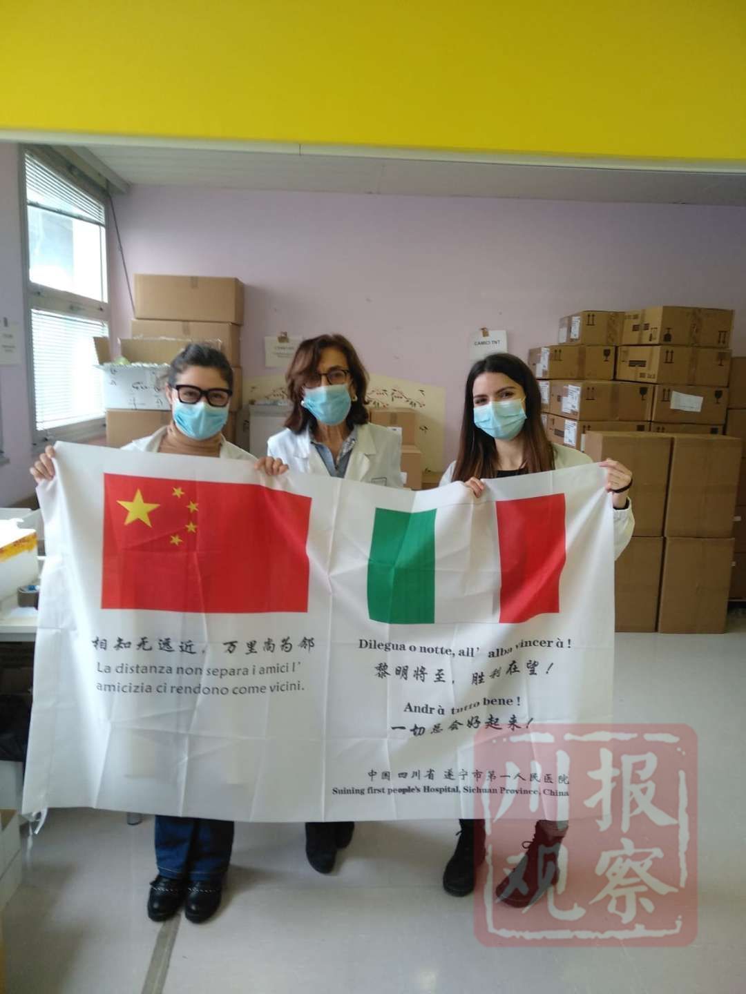 事实上,遂宁一院捐赠的抗疫物资是4月20日才抵达目的地,“看着‘相知无远近,万里尚为邻’印有中意两国国旗的横幅,意大利的朋友纷纷给我发来感谢。”至此,5名曾在意大利研修青年医生的心才算踏实了,“我们在意大利研修3个多月,学了不少专业知识,懂得两国医生肤色不同,灾难前更应携手合作。”黄艳说道。