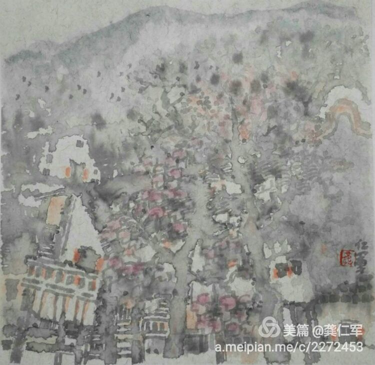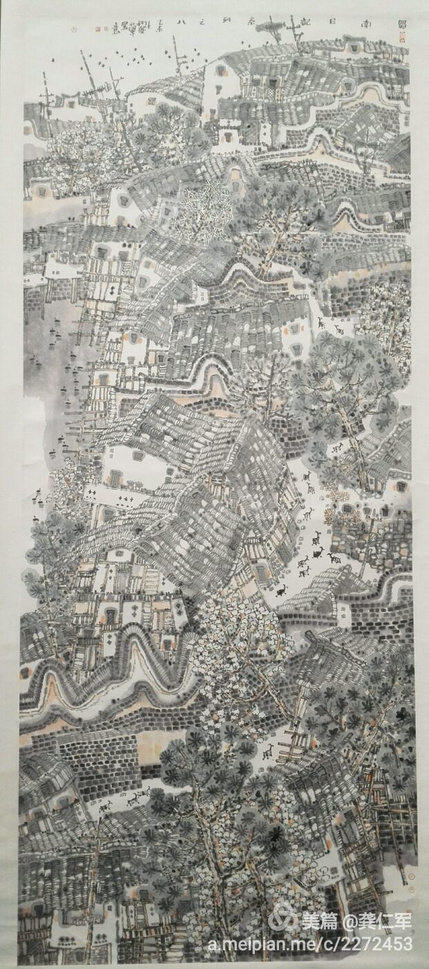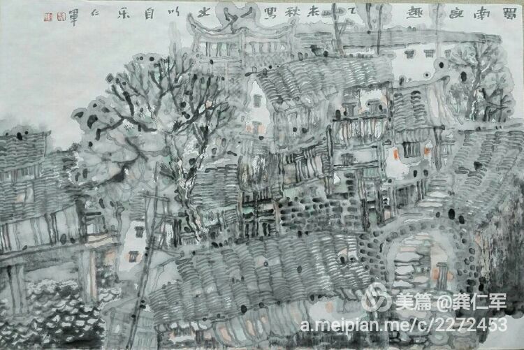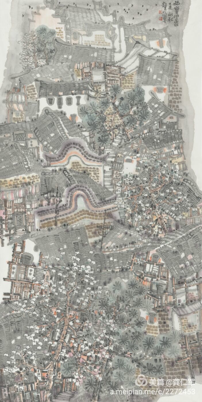 龚仁军喜山水却不停滞干山水表象,而是更进一步,捕捉了山水间充溢天地正气和人格灵气的美妙建筑,并于此安下心来,潜力营造他的精神家园。他将目光转向令他神往的民居,因为那里有一种难以割舍的人文情调在将他呼唤,勾起他对岁月沧桑的记忆和对时代烙印的追思。