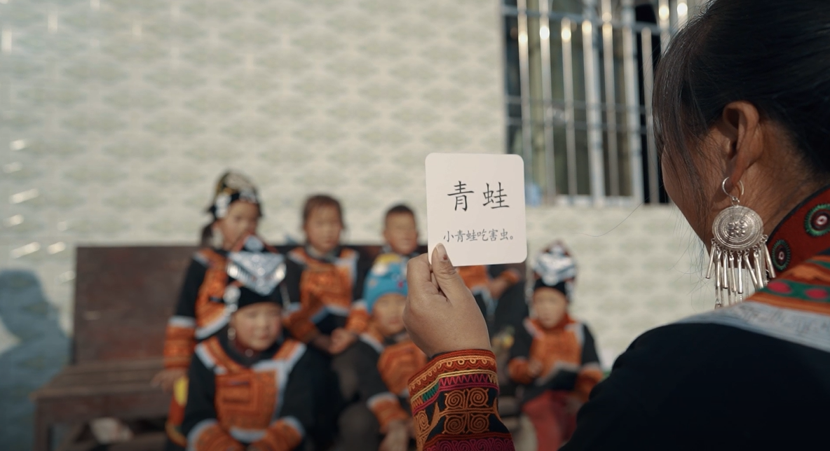 阿西每天都会带着孩童们唱歌、识图,用普通话念简单的日常用语。阿西也希望,通过普通话的普及,搭建出一座通向山外世界的桥梁,让更多彝族儿女走出大山,再回来建设家乡。