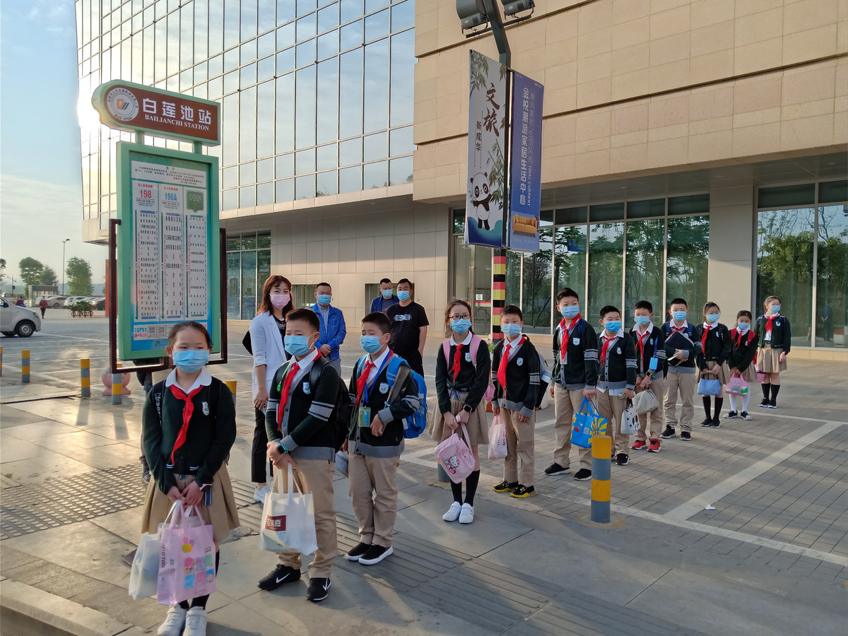 在白莲池公交站,12名熊猫路小学五、六年级的同学正排队等待坐上复学高峰线路——新开通的198A路公交,回到久违的校园。