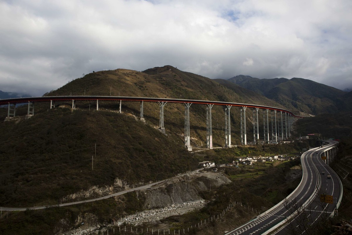 2012年通车的雅西高速全长240公里,是北京至昆明高速公路和甘肃兰州至云南磨憨公路在四川境内的重要组成部分,桥隧比达55%,跨越青衣江、大渡河、安宁河等水系和12条地震断裂带,被国内外专家学者公认为“国内乃至全世界自然环境最恶劣、工程难度最大、科技含量最高的山区高速公路之一”,有“天梯高速”“最美高速”“云端上的高速公路”之誉。