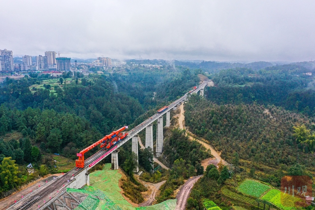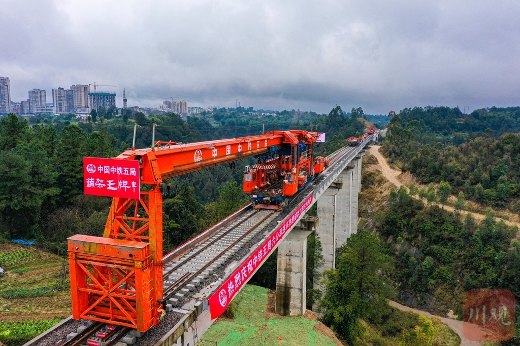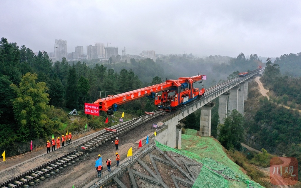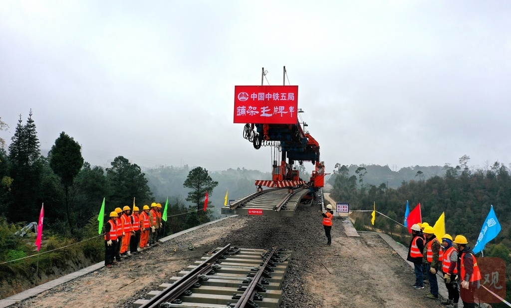 12月28日,随着施工人员将最后一组轨排铺设在内江市威远县连界镇三岔河特大桥桥头路基上,由中铁五局负责施工的连界至乐山铁路正线轨道贯通。这标志着连乐铁路建设取得重大阶段性进展,为开通运营通打下坚实的基础。