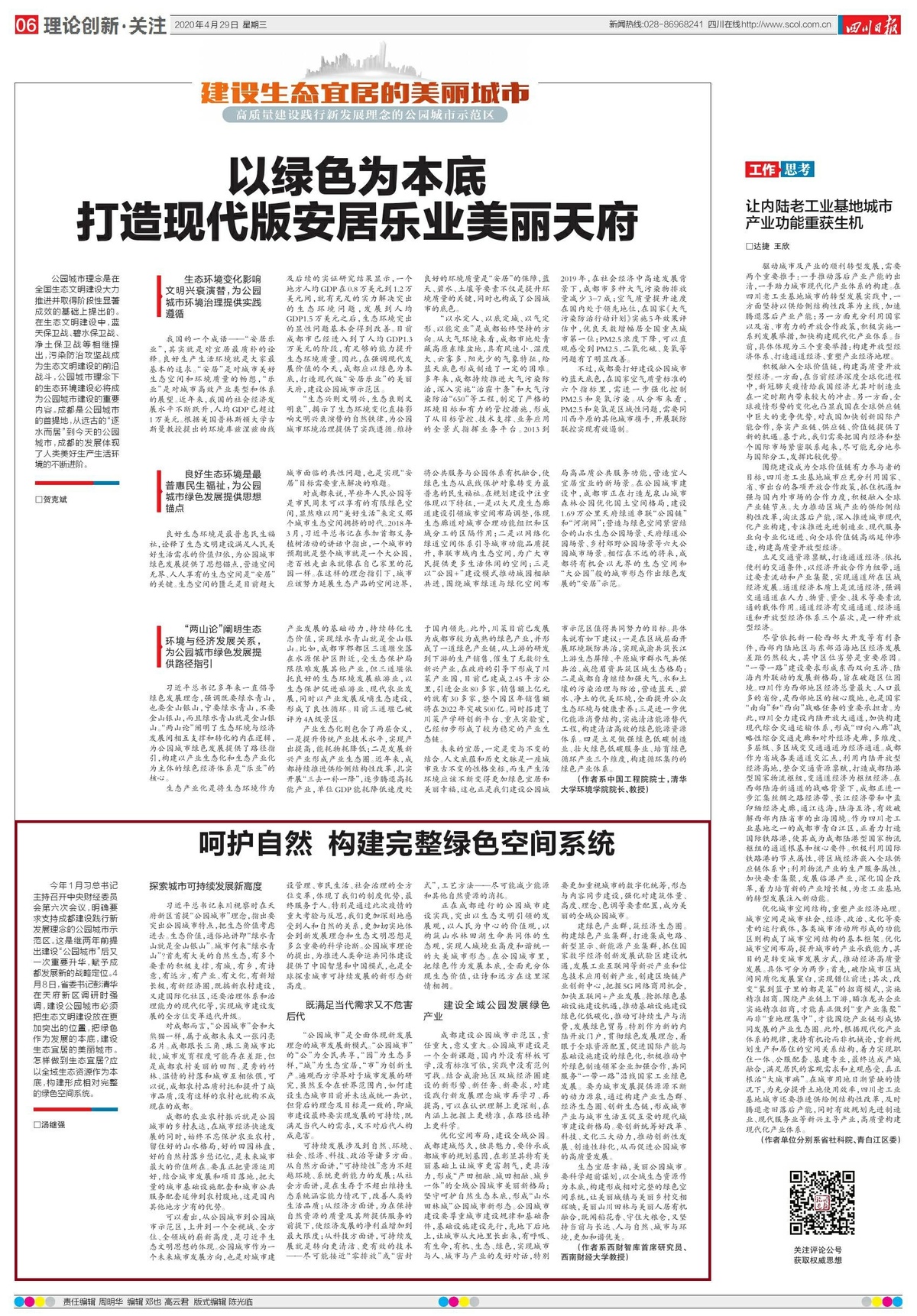 建绿色产业群,筑经济生态圈。构建绿色产业集群,打造集成电路、新型显示、新能源产业集群,抓住国家数字经济创新发展试验区建设机遇,发展工业互联网等新兴产业和信息技术应用创新产业,创建区块链产业创新中心,把握5G网络商用机会,加快互联网+产业发展。抢抓绿色基础设施建设机遇,推动基础设施建设绿色化低碳化,推动可持续生产与消费,发展绿色贸易。特别作为新的内陆开放门户,贯彻绿色发展理念,着眼于全球资源配置,促进国际产能与基础设施建设的绿色化,积极推动中外绿色制造领军企业加强合作,共同服务“一带一路”沿线国家工业绿色发展。要为城市发展提供源源不断的动力源泉,通过构建产业生态群、经济生态圈、创新生态链,形成城市产业与城市生活互促互荣的现代城市建设新格局。要创新统筹好改革、科技、文化三大动力,推动创新性发展、创造性转化,从而促进公园城市的高质量发展。