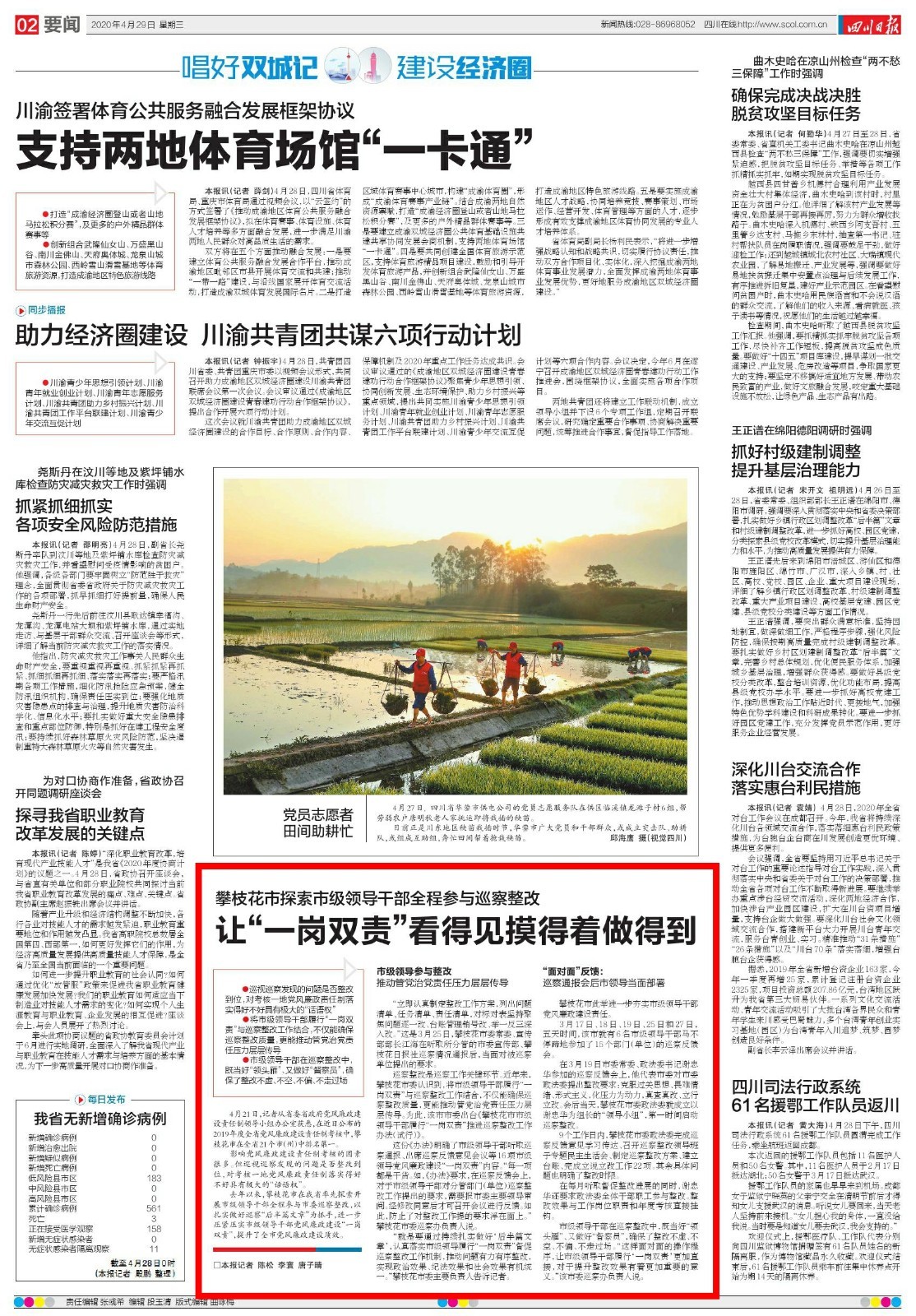 去年以来,攀枝花市在我省率先探索开展市级领导干部全程参与市委巡察整改,以扎实做好巡察“后半篇文章”为抓手,进一步压紧压实市级领导干部党风廉政建设“一岗双责”,提升了全市党风廉政建设质效。