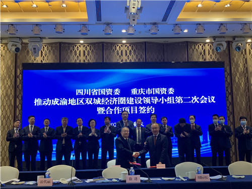 4月29日,川渝国资委推动成渝地区双城经济圈建设领导小组第二次会议暨合作项目签约在重庆举行。从3月中下旬举行第一视频会议算起,仅过近一个半月时间,两地国资委就将线上会面洽谈转为线下合作签约,一揽子合作项目从谋划走向落地。