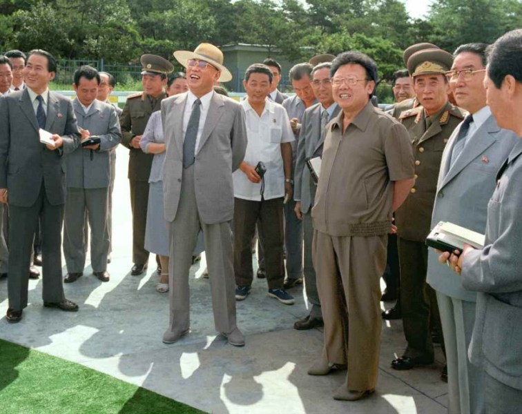 1985年8月,金日成和金正日视察万景台水上乐园