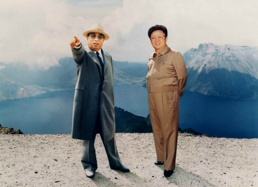金日成和金正日在长白山上