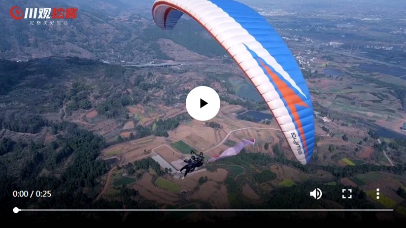 成都市金堂县女滑翔伞爱好者用自己独特的方式,在浩瀚的天空中向大家展现成都是一座休闲、开放、包容、青春的生活城市。
