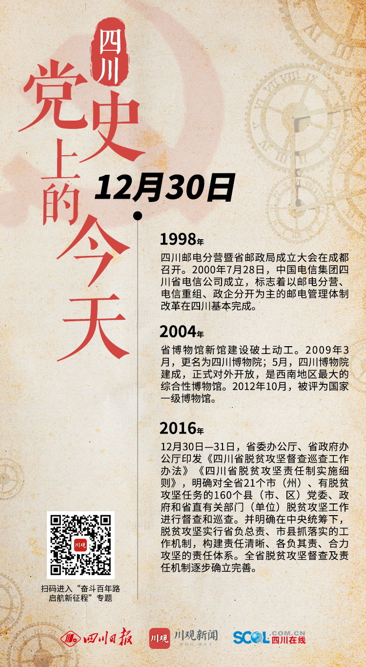 1998年 四川邮电分营暨省邮政局成立大会在成都召开。2000年7月28日,中国电信集团四川省电信公司成立,标志着以邮电分营、电信重组、政企分开为主的邮电管理体制改革在四川基本完成。