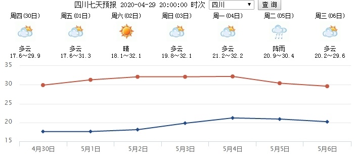 先给大家吃颗定心丸:四川省气象台预计,五一假期,我省无大范围强降雨天气过程,盆地大部以多云到晴的天气为主;川西高原和攀西地区以多云间阴天气为主,多分散性阵雨,其中凉山州局部地方有中雨。全省大部地方气温略偏高,波动幅度不大。