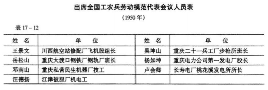 据介绍,从1950年下半年到1951年上半年,重庆市、川北区、川南区分别召开了劳模会,开始了劳模的评选管理工作。据 1952年10月统计,全川已涌现出先进工作者4085名、省级劳模416名、全国劳模7名。