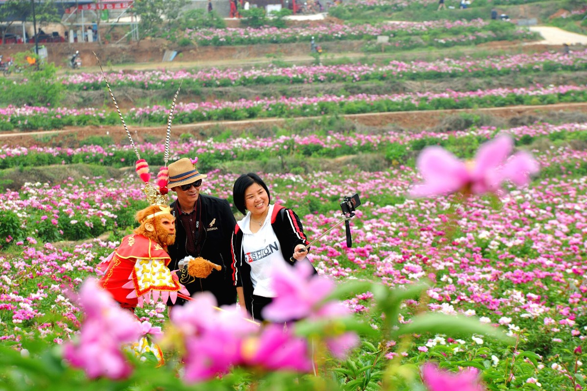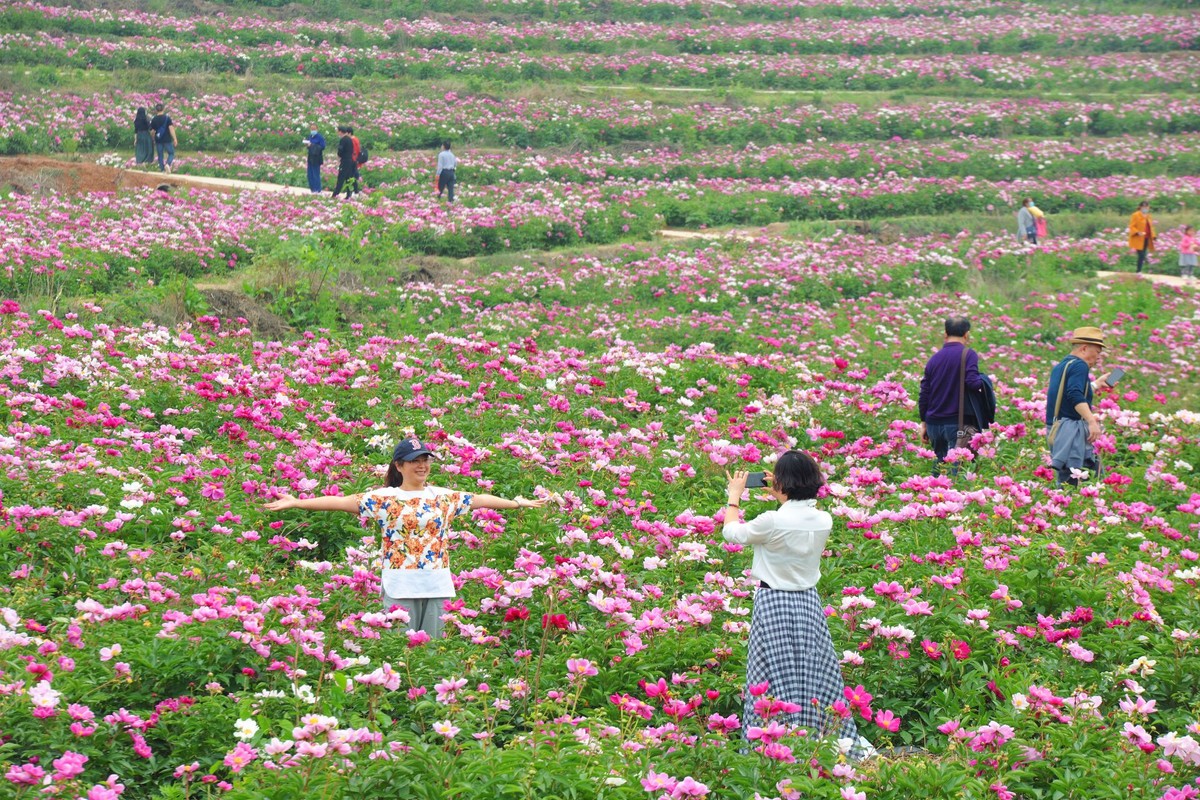 4月22日,德阳中江第八届芍药赏花节正式开幕。“集凤镇的芍药花很有名,年年我都会过来看。”4月30日一大早,来自德阳市旌阳区的游客邱长英便带着家人来到集凤镇银冯村马鞍山情花广场,一家人漫步赏花、品美食。