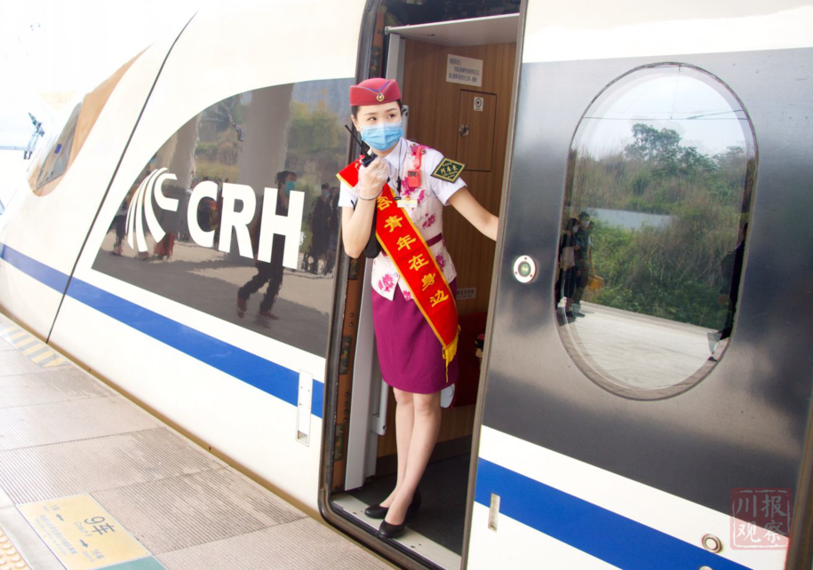 这位25岁的东北姑娘,2013年从家乡来到成都,走上客运岗位,在2017年从一名列车员成长为动车长。担当过成都东至苍南、成都东至厦门线路的高铁首发工作,还跑过成绵乐、西成、达南广等多条线路。今年已是她担当乘务工作的第7年了,她说,无论值乘哪条线路,她都要把自己的工作做好。
