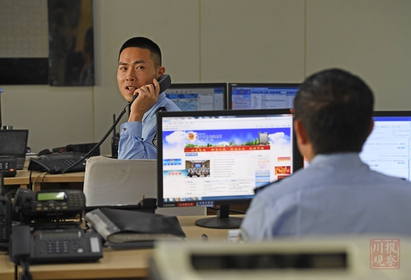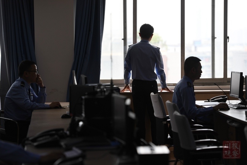 5月2日上午9点,在成都市公安局金牛区分局的警务作战指挥中心里,6名民辅警准备完毕又将开始新一轮24小时的值守。