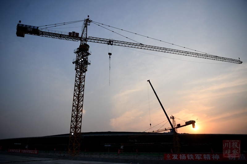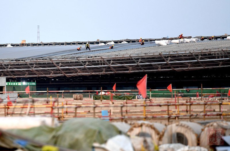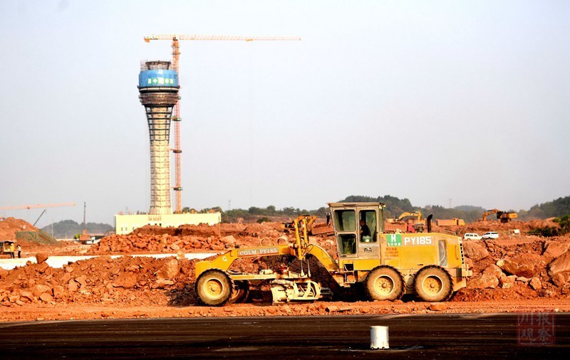 五一劳动节期间,成都天府国际机场的建设者们,坚守在岗位上。