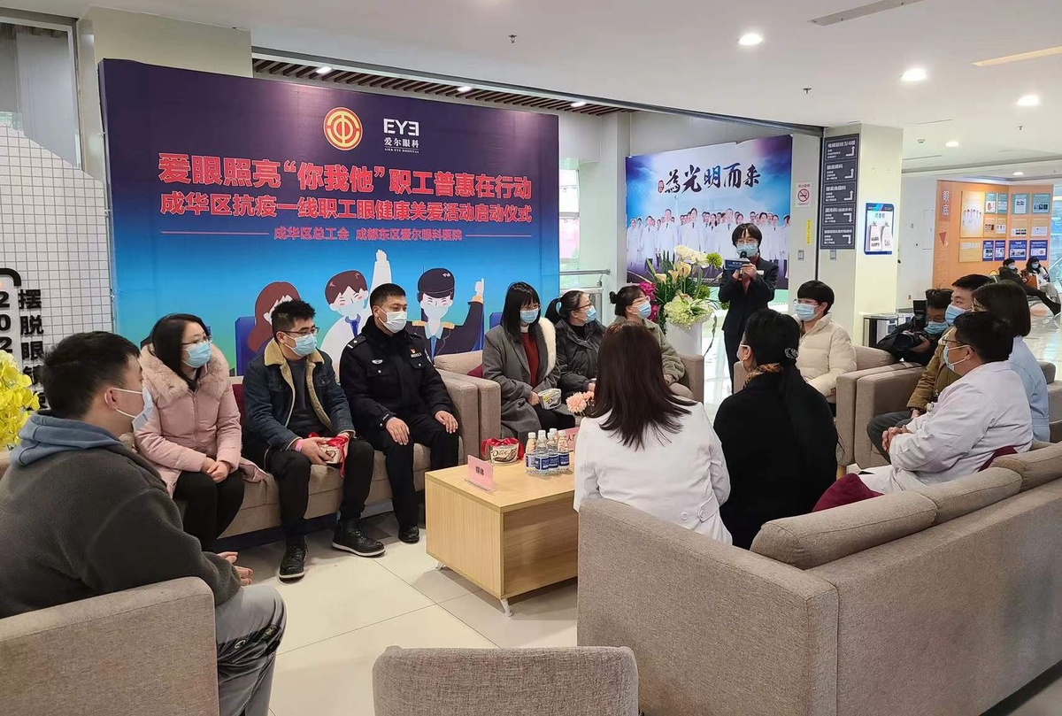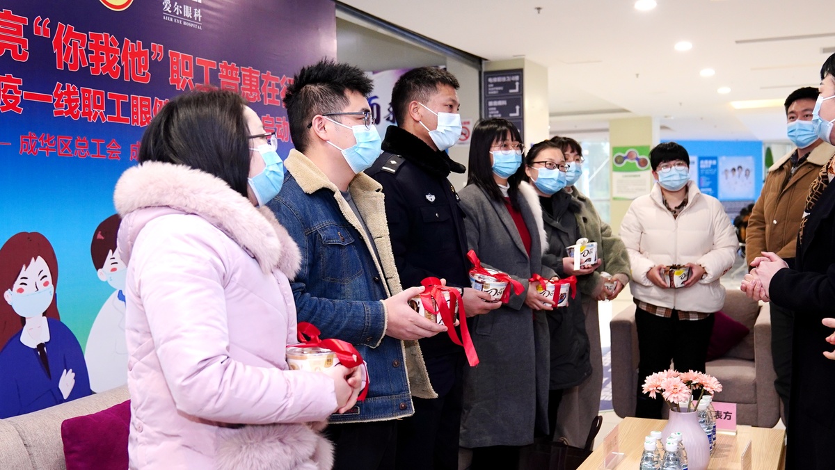 自新冠肺炎疫情发生以来,成都市成华区辖区的医护人员、公安干警、社区工作者履行疫情防控工作,投身到疫情防控一线,涌现出一批又一批最美“逆行者”。为表达对全区抗疫一线职工的崇高敬意,深入推进职工普惠活动,12月30日下午,成华区总工会联合成都东区爱尔眼科医院举办的爱眼照亮“你我他”职工普惠在行动启动,活动将普惠包括抗疫一线职工在内的辖区10余万名企事业单位干部职工和新就业形态劳动者。