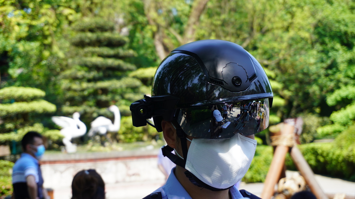 闸口另一侧,立着一个摄像头一样的设备,这是5G红外线体温检测仪。电子屏幕上,实时显示经过的每一个游客的体温,一旦发现有游客体温超过37.3摄氏度,系统将会自动报警,工作人员便会对游客进行二次体温检测,体温正常方可入园。