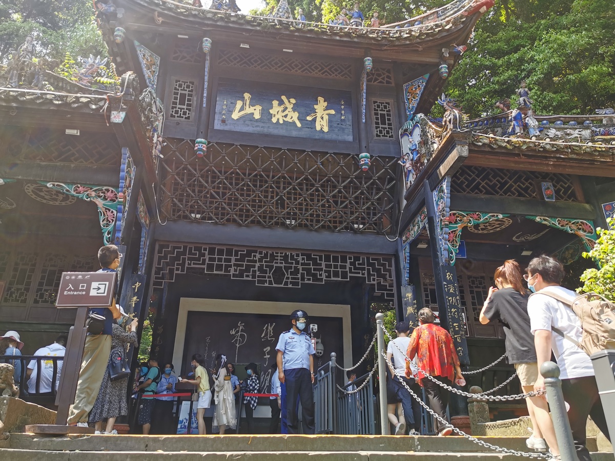 当日,青城山—都江堰景区共接待游客3.16万人次,达到客流上限。谢意一家7口从成都来青城山游玩。一天下来,他最大的感受是,“游客比预想的要多,但总体有序安全。”