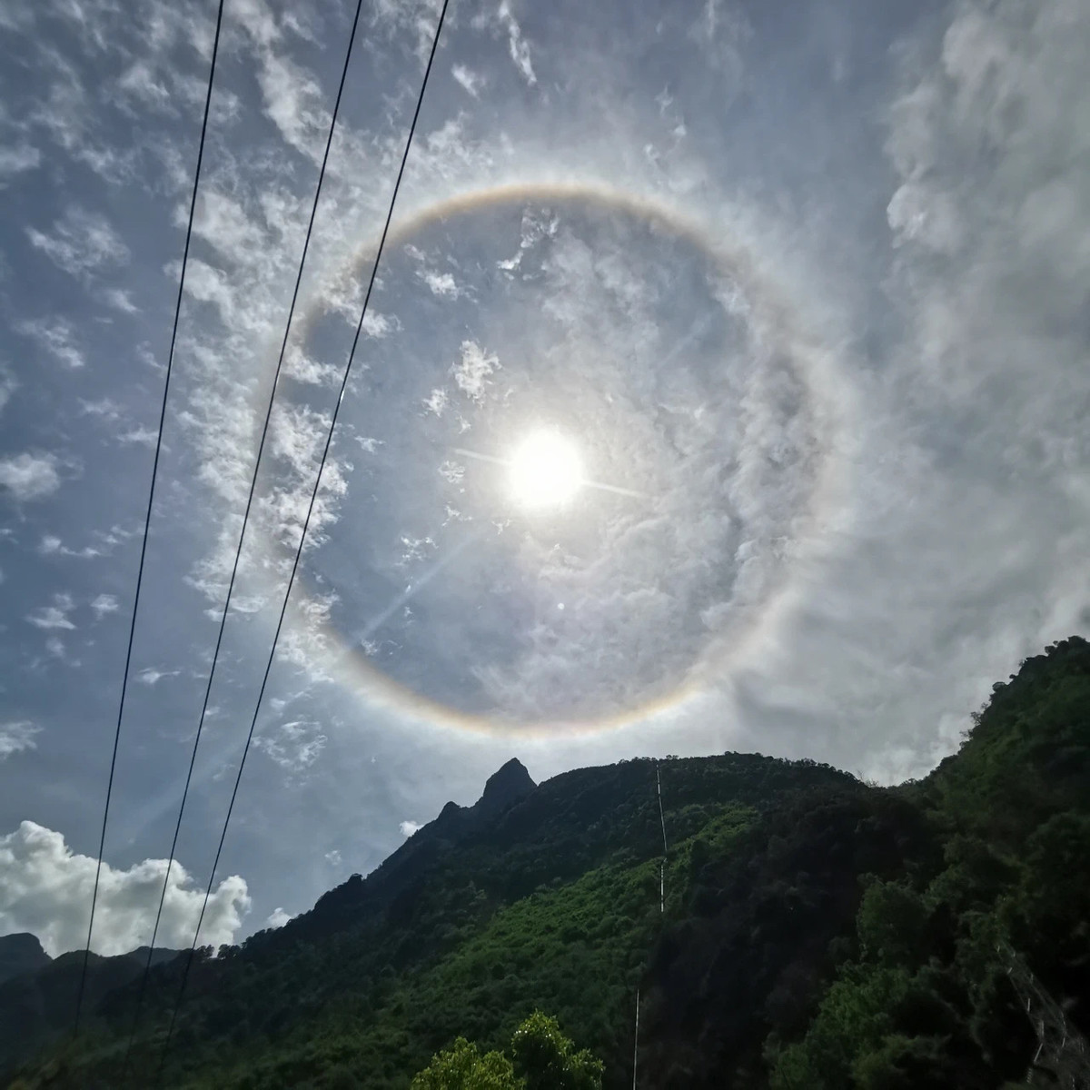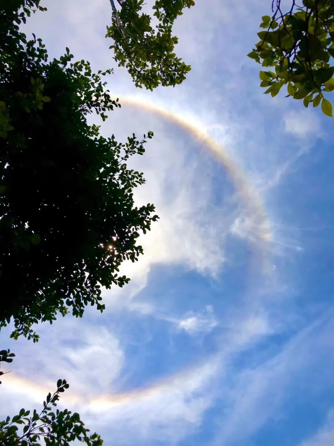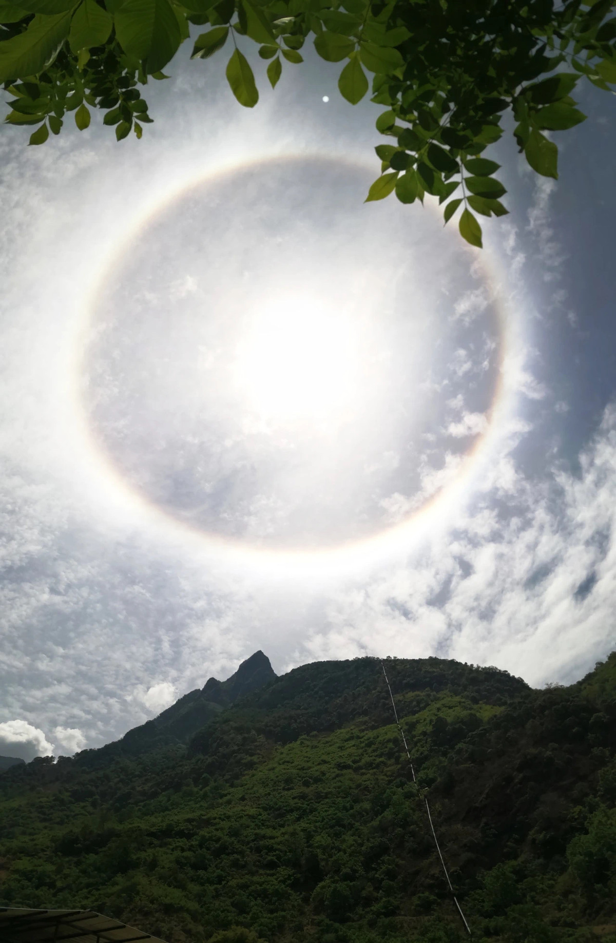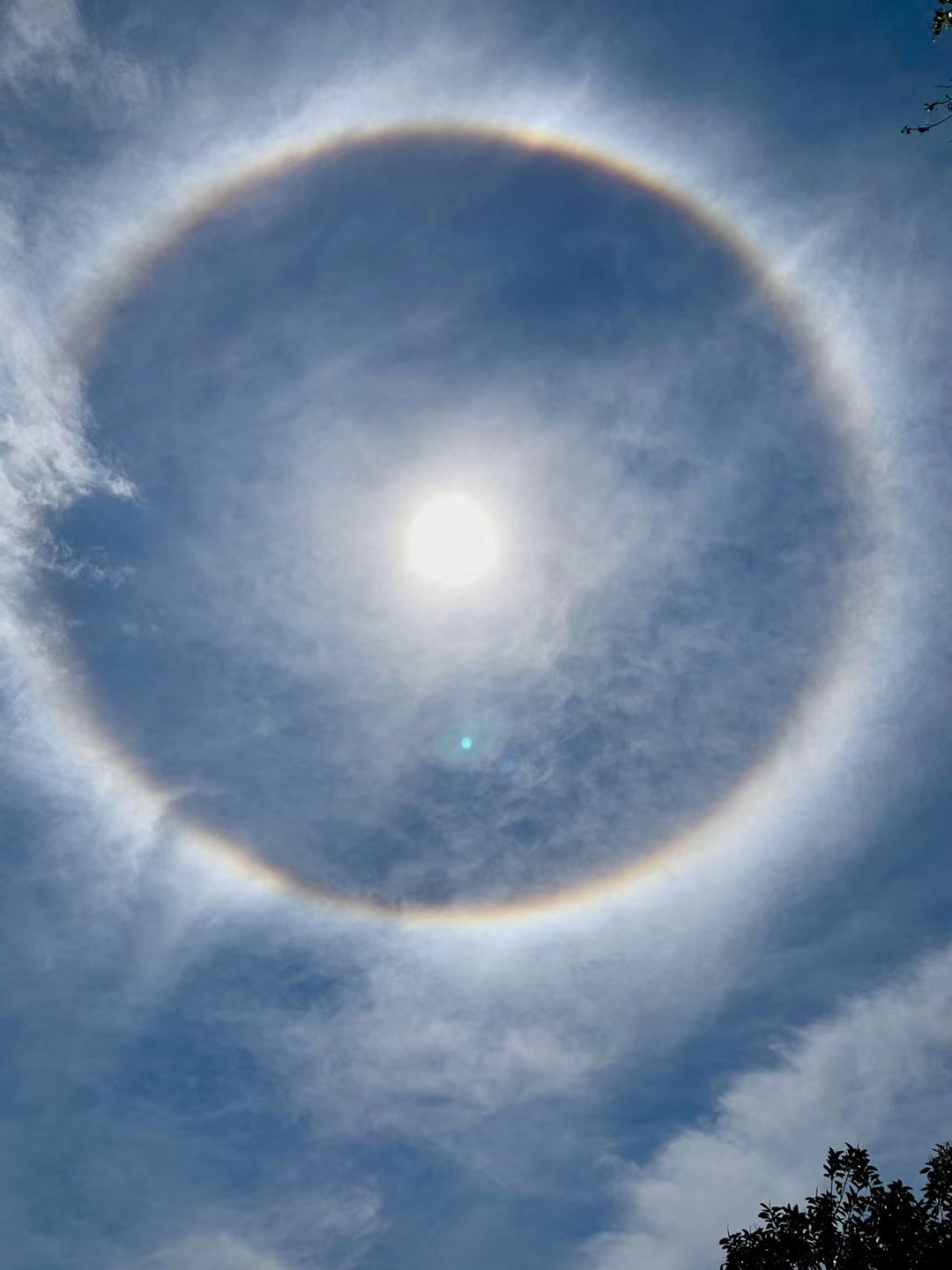 5月3日,攀枝花天气晴热,上午天空再现神奇“光环”,引得不少市民拿起手机拍照,在朋友圈开启晒图模式,记录太阳周围的彩色光圈。