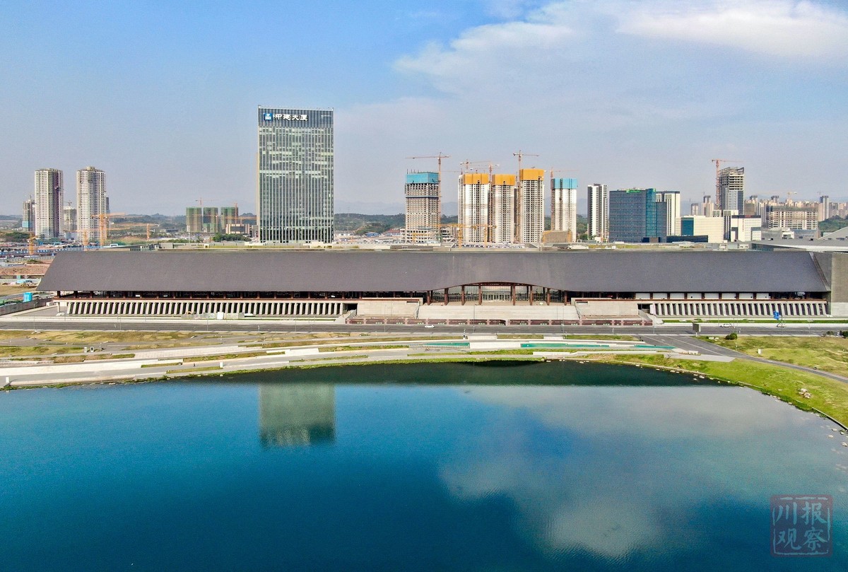 四川省和成都市重点工程、天府新区标志性建筑——天府国际会议中心项目,在历经457天紧锣密鼓地施工后,已于去年12月31日顺利实现主体工程完工,目前正在进行内部装修,预计今年内启用。以下图片均摄于今天(5月4日)。