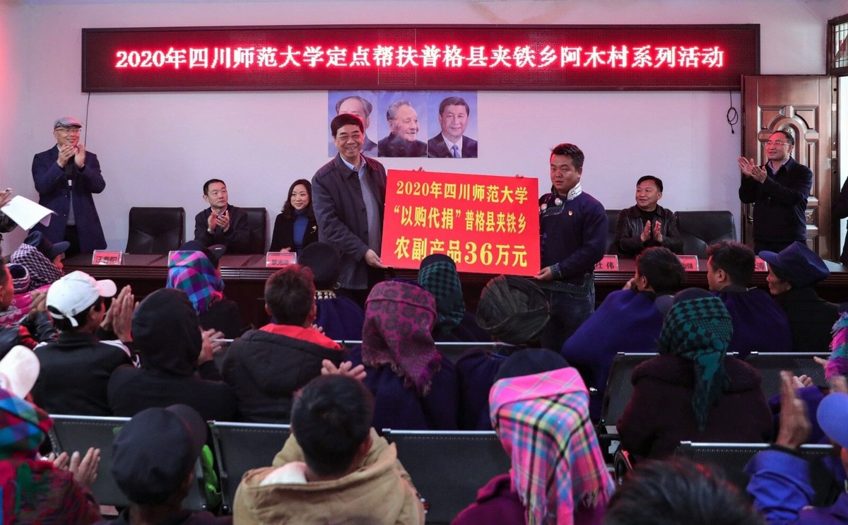 日前,四川师范大学党委书记李向成率队赴凉山州开展扶贫工作。四川师范大学按照“以购代捐”的方式,向普格县夹铁乡阿木村合作社购买了价值36万元的珍珠米、土蜂蜜、跑山鸡等优质农副产品,为农户打开销路,创收经济。还为该村捐赠25万元用以建设脱贫成效提升工程,助力提高阿木村的脱贫质量和老百姓的生活水平。