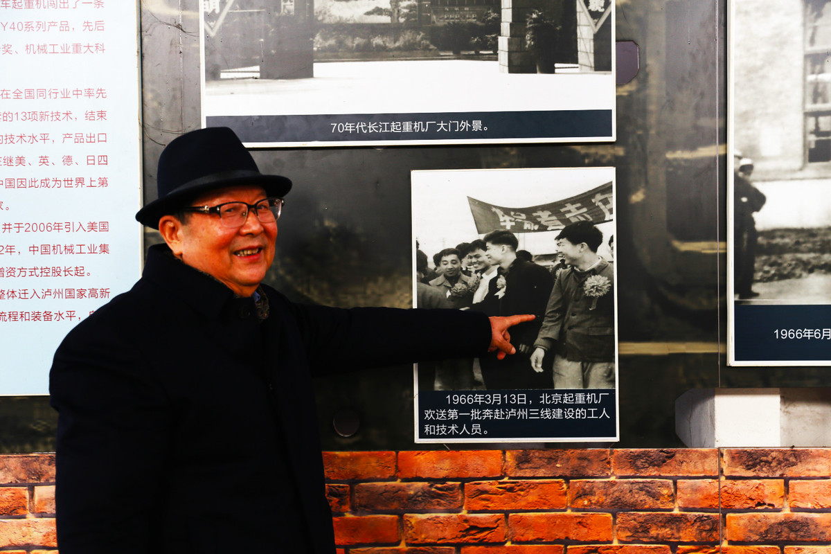 2月19日,三线建设茜草工业遗址,今年75岁的李长海指着照片中19岁的自己。龙欣雨 摄