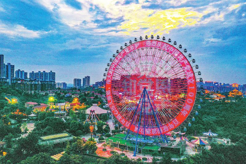 7月1日,泸州市酒城乐园点亮摩天轮“城市之眼”,庆祝中国共产党成立100周年。牟科 摄