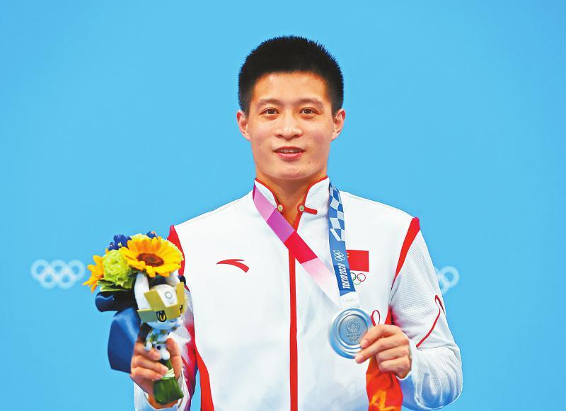 8月7日,在2020年东京奥运会男子单人10米台比赛中,杨健以580.40分获得银牌。新华社