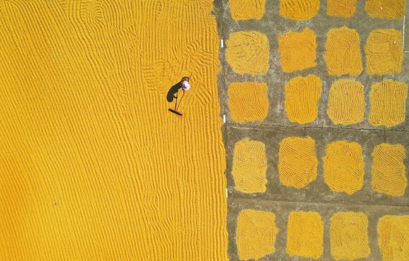 8月19日,省农科院水稻高粱研究所泸县科研基地内,工作人员正在晾晒水稻新组合。何海洋 摄